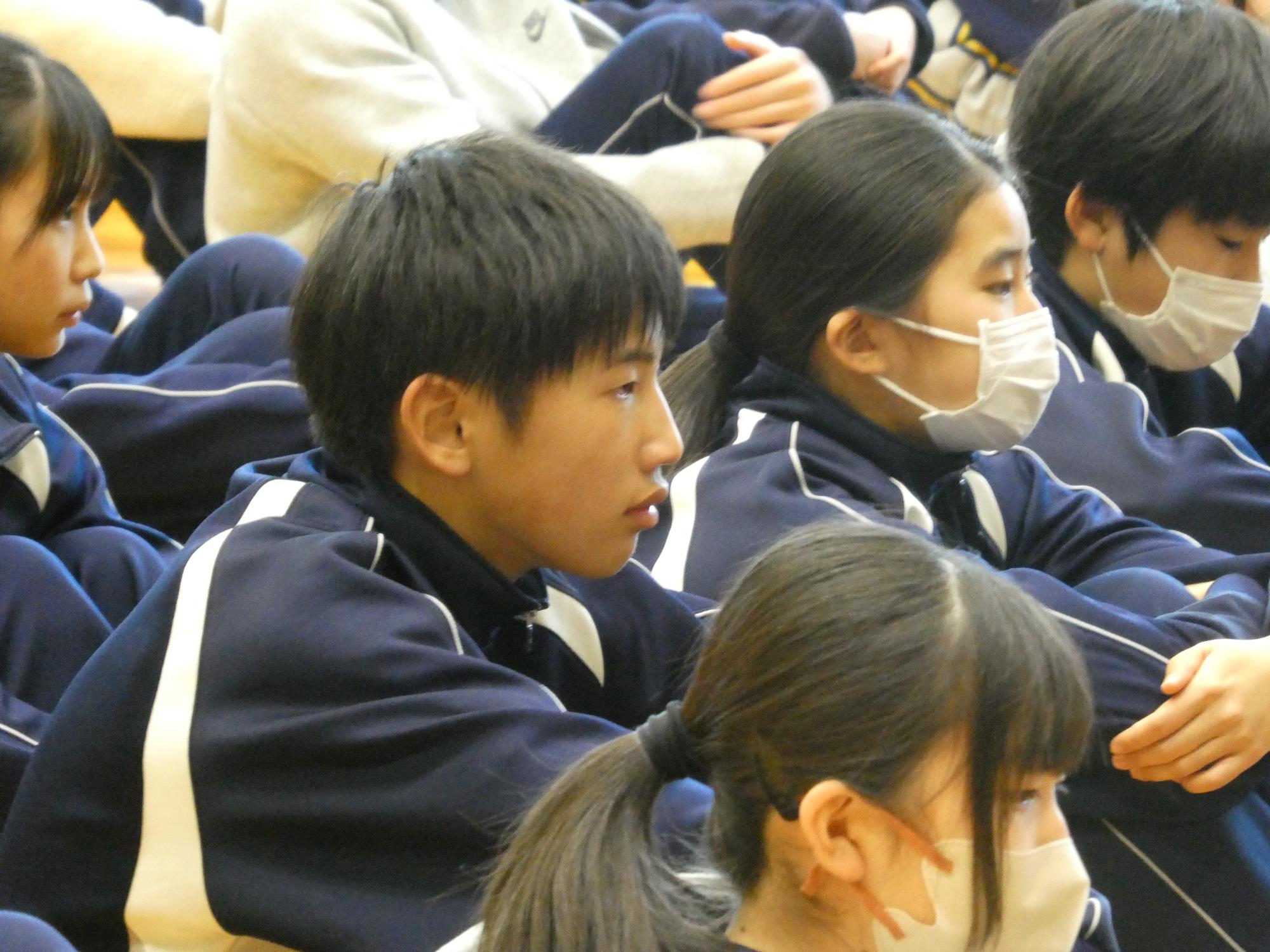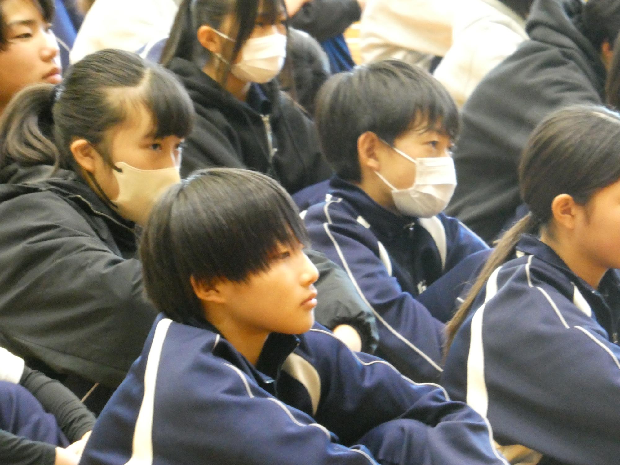 来客があり、前半はあまり聞けませんでしたが、聴いている側の、聴く姿勢を見れば、聴くべき内容だったということが分かります。3年生がいないので、なんかすごく少ないって感じですね。