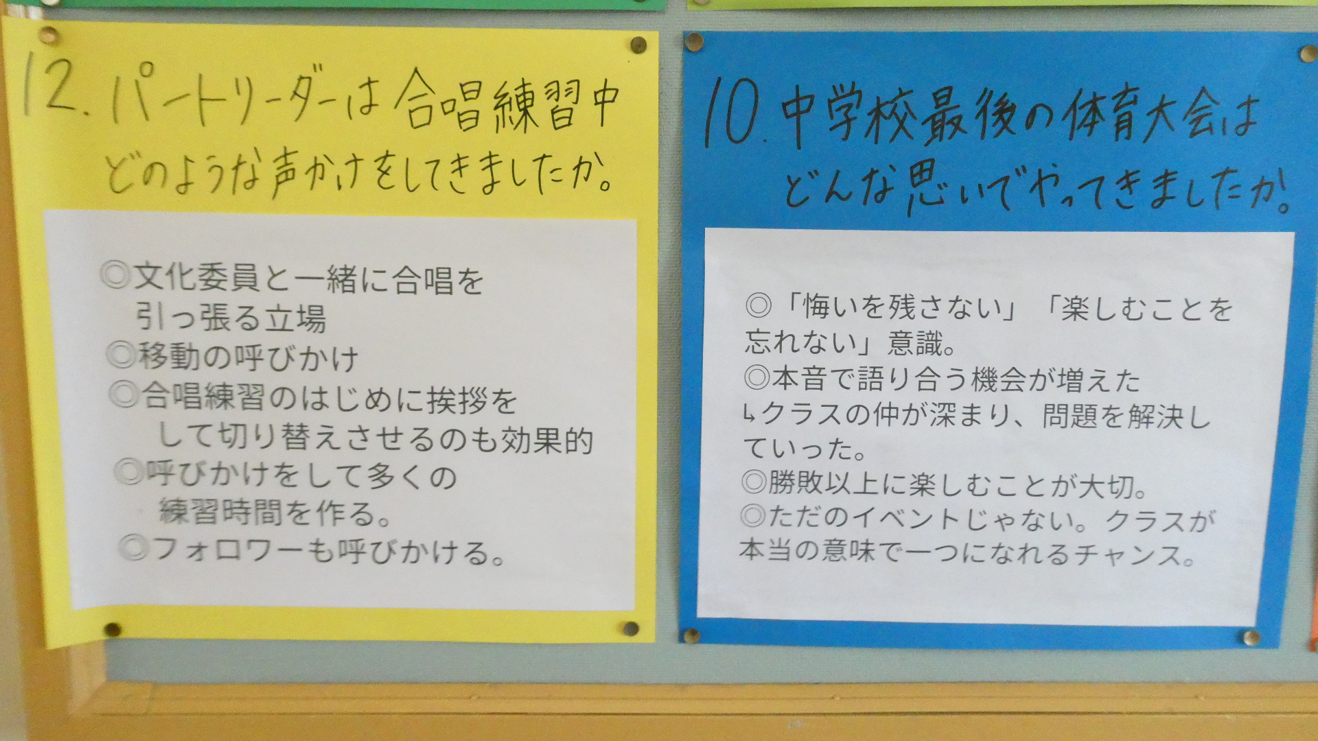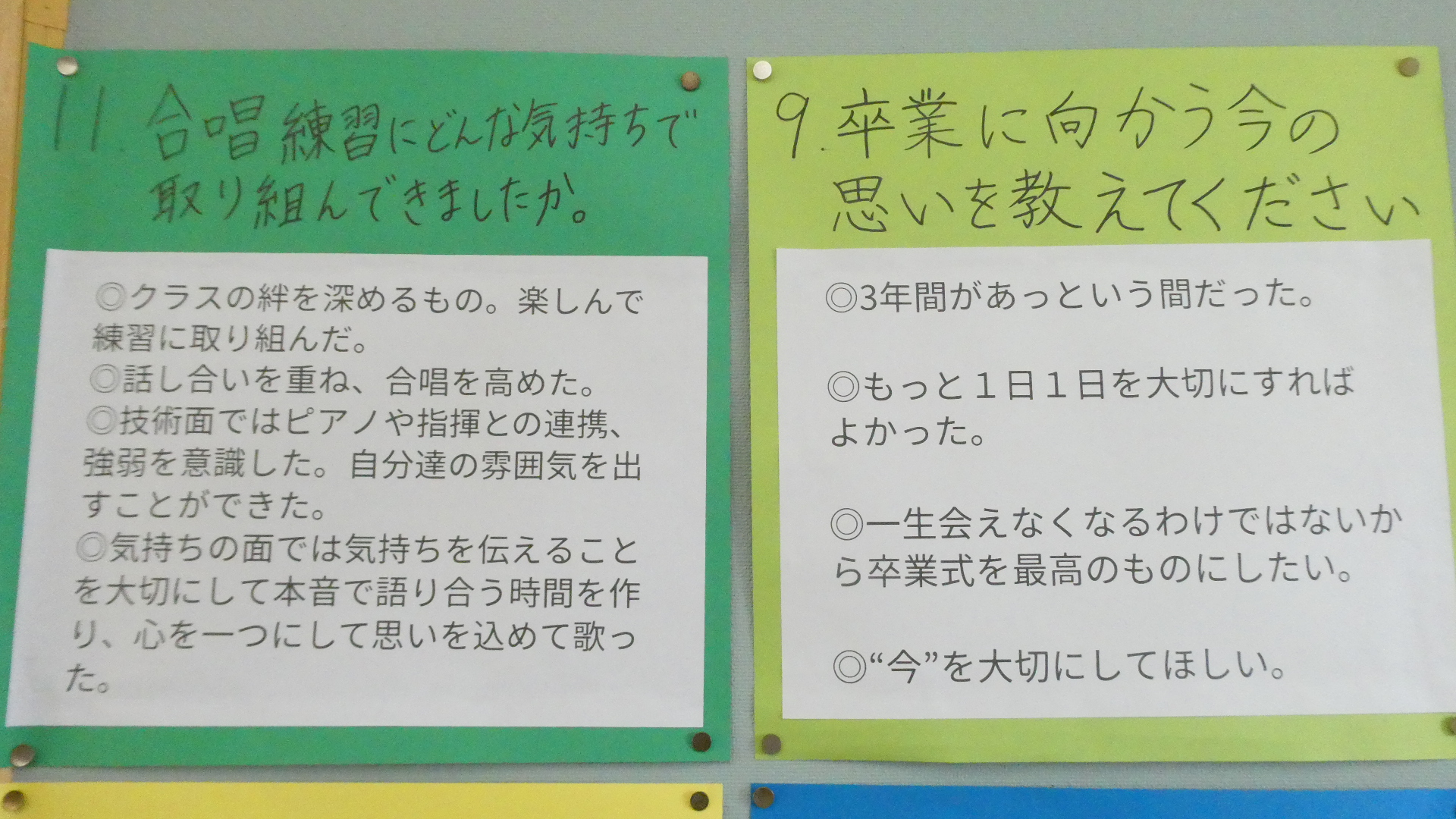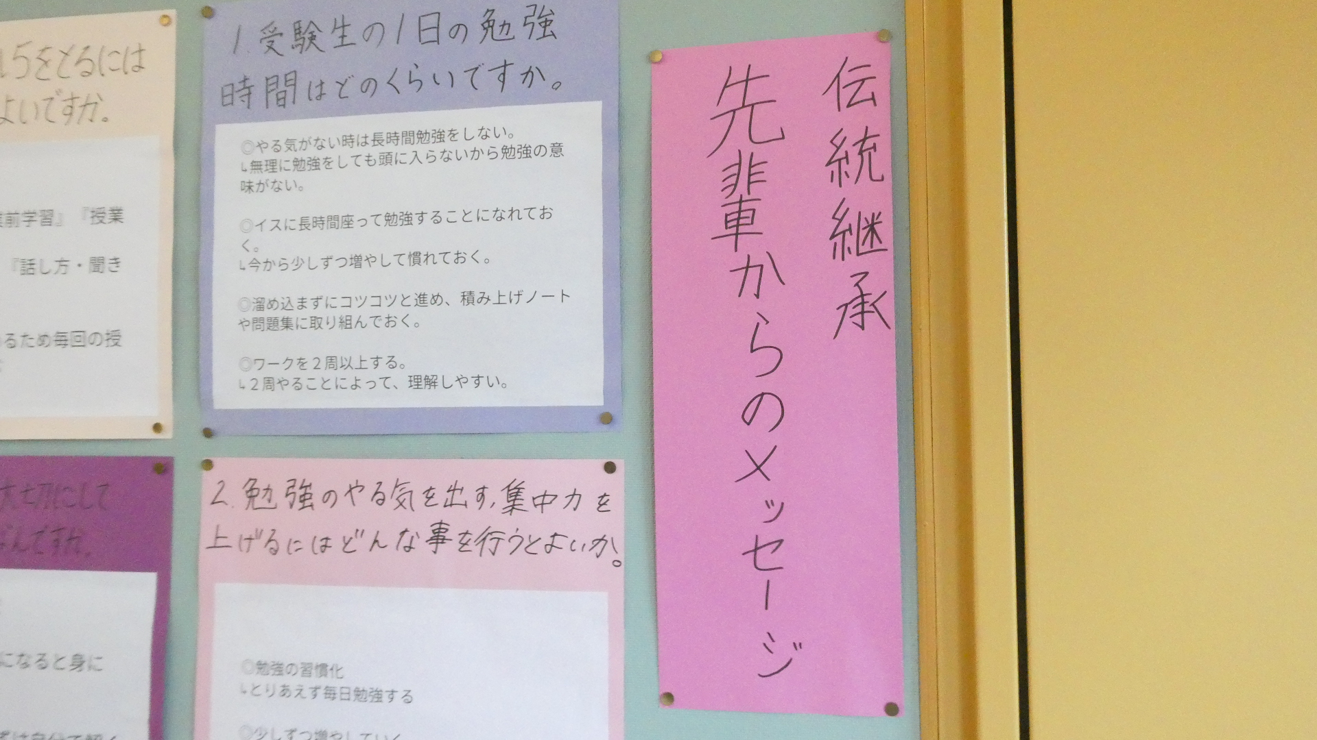 3月18日「3年生からのメッセージ」 更新日:2026年03月31日 2月末に行われた「伝統を引き継ぐ会」で、在校生からの質問に3年生が答えた。 それを聞いて、聞きっぱなしでは、伝統を引き継ぐことにならない。自分たちの生活や学校づくりに活かしてこそ、引き継いだことになる。 2年生の進級プロジェクトの、継承プロジェクトチームが、あの日語った3年生の言葉を文字にして、廊下に掲示しました。