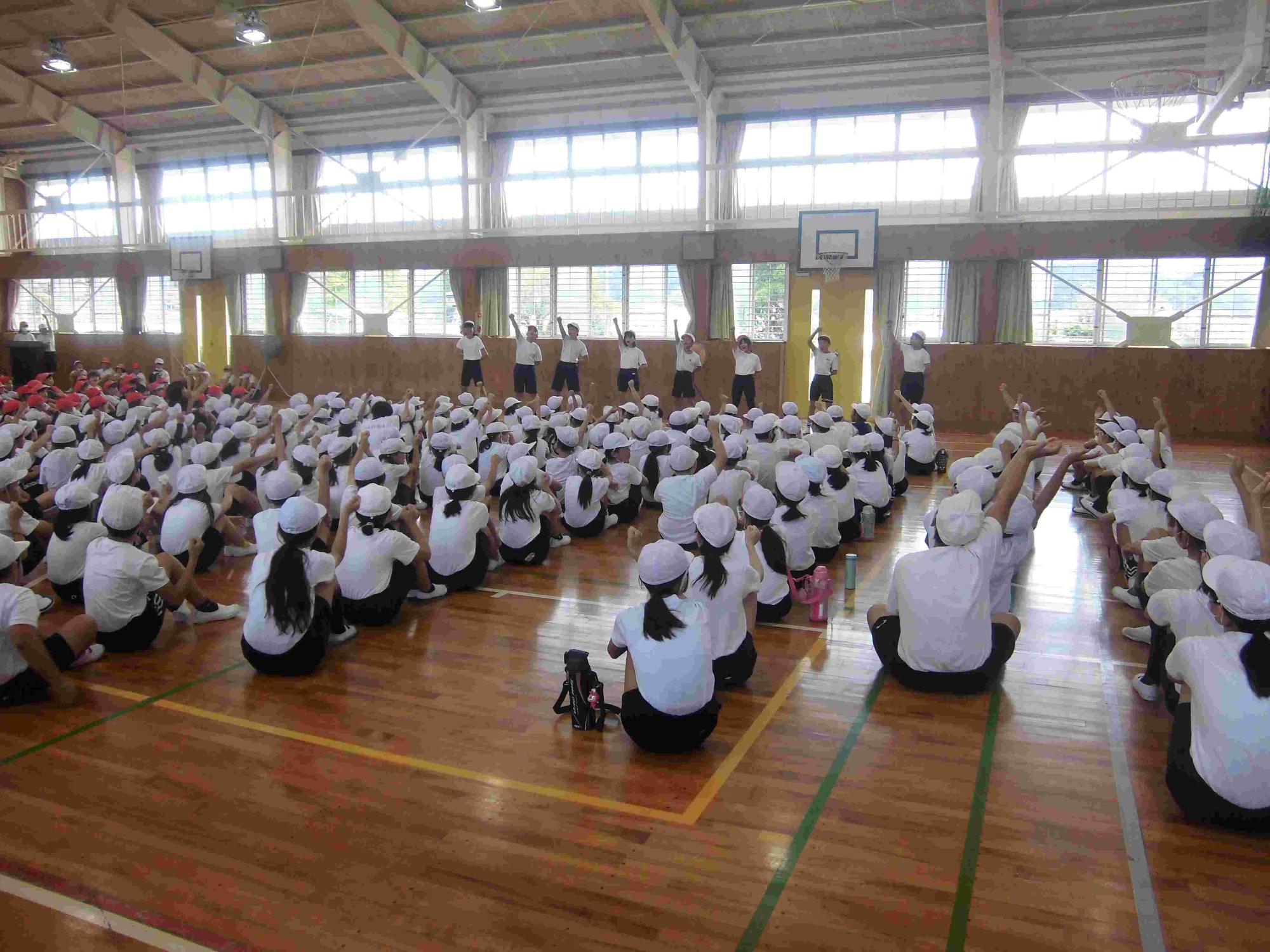 結団式「運動会の取組スタート」 更新日:2024年09月30日 9月27日(金曜日)、応援団員の声が、全校が集まった体育館中に響き渡りました。「優勝したい。そのために全力で仲間を応援する。」「団の優勝と自分の成長に向けて、日常生活を高めていく」などなど、力強い決意はビシビシと伝わってきました。校長先生からは、なりたい自分に近づくために、「自分で考えて動くこと」「失敗してもあきらめない」という激励をもらいました。
