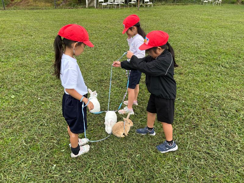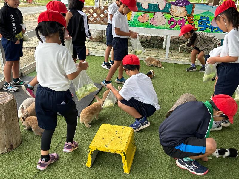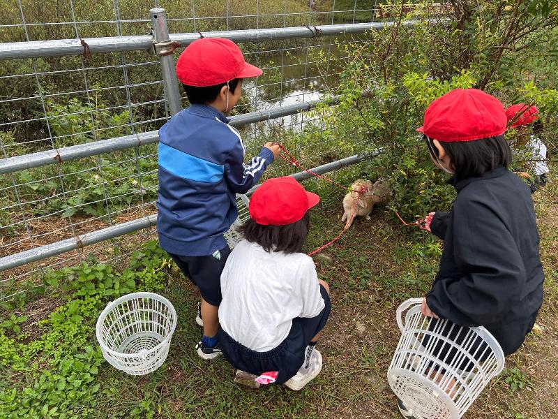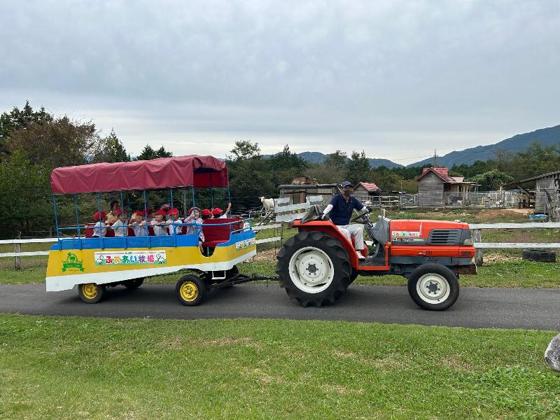 10月3日 1年生生活科見学 更新日:2025年10月03日 生活科見学で中津川ふれあい牧場に行ってきました。トラクターの遊覧車に乗ったり、ウサギにえさをあげたり、散歩したりするなど動物と触れ合いました。広場で学級遊びもしました。楽しそうな表情が印象的でした。