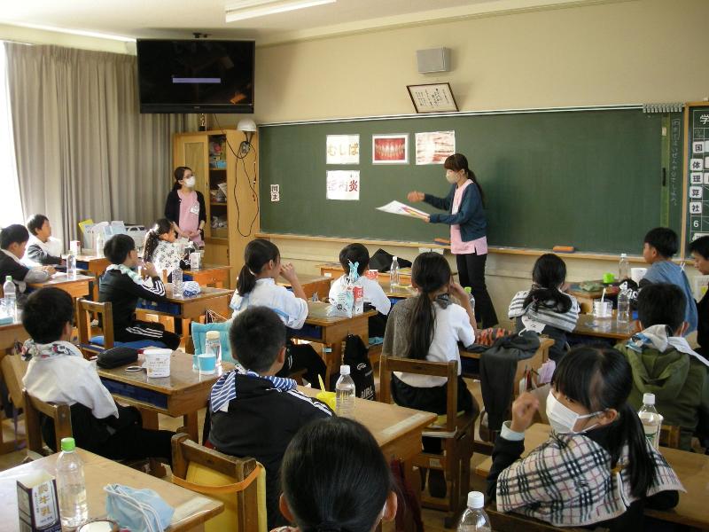 10月30日 4年生ブラッシング指導 更新日:2025年10月30日 市の医療福祉部健康課の歯科衛生士さんから歯の健康について教えてもらいました。普段当たり前のように行っている歯磨きですが、汚れがたまりやすいところを意識して歯磨きできるといいですね。