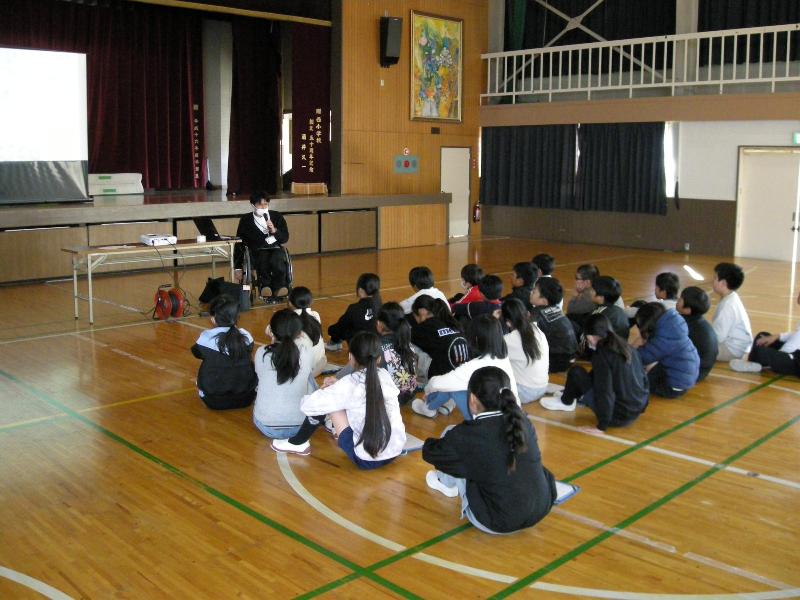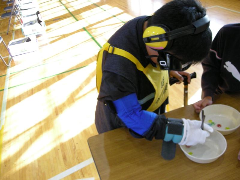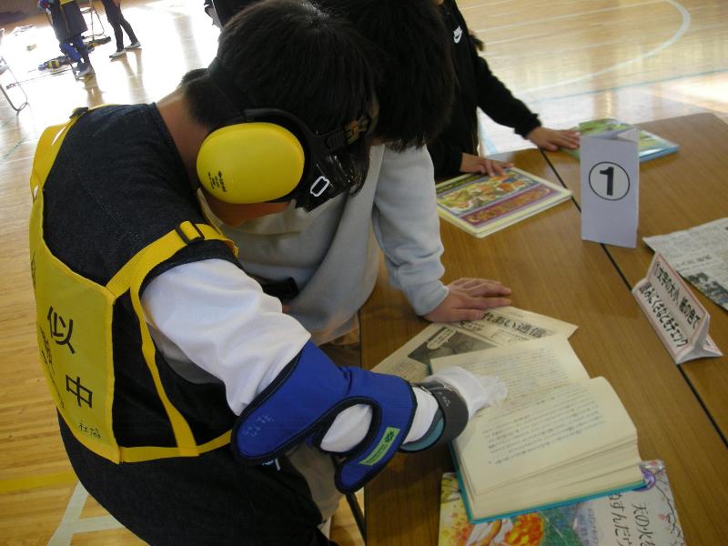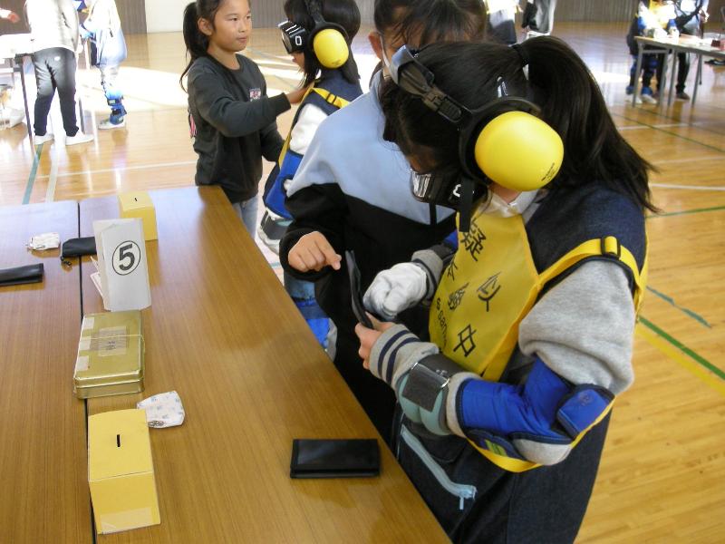 11月28日 4年生福祉体験授業 更新日:2025年11月28日 4年生が社会福祉協議会の方から福祉体験の授業を教わりました。高齢者が体を動かすことの不自由さについて、体におもりを付けたり、実際に物をつかんだりしながらその苦労を感じることで高齢者の気持ちになって考えることができました。
