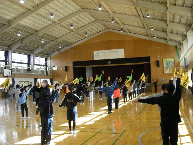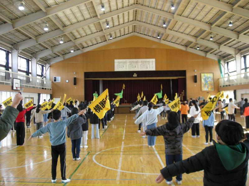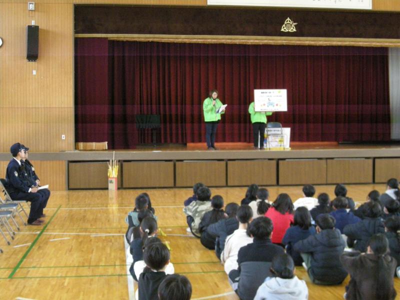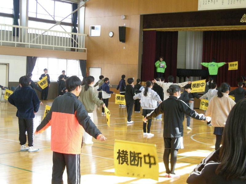 2月17日 4,5年生交通旗教室 更新日:2026年02月17日 4,5年生による交通旗教室を行いました。坂本交番の警察官の方、市の交通指導員の方から登下校時の交通旗の正しい使い方を教えてもらいました。毎日安全に登校できるようよろしくお願いします。