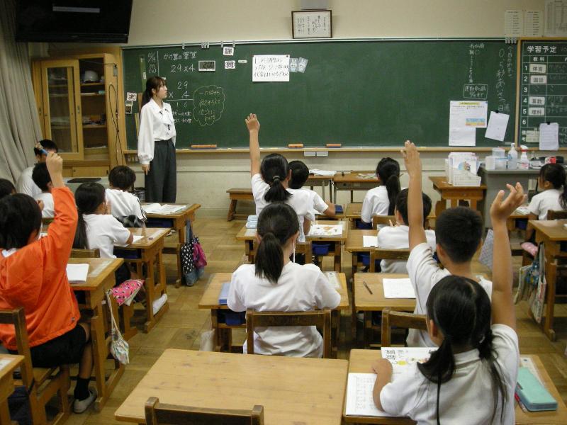 10月14日 1年2組、3年3組、5年2組算数公開授業 更新日:2025年10月14日 今日の3、4、5時間目にそれぞれ1年2組、3年3組、5年2組の算数の研究授業がありました。中津川市と恵那市の初任の先生たちの研修会で3学級が公開授業を行いました。運動会の練習だけでなく、日常の授業でも一生懸命に学ぶ姿、素敵です。
