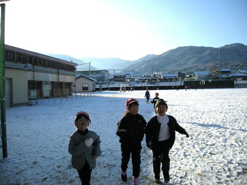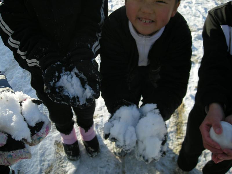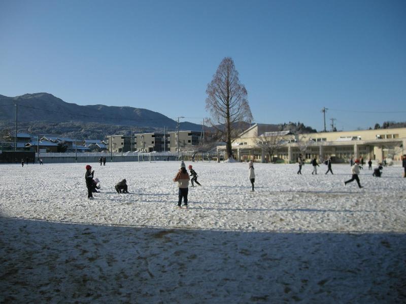 毎日寒い日が続いています。昨晩の降雪で、グラウンドは一面銀世界でした。朝からグラウンドでは、子どもたちの元気な声が響いていました。