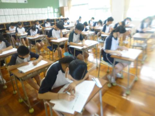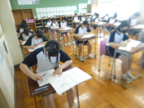 長かった夏休みも終わり、学校が再開し1週間過ぎました。休み明け集会から始まり、休み明け確認テスト(実力テスト)、夏休み一研究一作品展示会、命を守る訓練(DIG訓練)があり、本日から前期期末テストが始まりました。夏休みモードは一気に消え、通常学校生活モードになっています。来週からはいよいよ体育大会に向けての取組も始まります。あっという間に過ぎていく中学校生活です。毎日を大切に過ごさせていきたいです。
