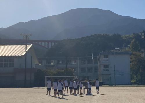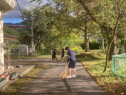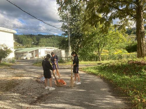 秋晴れの下で 更新日:2025年10月21日 秋晴れの下での学校の様子です。 体育の授業の様子。持久走の授業です。仲間同士で声を掛け合って切磋琢磨しながら取り組んでいる様子がうかがえます。 学校にあるキンモクセイの見頃が終わりに近づき、散り始めました。掃除がてら用務員さんが粋な演出をしてくれていました。 掃除の様子です。これから毎日落ち葉掃除です。 平和感がいたるところに満ち溢れている落合中学校です。