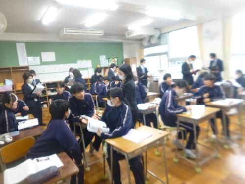 道徳計画訪問 更新日:2025年12月04日 12月3日に落合校区の道徳計画訪問が本校を会場に行われました。小中9年間(園も含めれば12年間)を見通した道徳教育の大切さや実践の仕方、道徳の授業の在り方など、多岐にわたって道徳教育について考える日となりました。 公開授業は3年生の学級で行いました。生徒たちは活発な意見交流を行いながら、「自分だったらこうする」「主人公の気持ちに共感できる」などなど自分の考えを巡り巡らせていました。 今回の訪問を通して、道徳教育の充実を図っていくことの大切さを実感することができました。