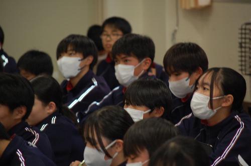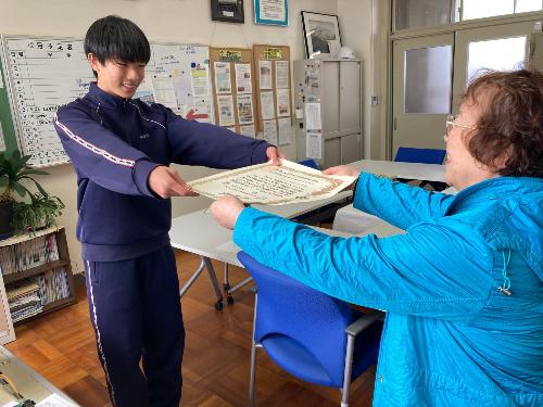 ひとつ目は、人権作文や「ちょっといい話」「あったかい言葉がけ運動」など作品募集に全生徒が参加していることです。日常的なよさ見つけを生徒同士だけでなく、先生たちも見つけて生徒に伝えたりしています。その結果のひとつとして、今年度県の人権作文コンクールで生徒の作品が入賞しました。