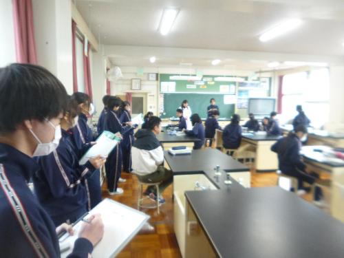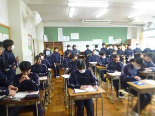 3年生から1・2年生に伝える 更新日:2026年01月20日 卒業式まであと30日余りとなりました。この時期は3年生が下級生に落合中の伝統や文化を様々な形で伝えます。 今日は学習委員会が「3年生の授業から学ぶ」を企画し、1・2年生が3年生の授業を参観しました。「自分から学ぶ」「仲間と関わり合う」「課題を解決する」を3年生が実際の姿で見せてくれました。多くの1・2年生徒が3年生の姿から感じるものがあったことでしょう。「学び方」の伝統が引き継がれた一場面でした。 3A 数学の授業 3B 理科の授業
