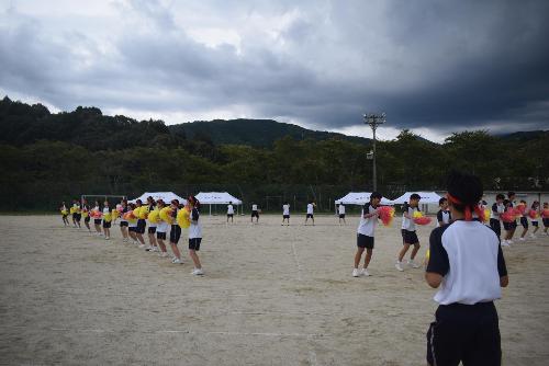 心を燃やせ【3年生作成】 更新日:2026年02月20日 9月25日に体育大会を行いました。前日まで各委員会で準備を行い、本番では全校生徒の全力で取り組む姿が見られました。特に団リーダーは、夏休み中からダンスの練習を始め、学校が始まってからは団員一人ひとりと向き合い、ダンスを丁寧に教えていました。その結果、各団最高のパフォーマンスを披露することができました。競技では、今年度から新しく綱引きを取り入れました。両団とも息を合わせるために、3年生を中心にかけ声を大切にして行いました。