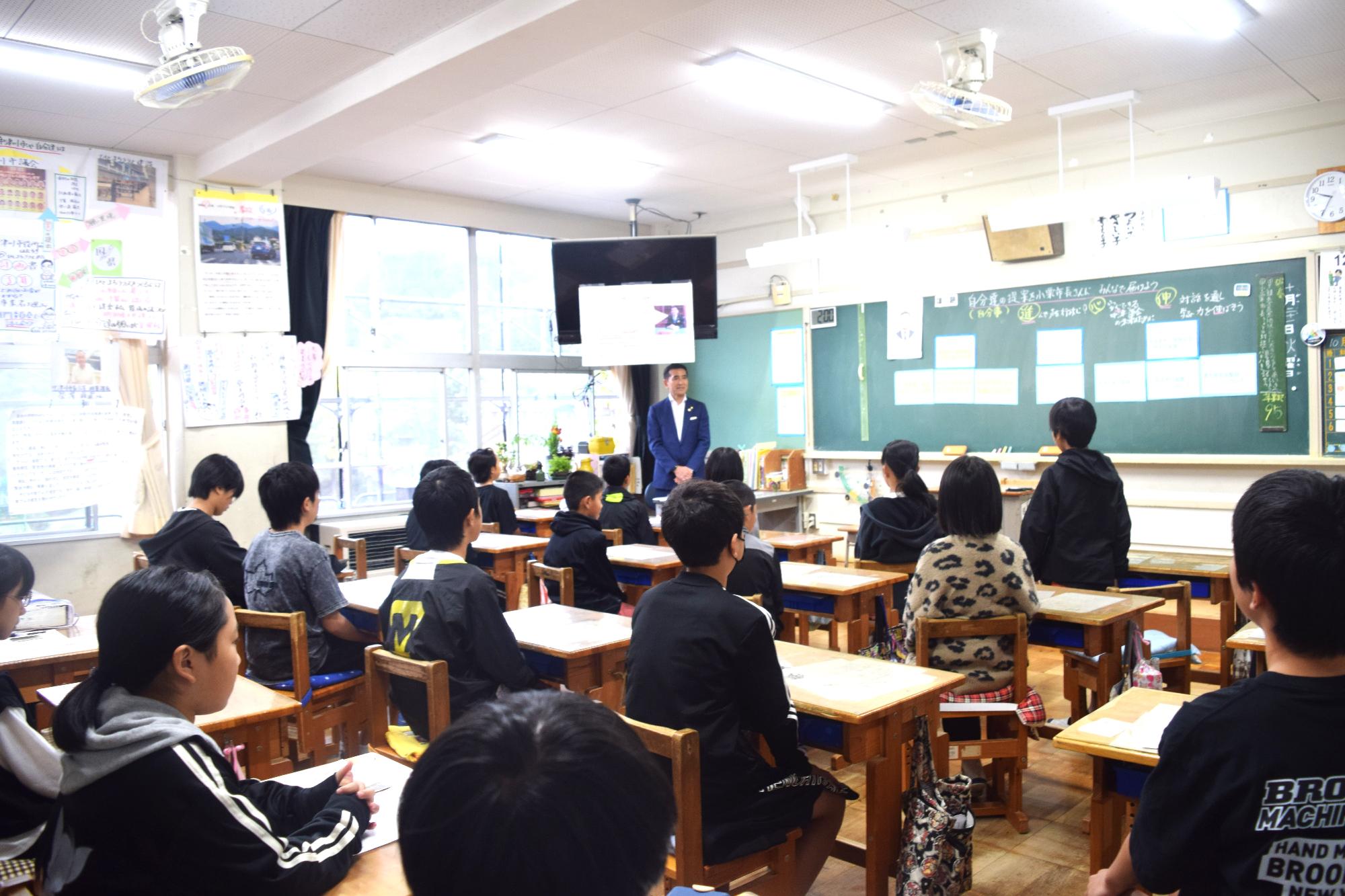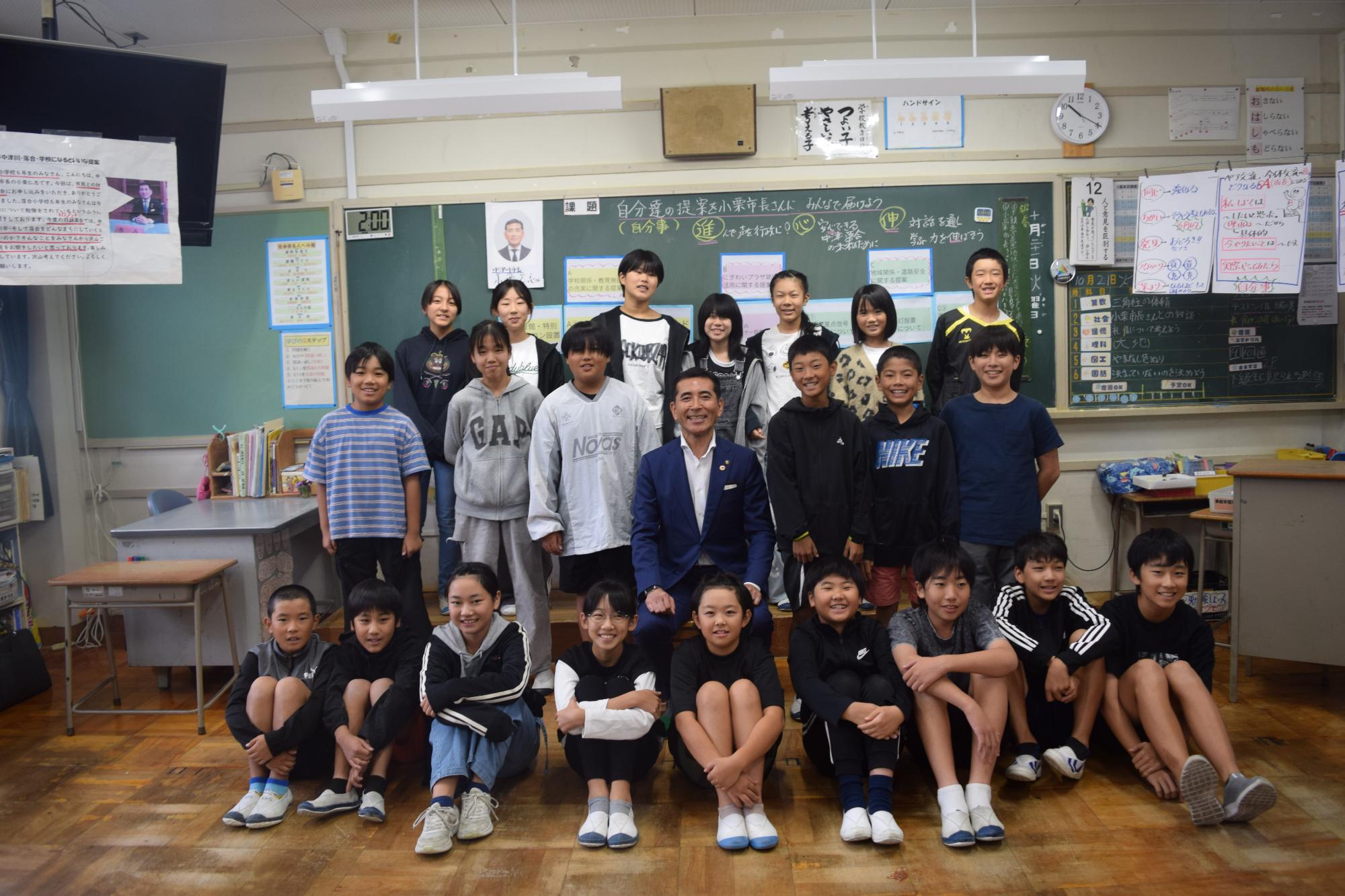 小栗仁志市長さんに落合小学校6年生教室に来ていただきました。