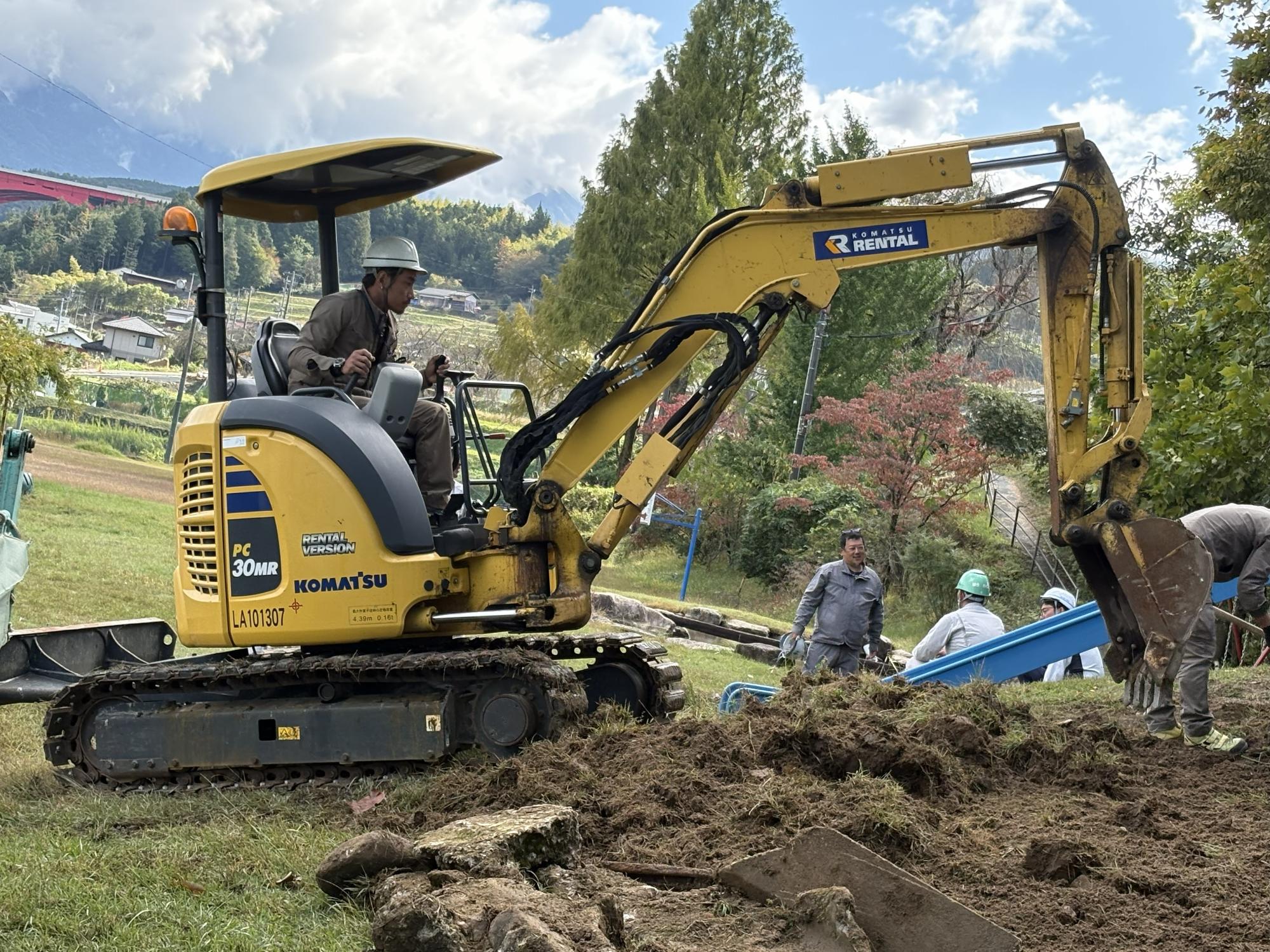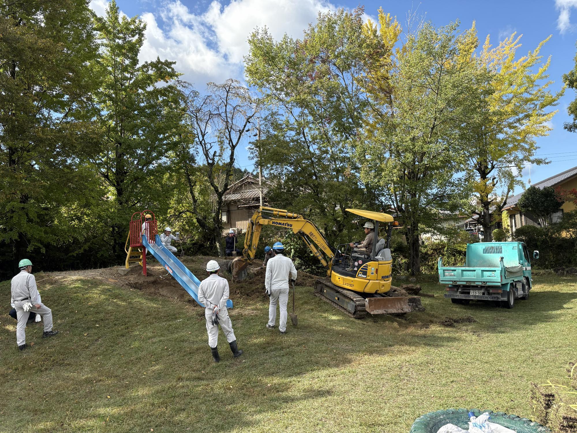 1028_わんぱく広場「すべり台山」の整備~整地・芝植え~