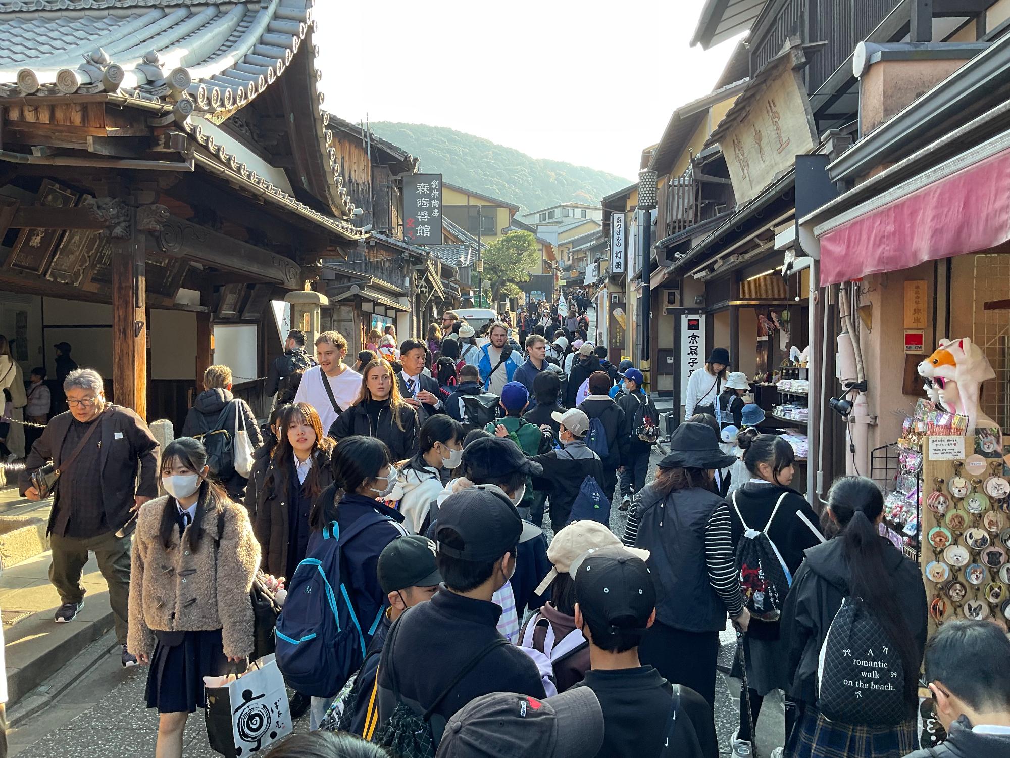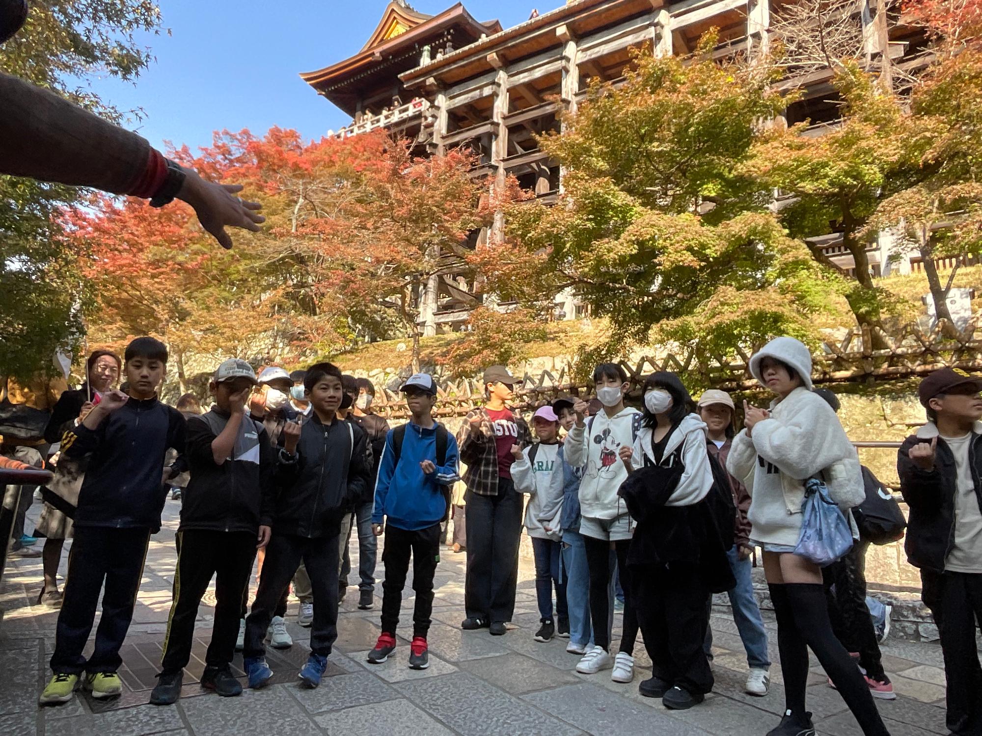 2日目は清水寺の見学から始まり、買い物をし、今、昼食を済ませ、音羽の滝では、願いごとをしながら滝の水に小指を浸しました。水が乾くまでおしゃべりをしなければ願いが叶うということで、この時間しばらく静かな時間が流れました。清水での買い物は、奈良とは違ったメンバーで買い物をしました。グループの仲間の気持ちを汲み取りながら、お店を選び、時間と残金と人混みと戦いながらの買い物でした。みんな満足した買い物ができたようです。