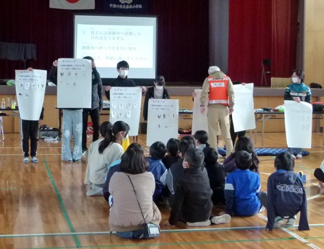 続けて災害時に必要な物は、避難所へ持って行く必要最低限の必需品と、自宅避難する場合に備えた生活用の備蓄品であることを学びました。さらに「各家庭で最低限の必需品や備蓄品があるか確認するとよいですよ。」とアドバイスもいただきました。