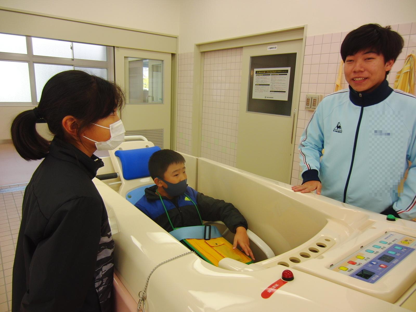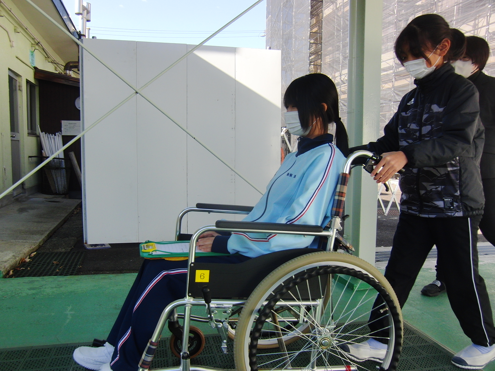 坂下高校で福祉について学んできました。高齢者や怪我をした人が安心して入れる工夫のあるお風呂や、車椅子操作の体験、視野が狭くなることの疑似体験など、さすが専門的な学習をしている学校だと感じるものばかりでした。高校生の子がとてもわかり易く、丁寧に説明してくれて、5年生も頷きながら話を聞いたり、メモを取りながら話を聞くことができました。