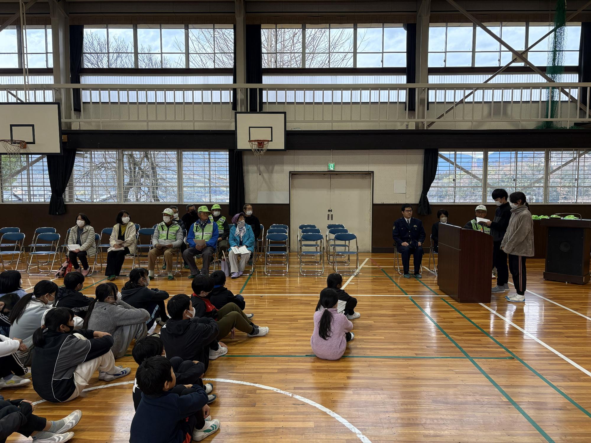 落合小学校の登下校を見守ってくださるボランティアさんとの会議がありました。今回は落合派出所からも来ていただき、交通事故防止について話していただきました。学校長からは日頃の見守りへの感謝と、最近では熊対応についてのお礼をボランティアの方々にお伝えしました。会長の原さんからは「挨拶の声がよくなってきました。」と励ましの声をいただきました。