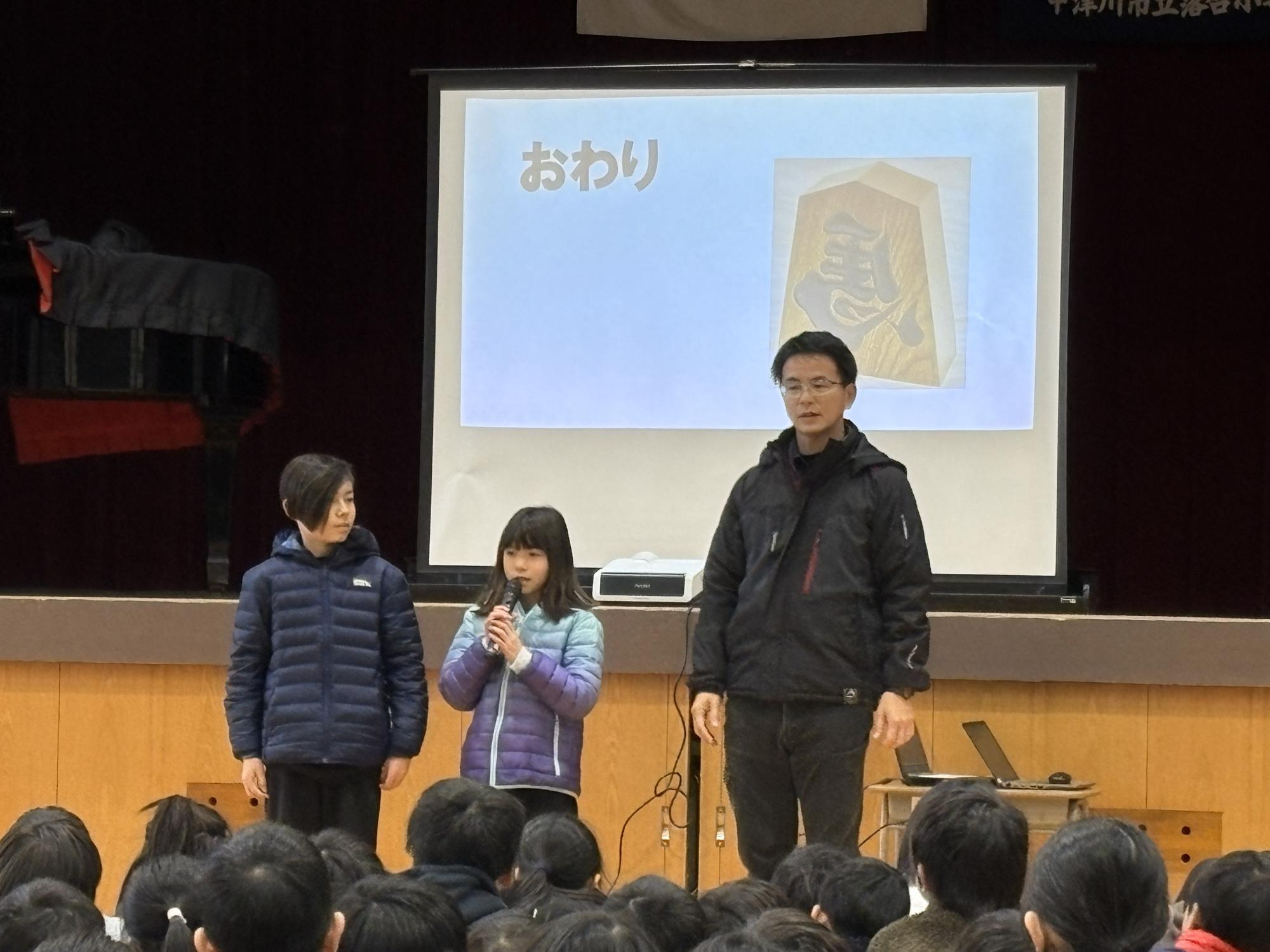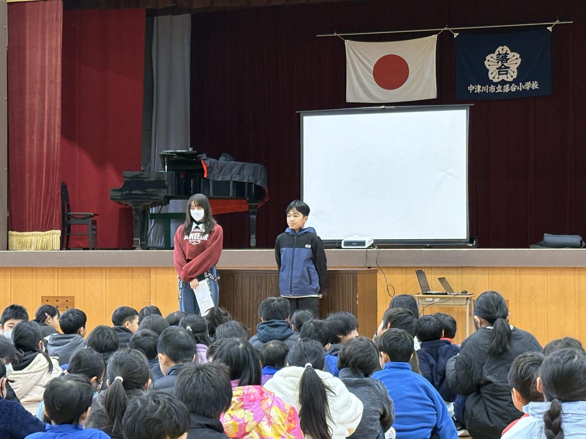 6年生2人の代表の話は、「自分は新しいことに挑戦することで成長し続けることができています。さらに自分の挑戦に磨きをかけていきます。」「企画委員長として挨拶を地域の方々に広めてきました。挨拶は一人一人がつながる魔法の言葉です。この挨拶を落合小学校の伝統としたいです。」という話でした。6年生の頼もしい熱意ある言葉でした。