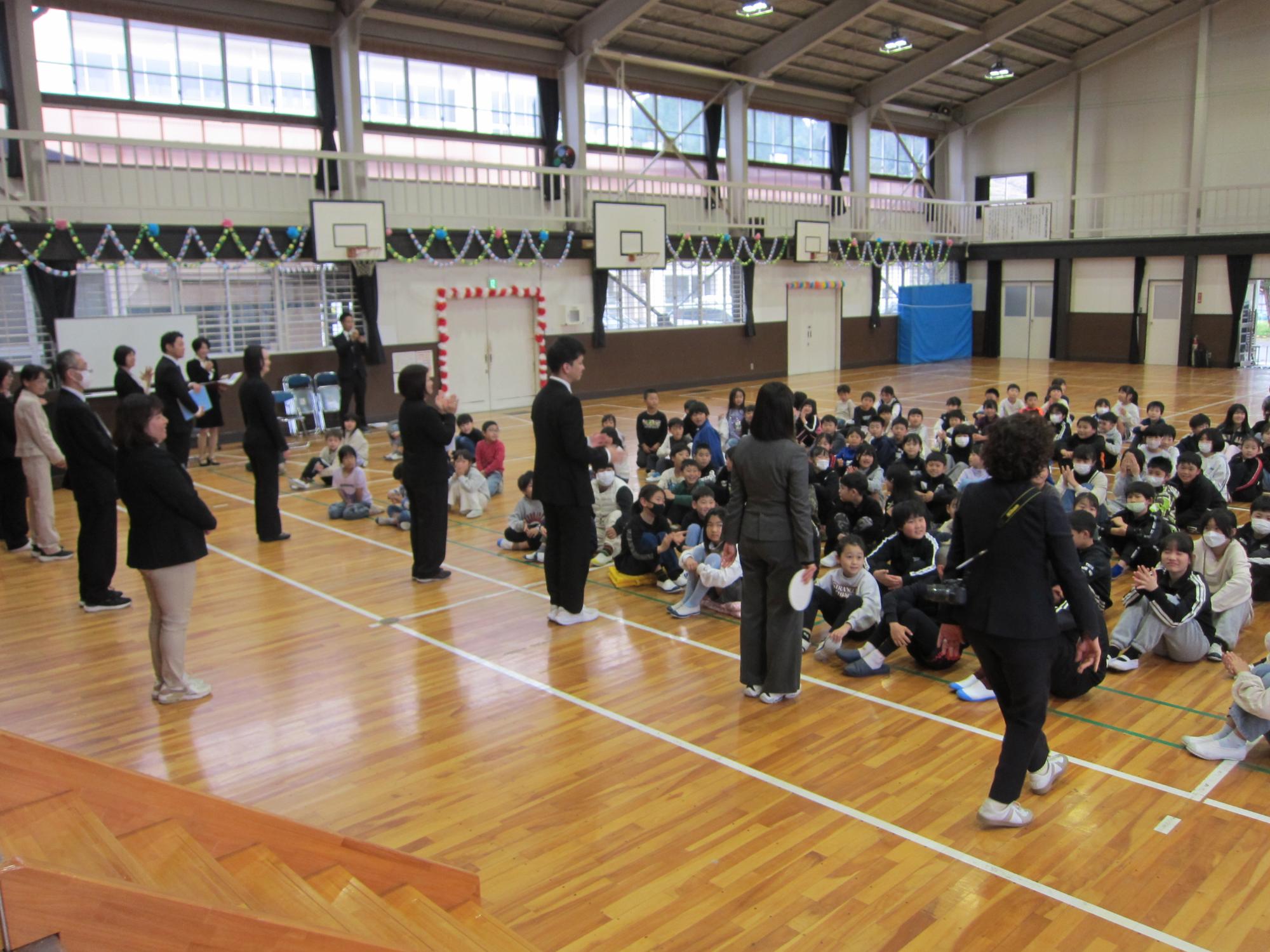 着任式では、本年度転入された職員紹介と職員全員の自己紹介、そして担任発表がありました。