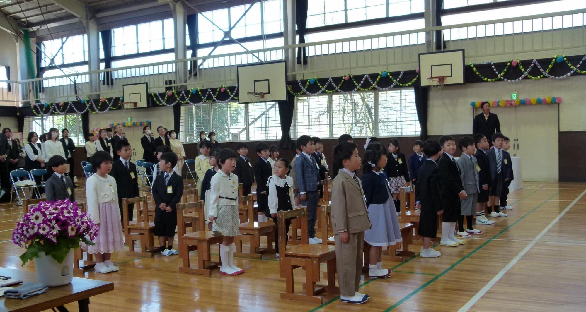 担任の先生から一人ひとり名前を呼ばれると、「はい!」と会場に響き渡る元気いっぱいの返事。その力強い声からは、これから始まる学校生活への意気込みと、輝かしい成長の予感が溢れていました。