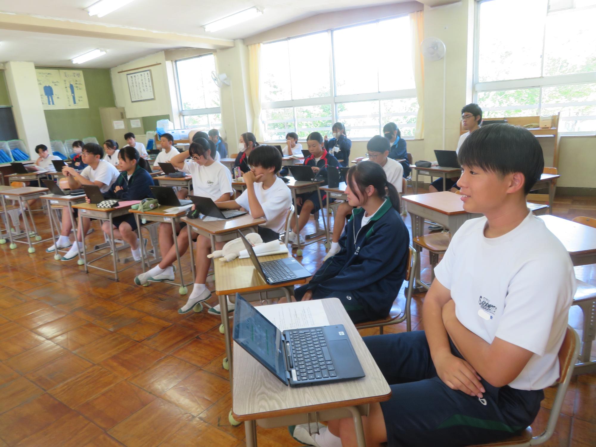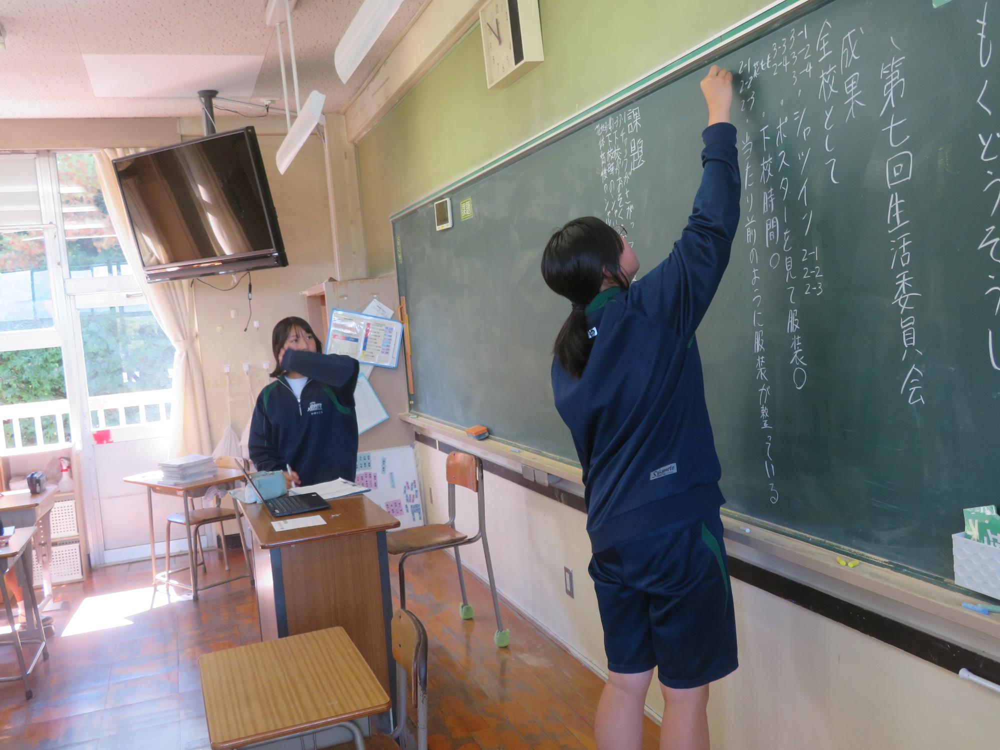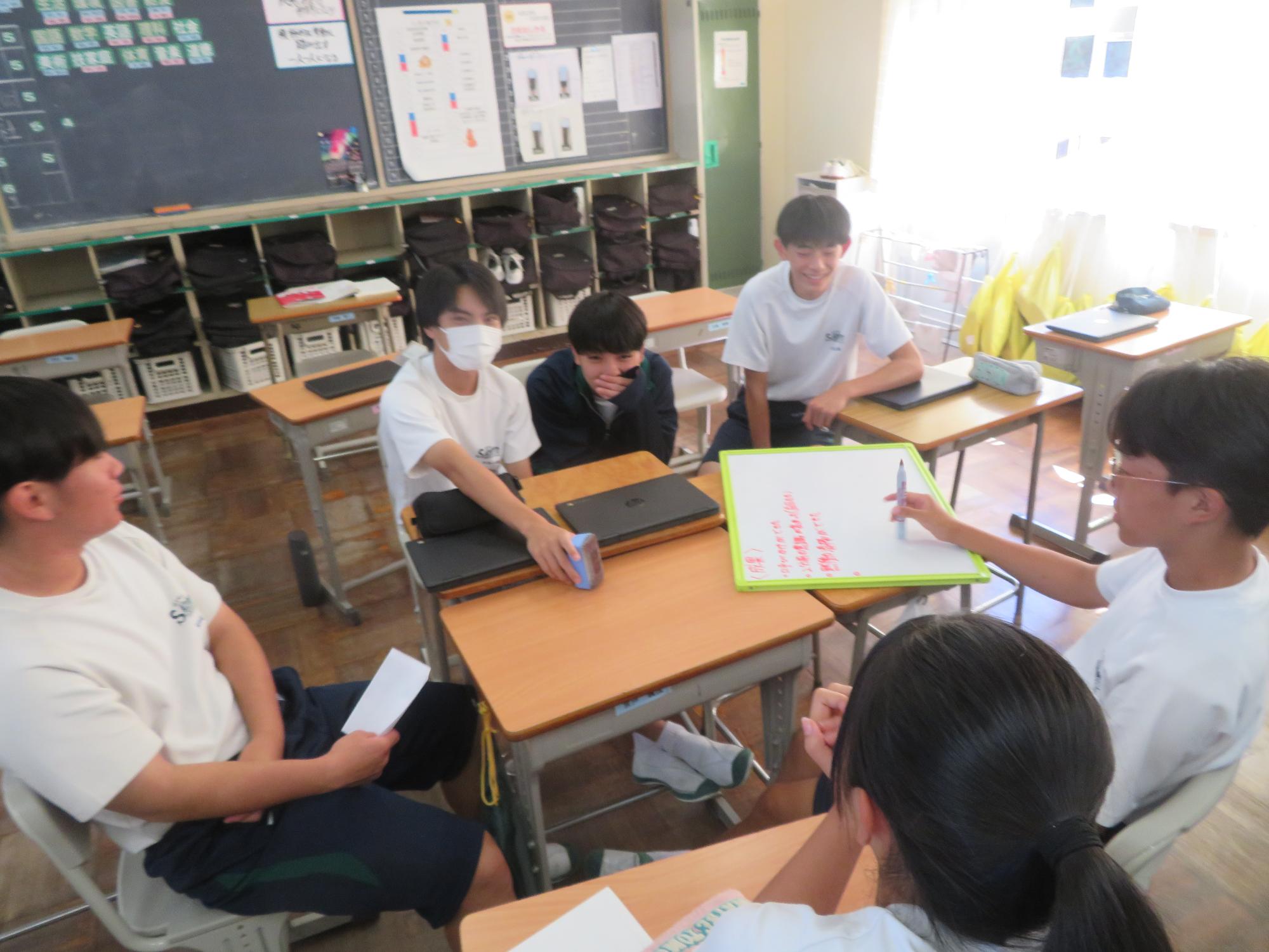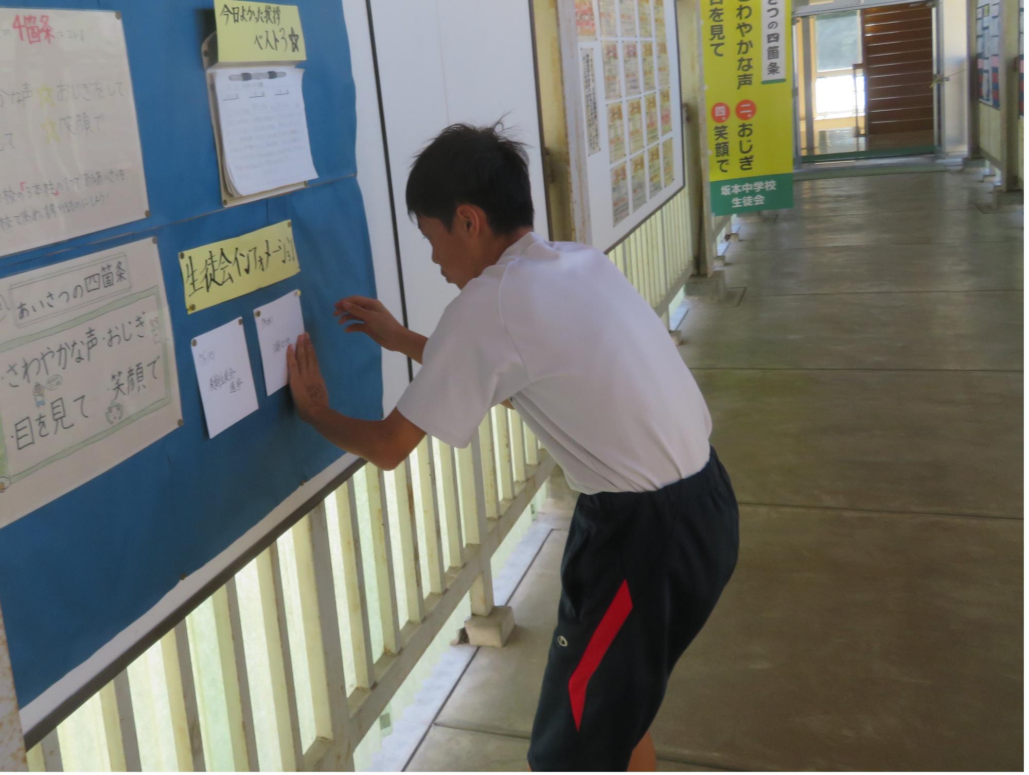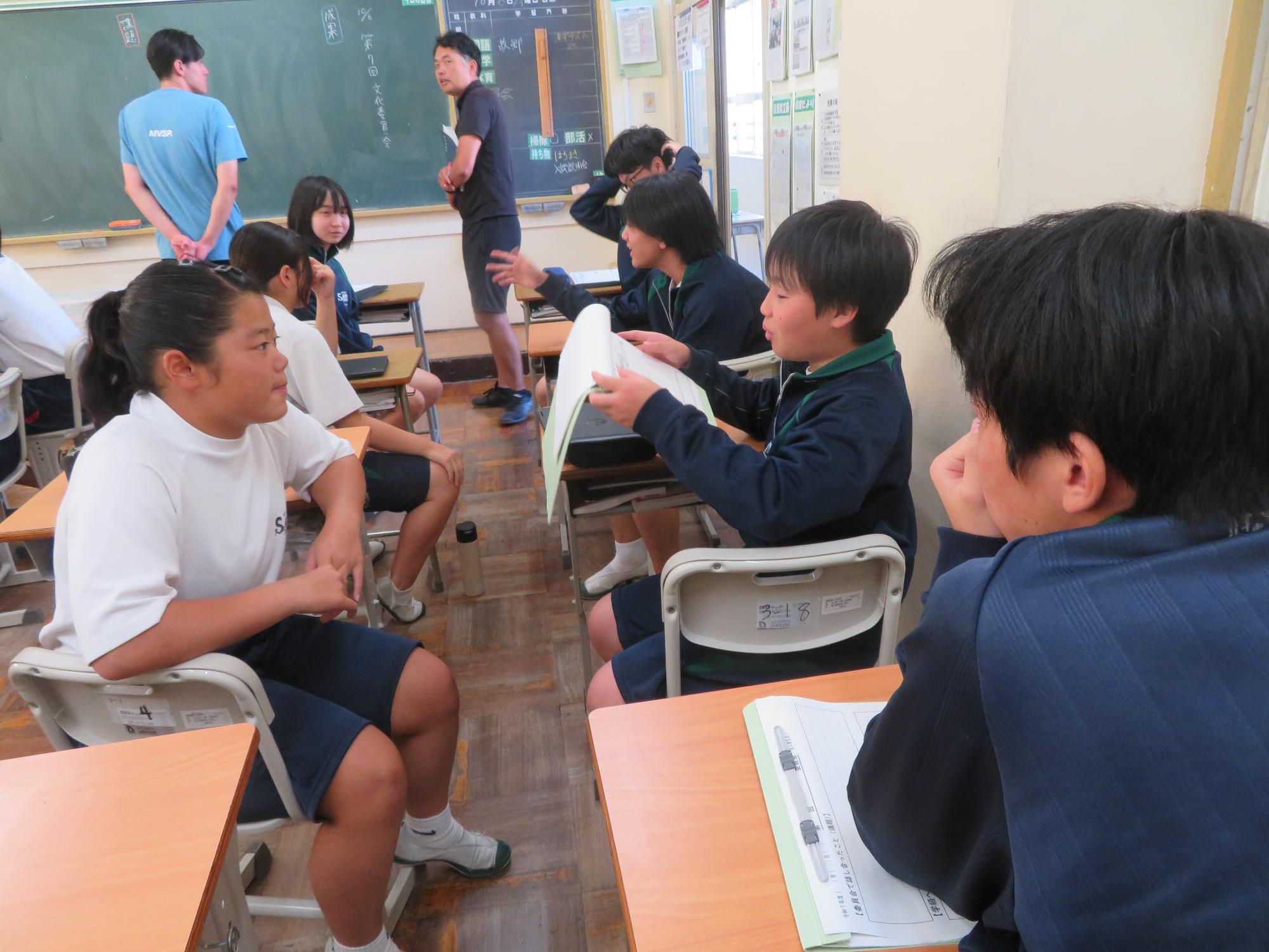 今週で前期の課程が終了します。木曜日の生徒集会に向けての委員会が行われました。どの委員会からも前期の成果と課題をはっきりさせ、後期の活動に引き継ぐ想いが伝わってきました。また、先日、感動的な体育祭を創り上げた4名の団長を招き、体育祭を終えての想いを聞きました。どの団長も「団全員が一生懸命になり、団がまとまったことが一番嬉しかった。」「仲間の思いやりのある行動に深く感動した。自分も思いやりの行動を大切にしたい。」とすがすがしい笑顔で答えてくれました。今から、後期の生徒会活動が楽しみです。