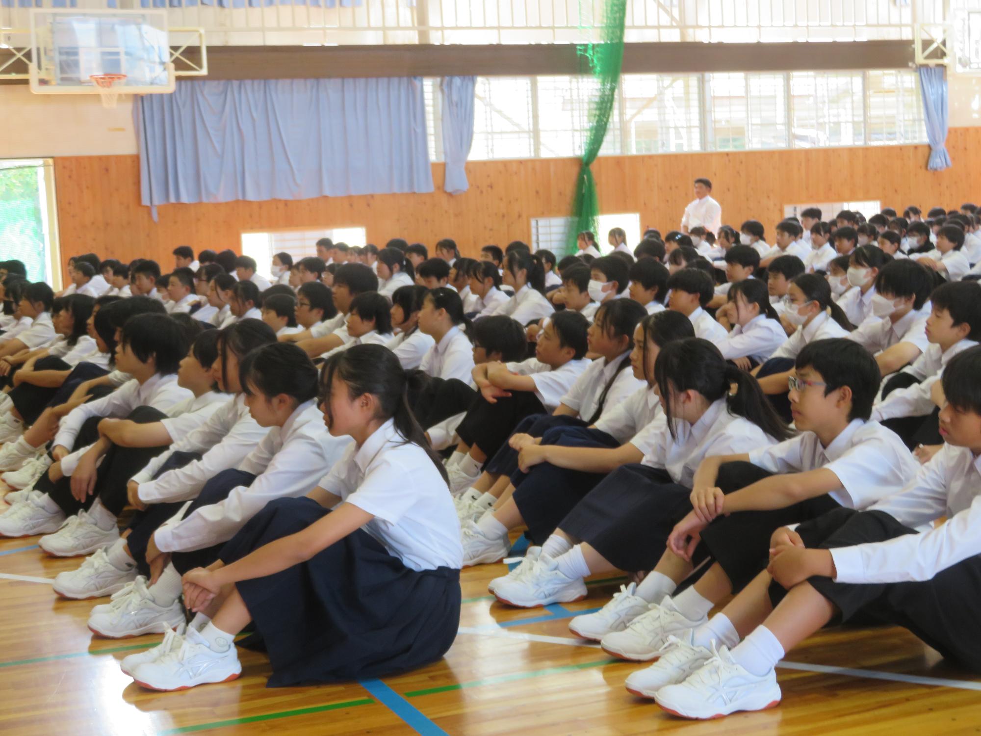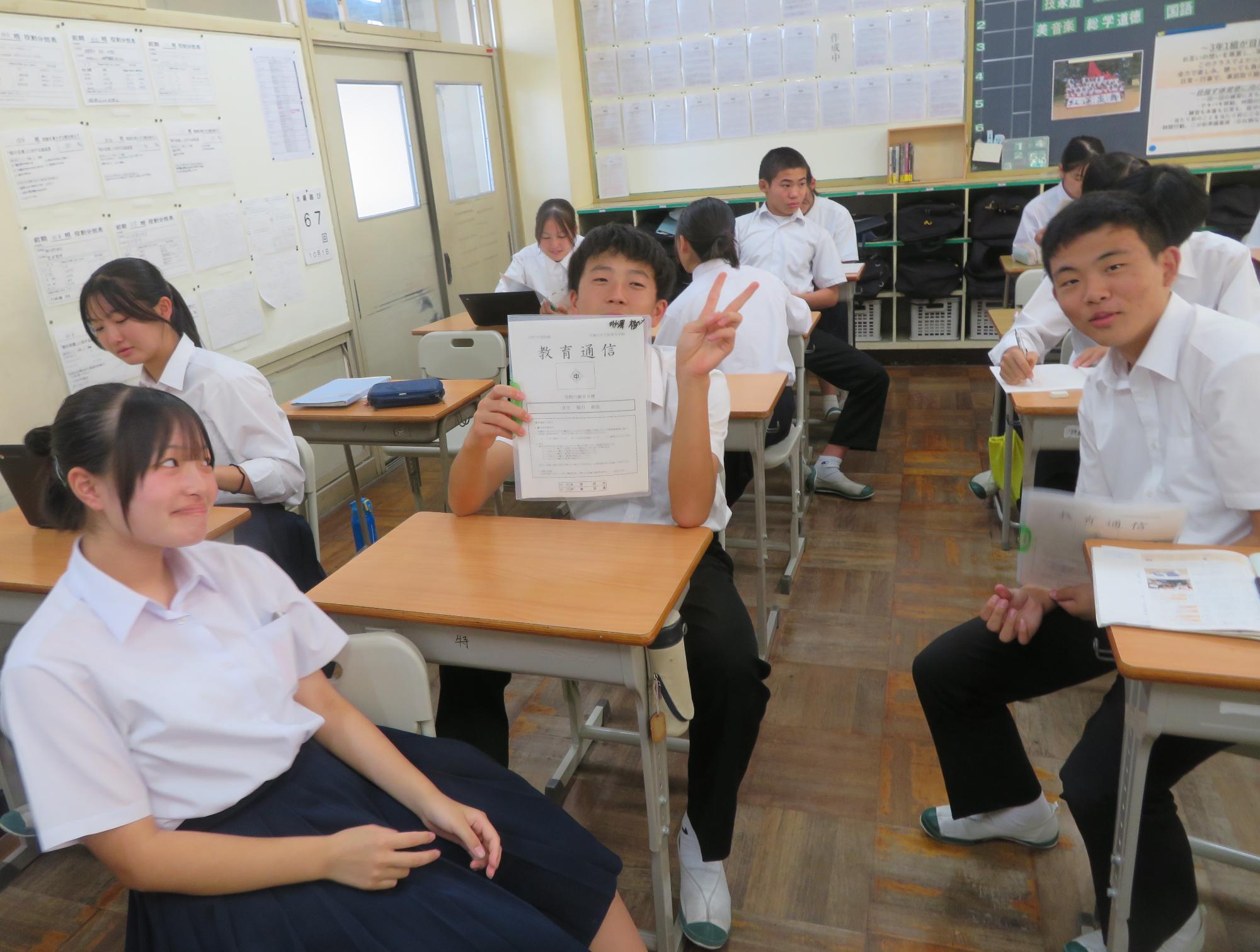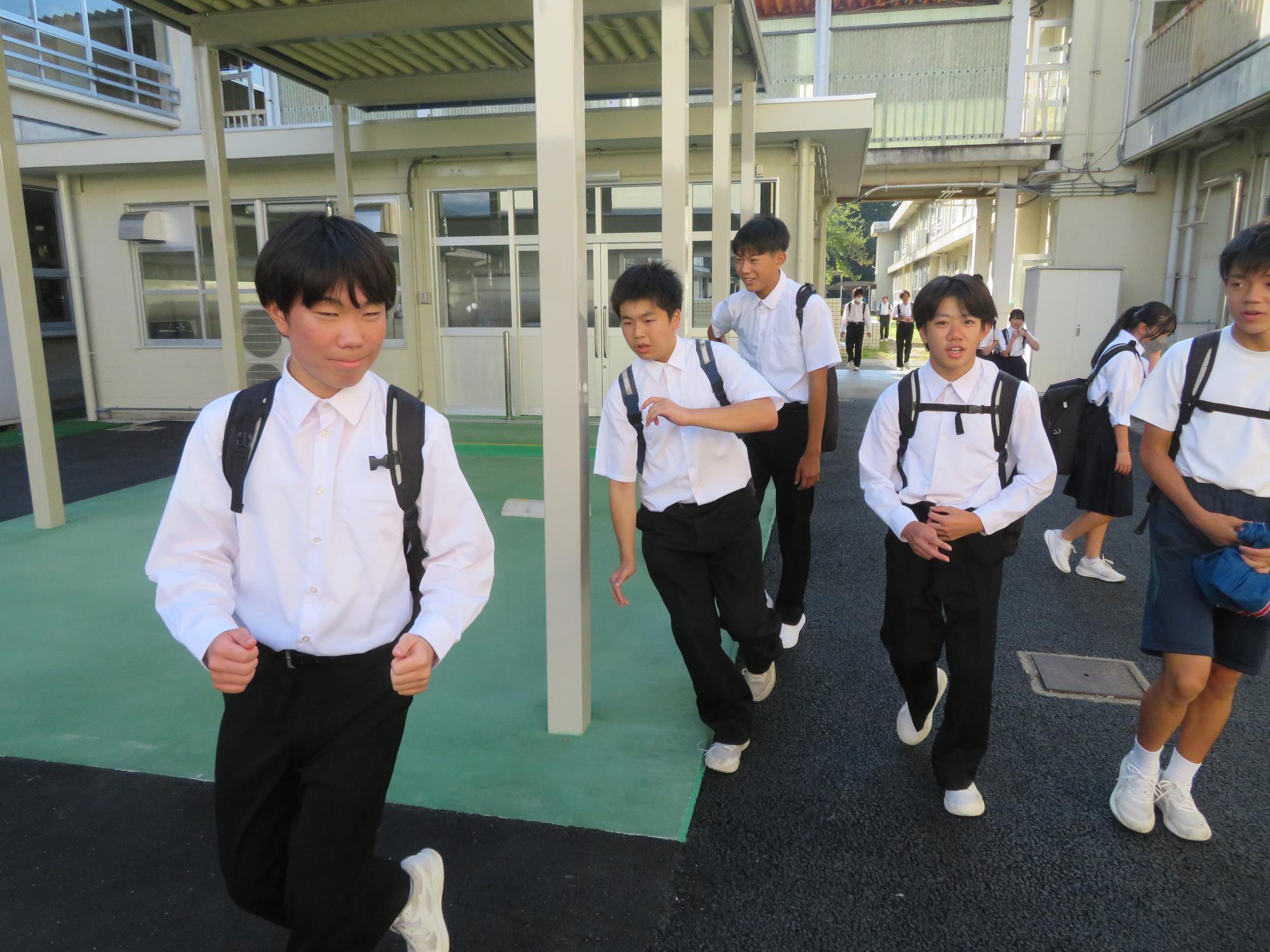 前期最後の日、前期終業式 更新日:2025年10月11日 前期終業式が行われました。前期課程は今日で終了です。生徒たちは朝から制服で登校し、いつもの笑顔と活気を出しながら、前期最後の一日を生活しました。5時間目には通知表が渡され、担任の先生から前期の価値付けと後期の方向付けが行われました。通知表を見ながら一喜一憂する姿も多々見られました。来週からは後期のスタートです。さらに自分や集団の可能性を高める坂本中になることを期待しています。