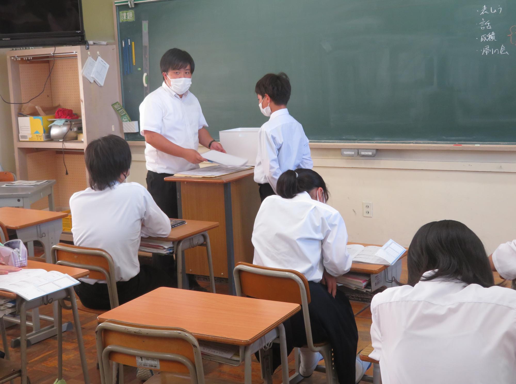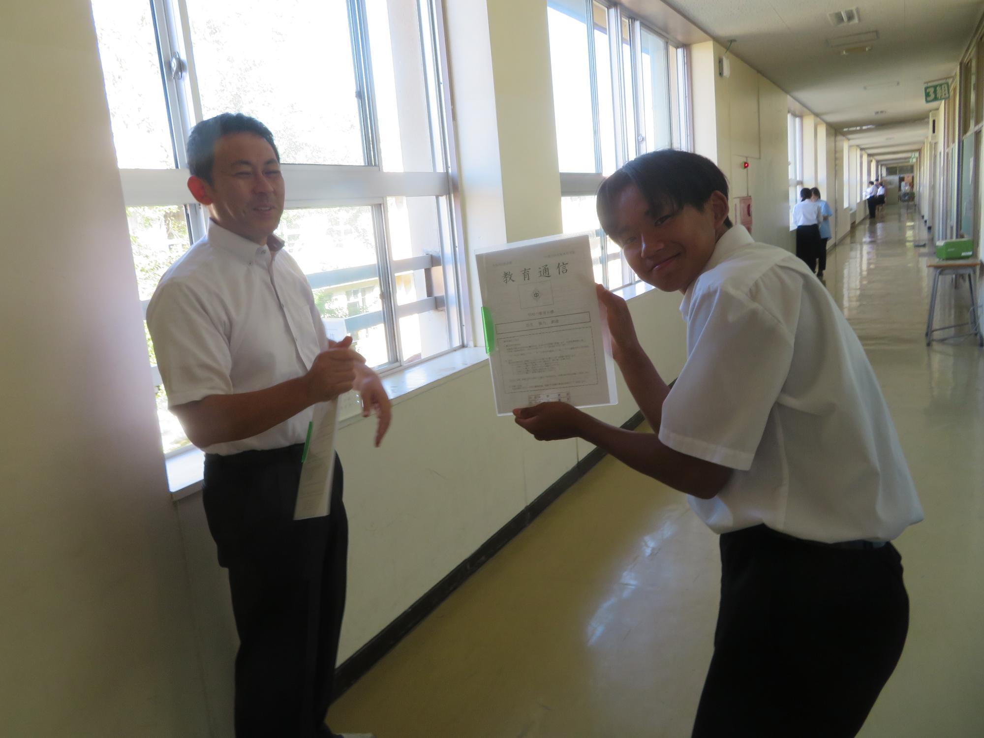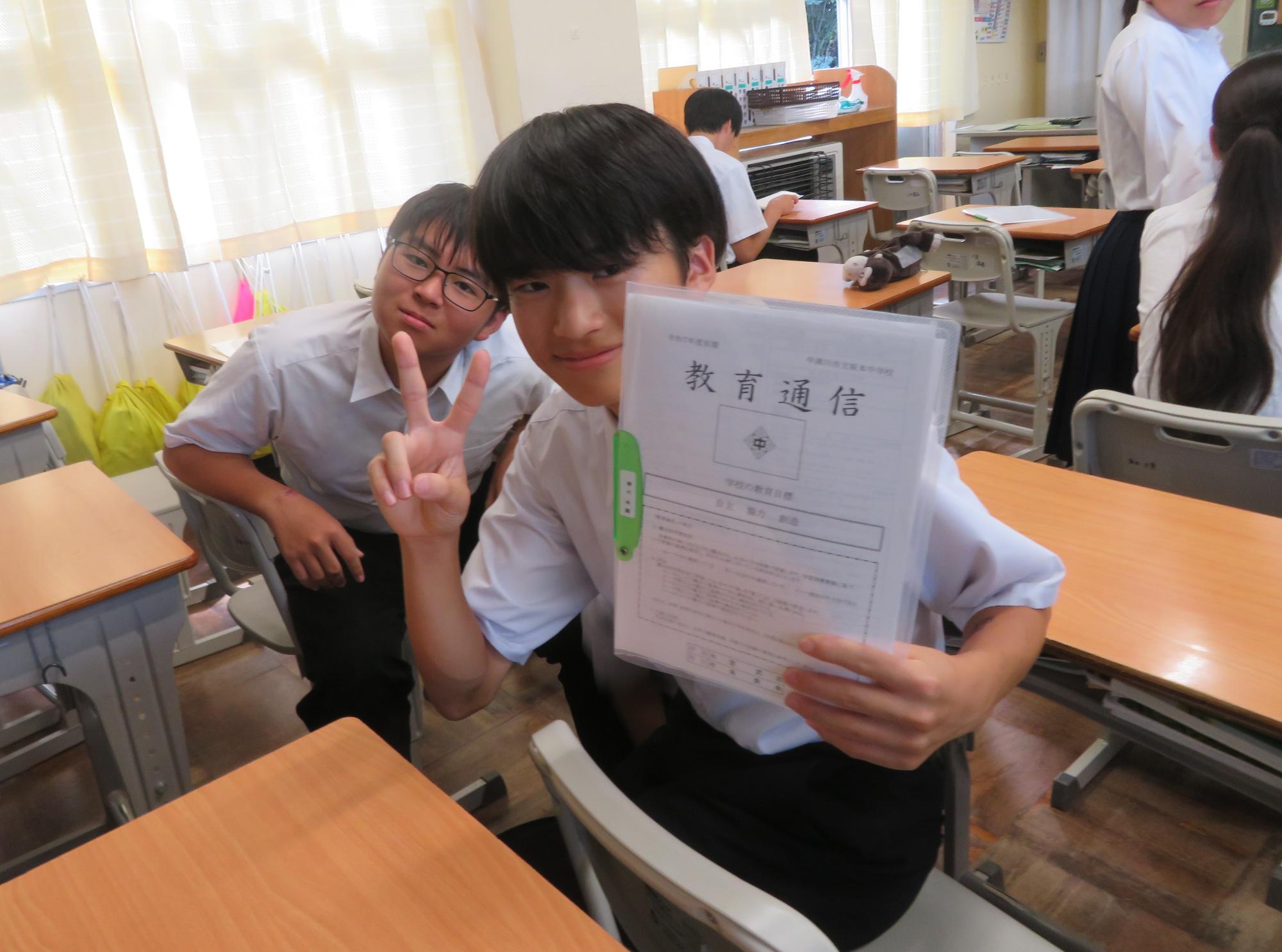前期最後の日、前期終業式 更新日:2025年10月11日 前期終業式が行われました。前期課程は今日で終了です。生徒たちは朝から制服で登校し、いつもの笑顔と活気を出しながら、前期最後の一日を生活しました。5時間目には通知表が渡され、担任の先生から前期の価値付けと後期の方向付けが行われました。通知表を見ながら一喜一憂する姿も多々見られました。来週からは後期のスタートです。さらに自分や集団の可能性を高める坂本中になることを期待しています。