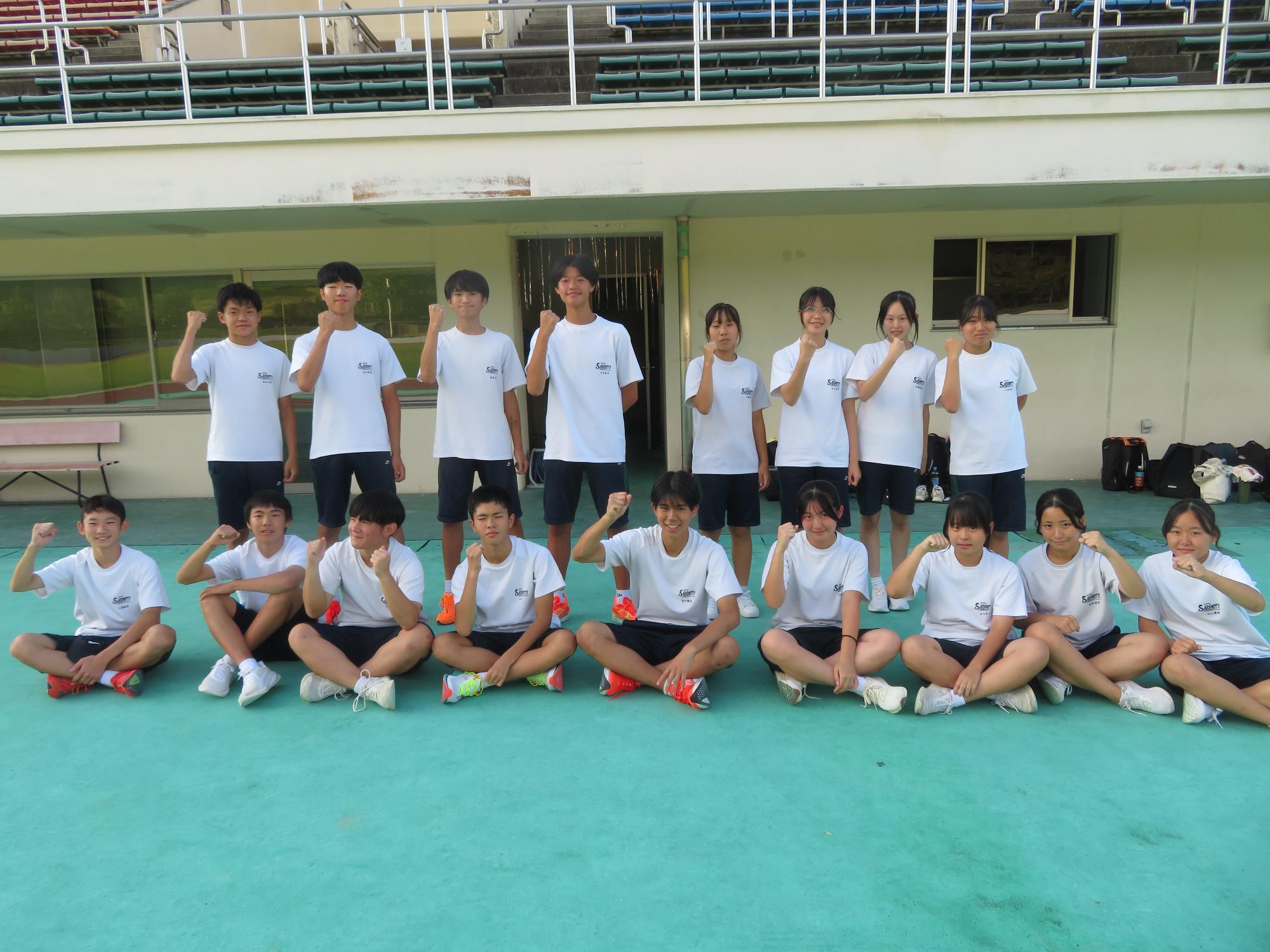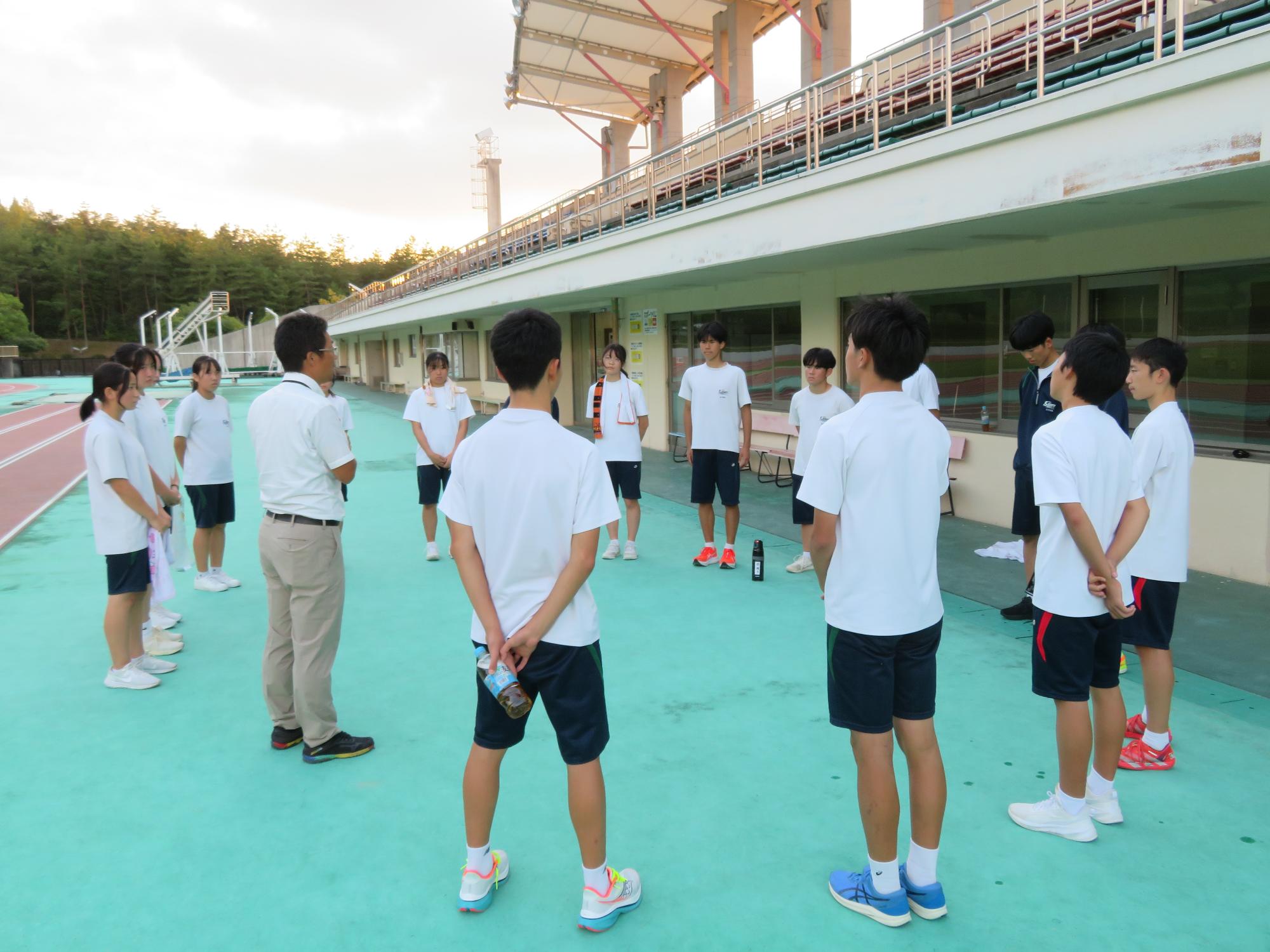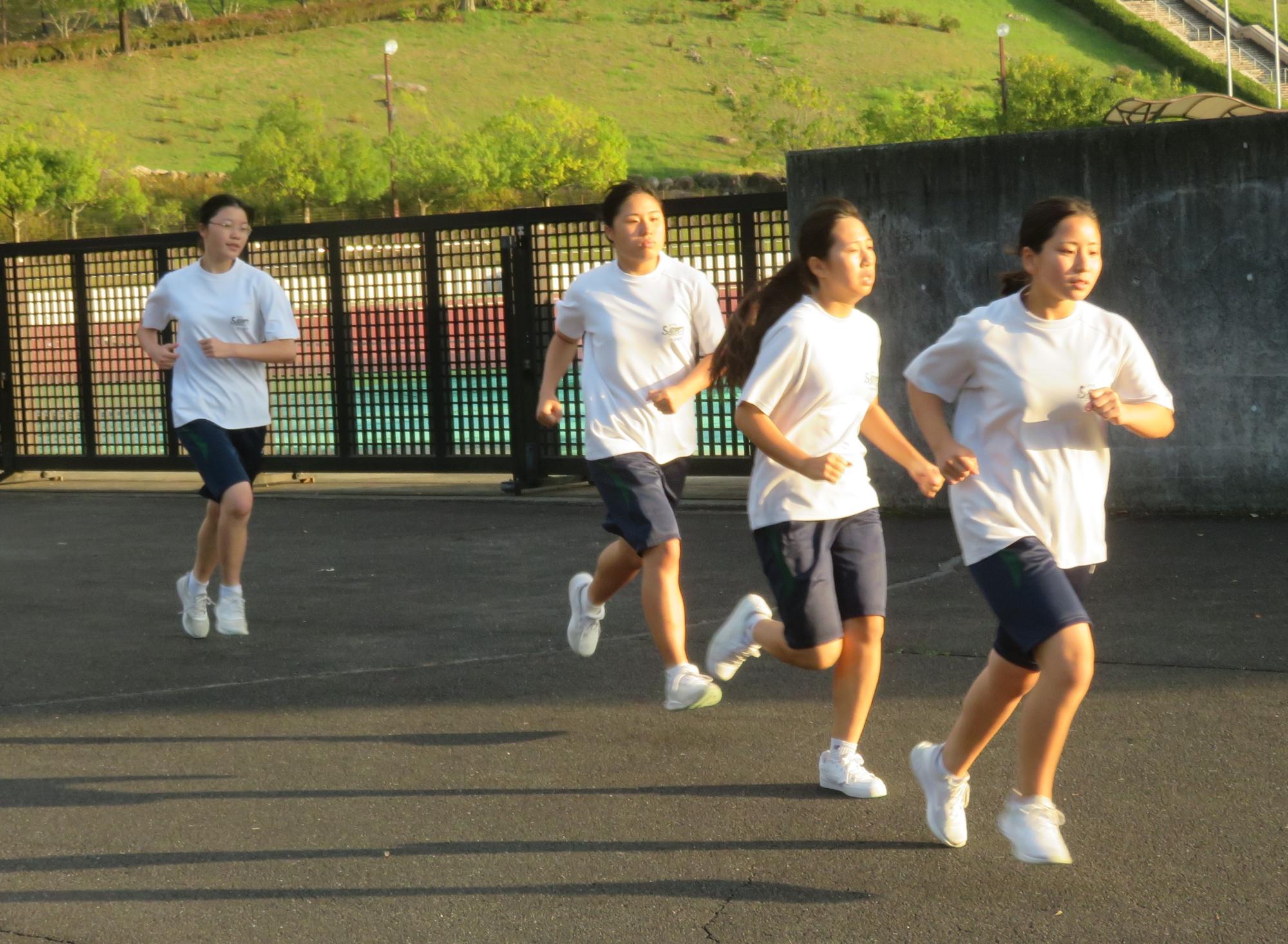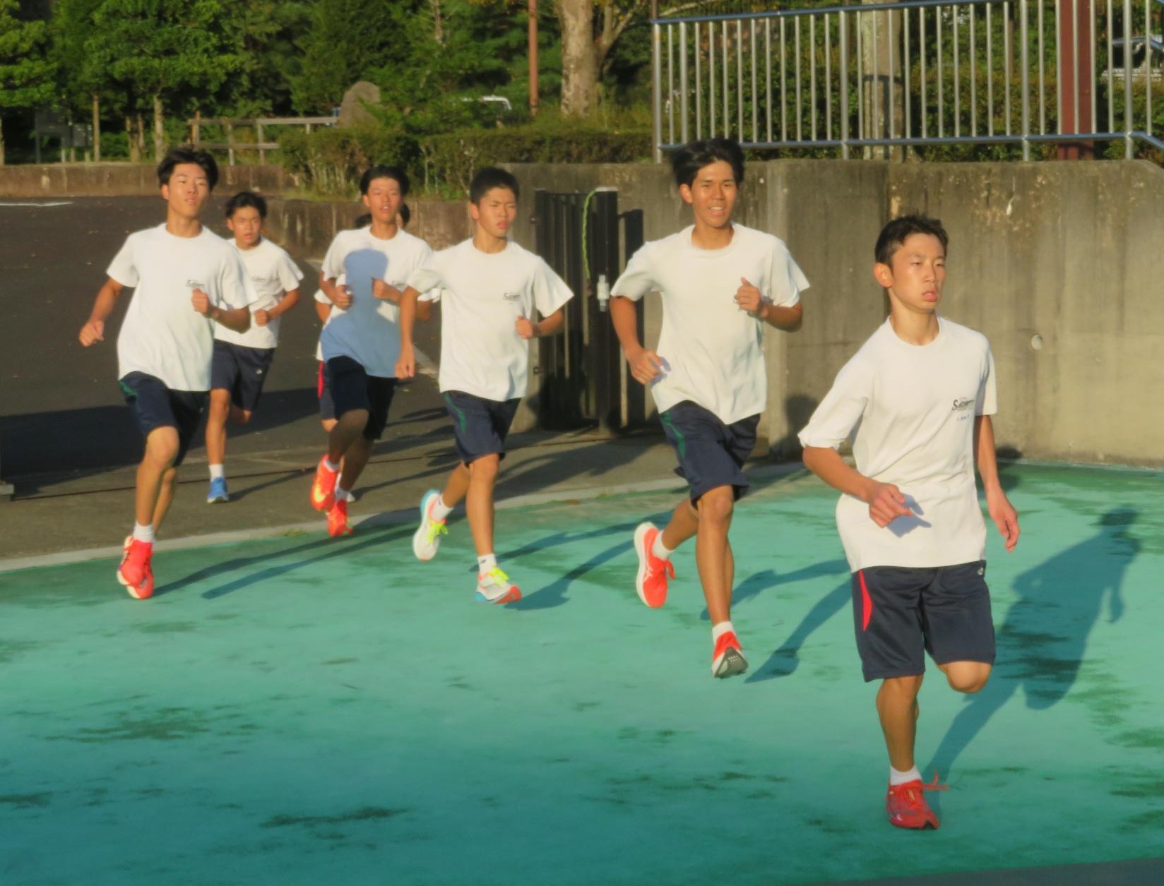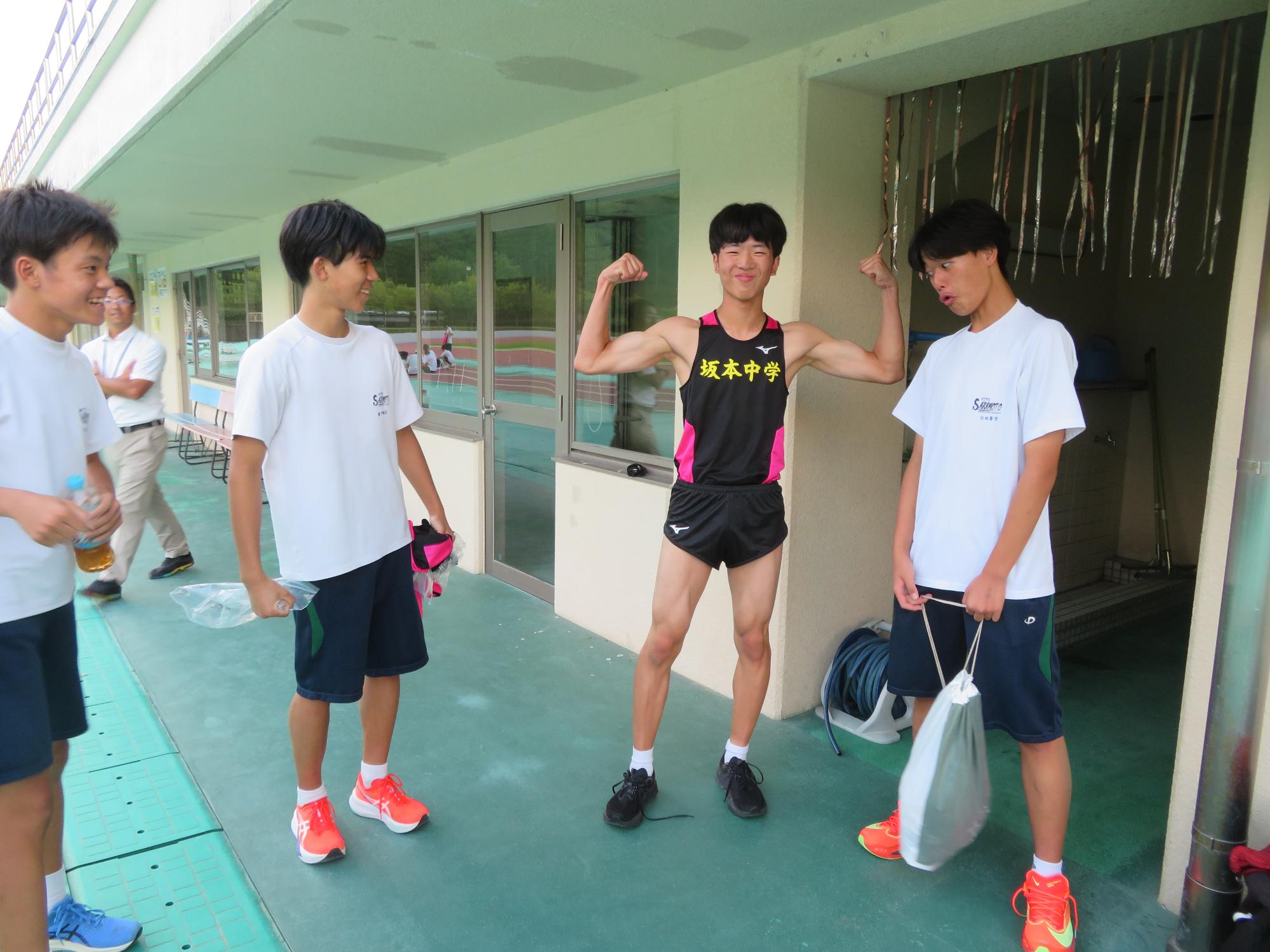 坂中駅伝部、現地での練習で力走 更新日:2025年10月11日 前期終業式が終わったあと、坂中駅伝部は本番が行われる中津川陸上競技場に行き練習をしました。個々の意気込みがヒシヒシと伝わってくる練習でした。アップの時は笑顔、タイムレースの際は、本番さながらの緊張感をもった力走が見られました。歯を食いしばり走り姿が大変魅力的であり、一生懸命な姿で練習に向かっている坂中駅伝部を心から称えたいです。本番は自分との闘い。素晴らしい力走をしてくれると今から確信しています。