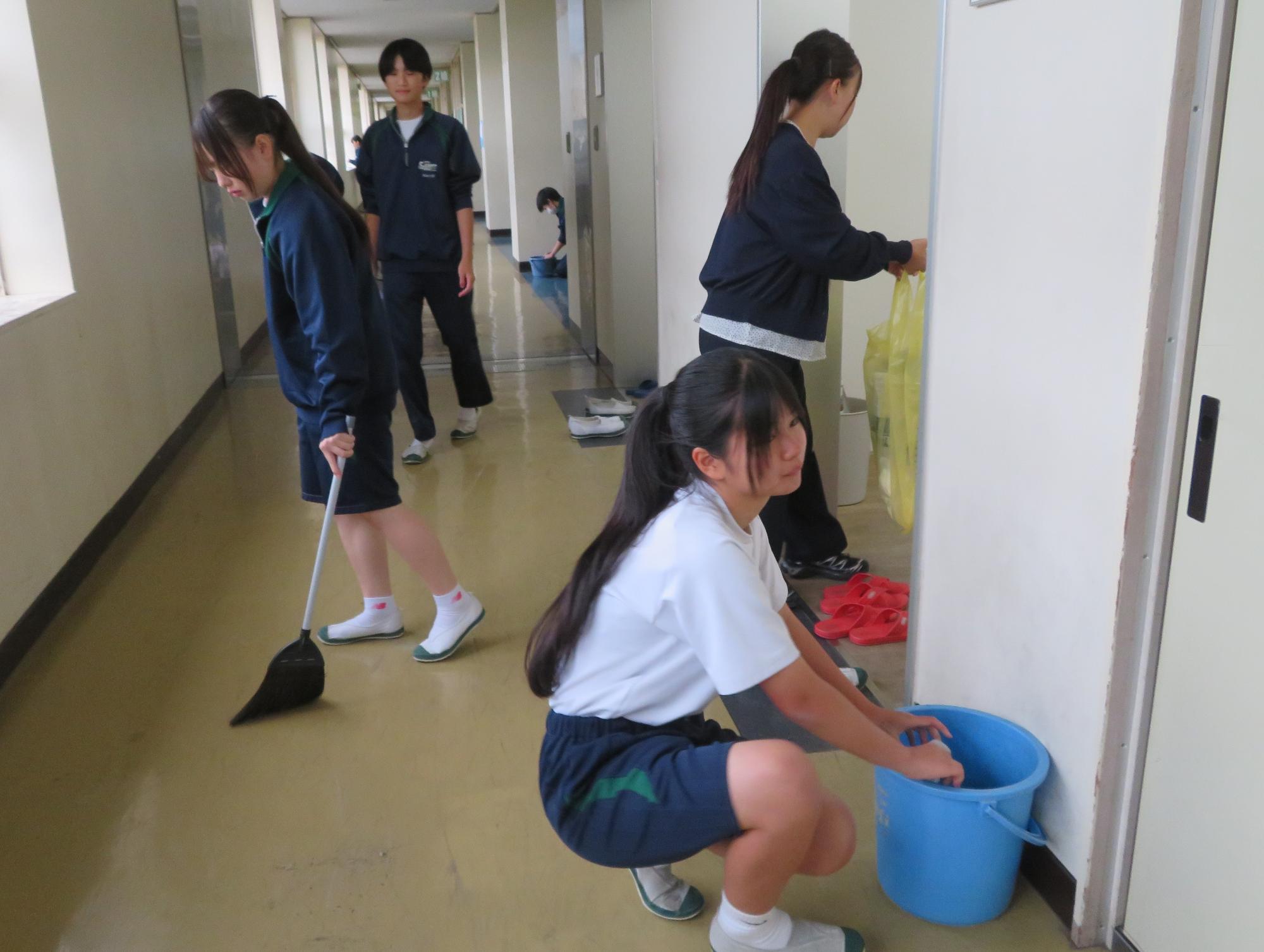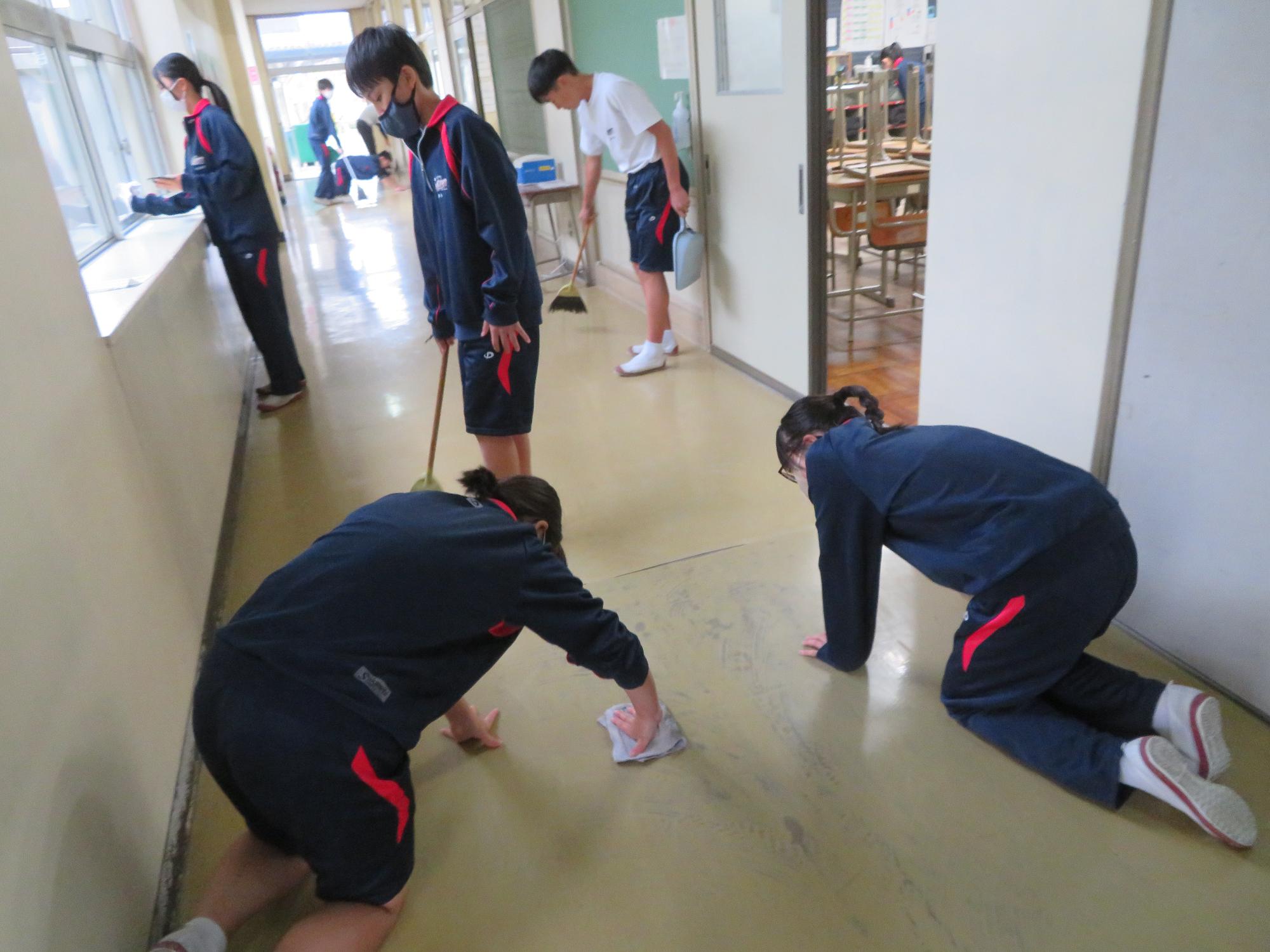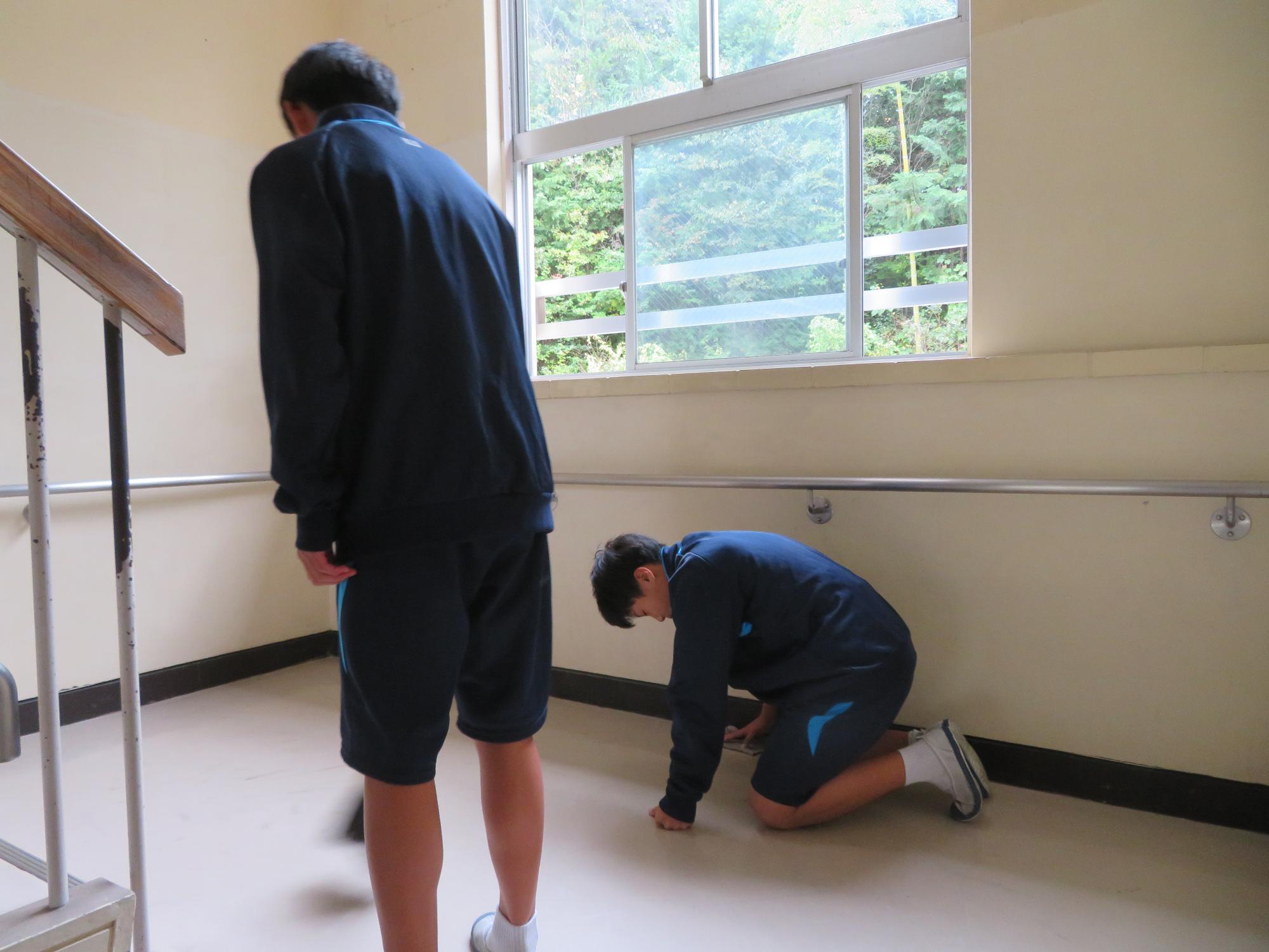 前期の掃除場所で最後のBRUSH UP! 更新日:2025年10月22日 今週で前期の掃除場所は最後となります。来週からは後期の掃除場所に変更です。前期の間、一生懸命に掃除した場所ともお別れです。そんな気持ちもあるのか、今週は、これまで以上に時間いっぱい真剣に掃除に向かう姿が随所に見られます。掃除に真剣に向き合うことで、掃除場所とともに心も美しくなっている坂中生だと思います。後期の掃除場所に変わっても、引き続きBRUSH UPし続ける坂中生です。