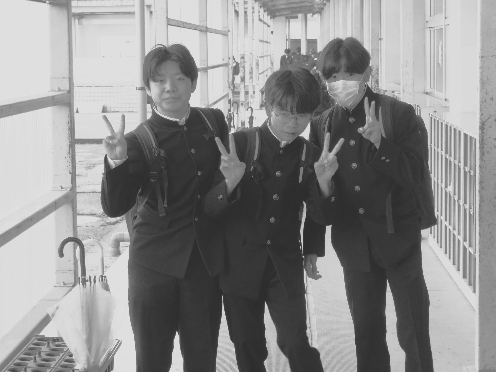 (注)朝の登校中に取材した3年生の生徒については、白黒の写真にぼかしをつけて載せさせていただきます。