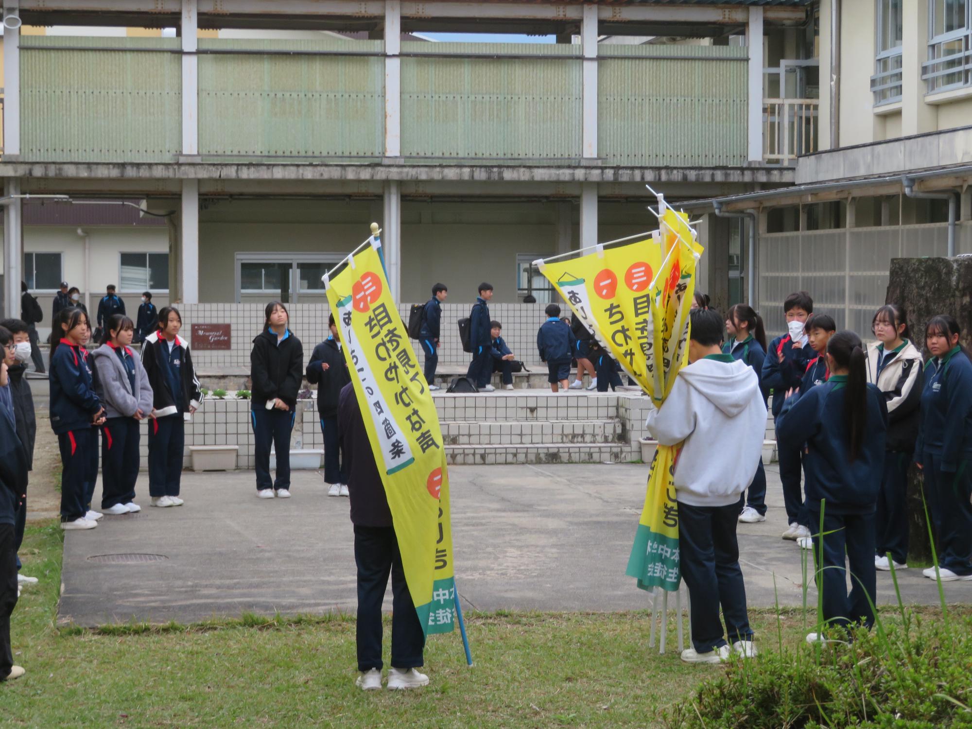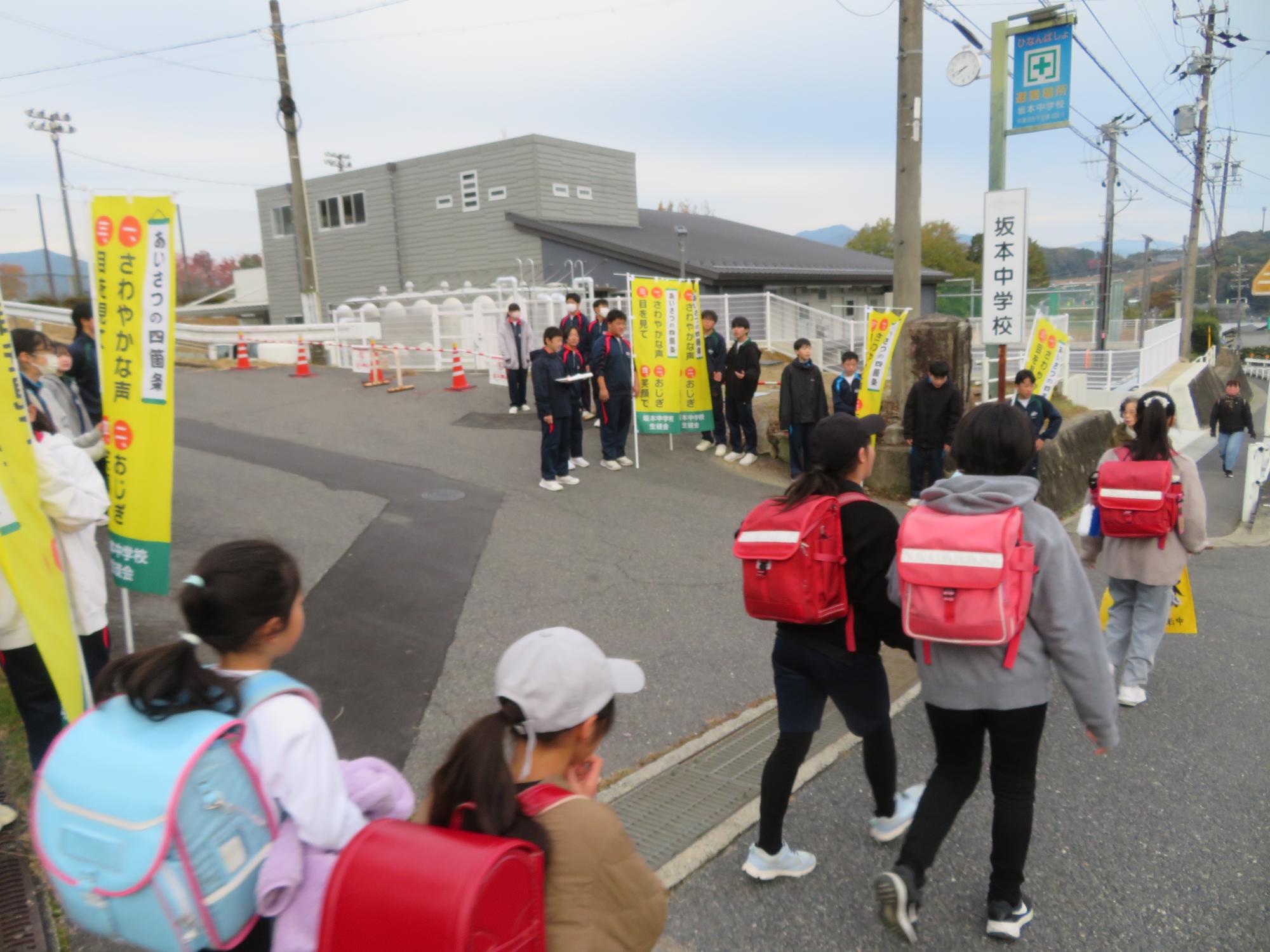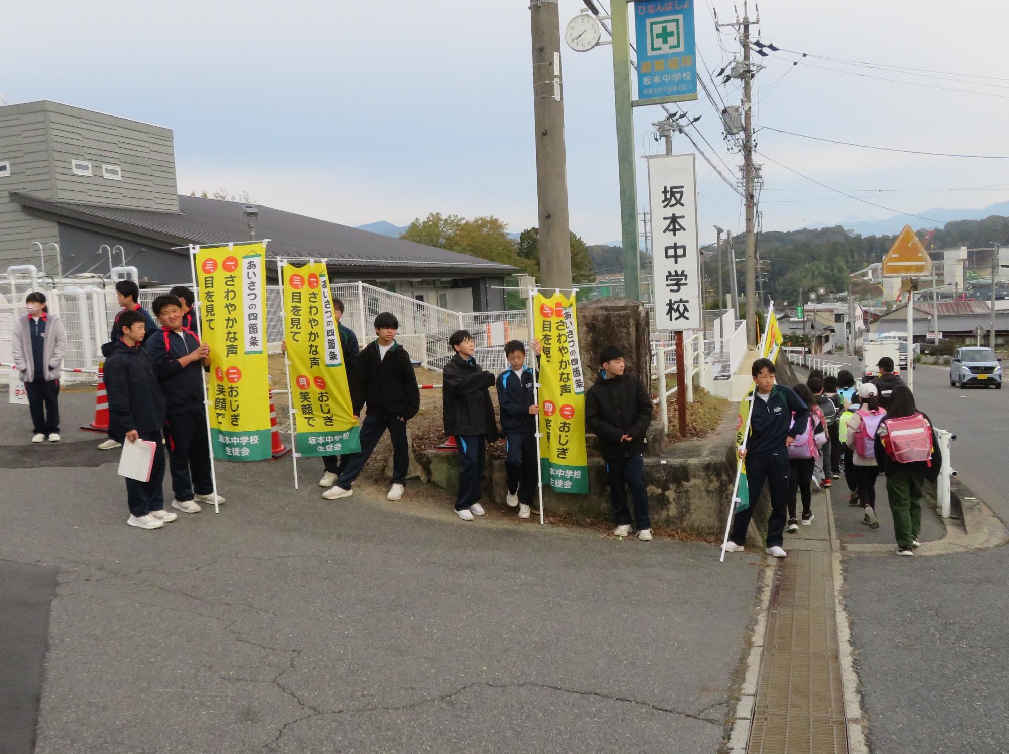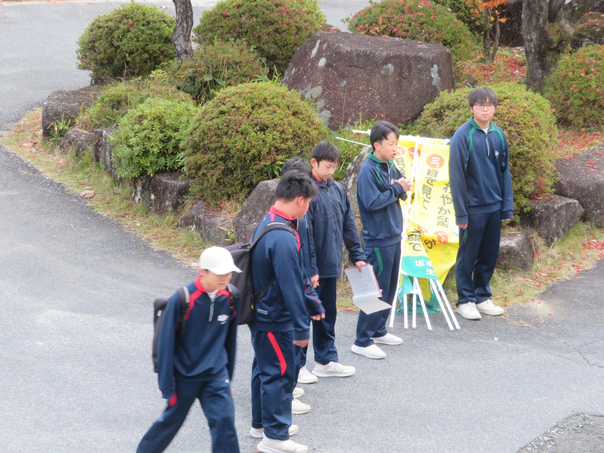 寒さと風邪を吹き飛ばす挨拶運動 更新日:2025年11月13日 今日も朝の気温は7℃。寒さの中、7:30から生徒会主催の挨拶運動が始まりました。MSJリーダーズ活動として参加した生徒は約80名。「おはようございます!」という元気な声が響いていました。小学生に優しく声をかける姿。駅に向かう地域の方に明るく声をかける姿。坂中生の仲間に笑顔で挨拶する姿。寒さや風邪を吹き飛ばす坂中生のエネルギーがビシビシと伝わってくる朝の様子でした。