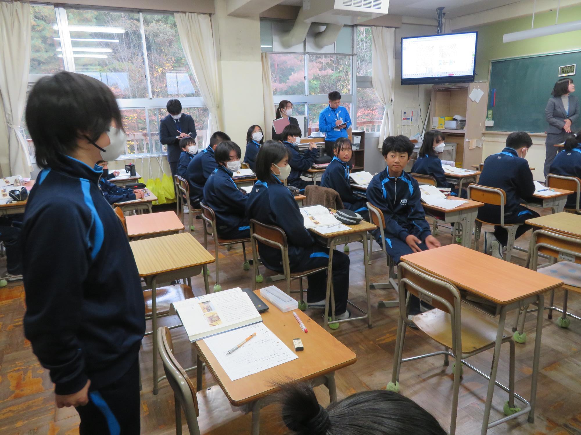仲間とつながり合い授業でBRUSH UP 更新日:2025年11月25日 連休明け、生徒たちの授業で頑張り合う姿が随所に見られました。自分一人で考える時間はじっくり考え、仲間とともに考え合う時間は仲間と意見を言い合いながら考えを深めている姿が見られます。一人ではなく、集団で授業を受けているよさがあらわれていると感じます。学校の授業の中でも、自分の可能性を広げ、高めていける坂中生であり続けることを期待しています。
