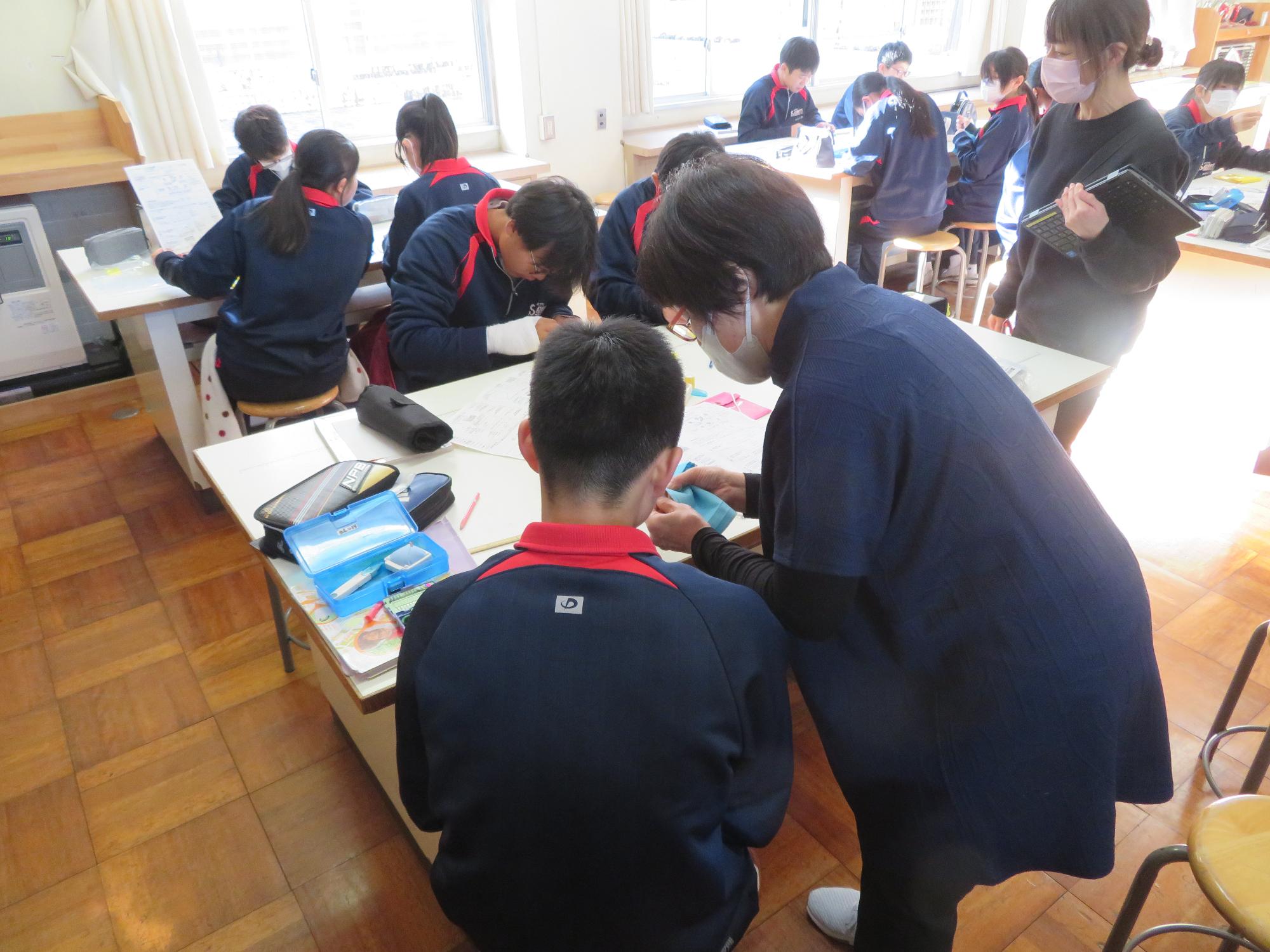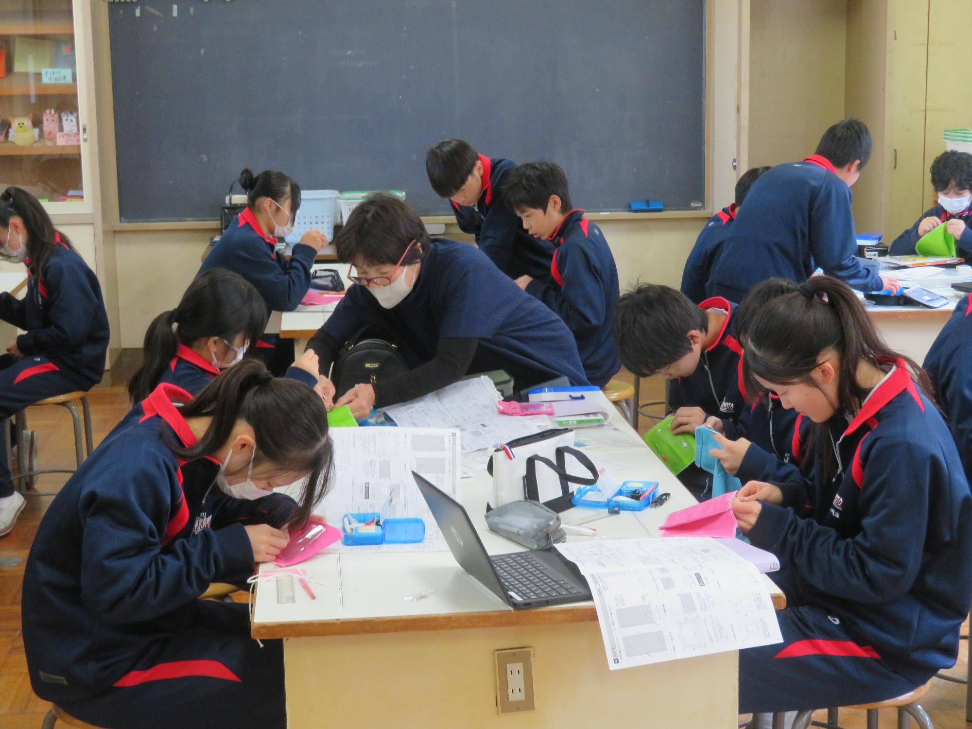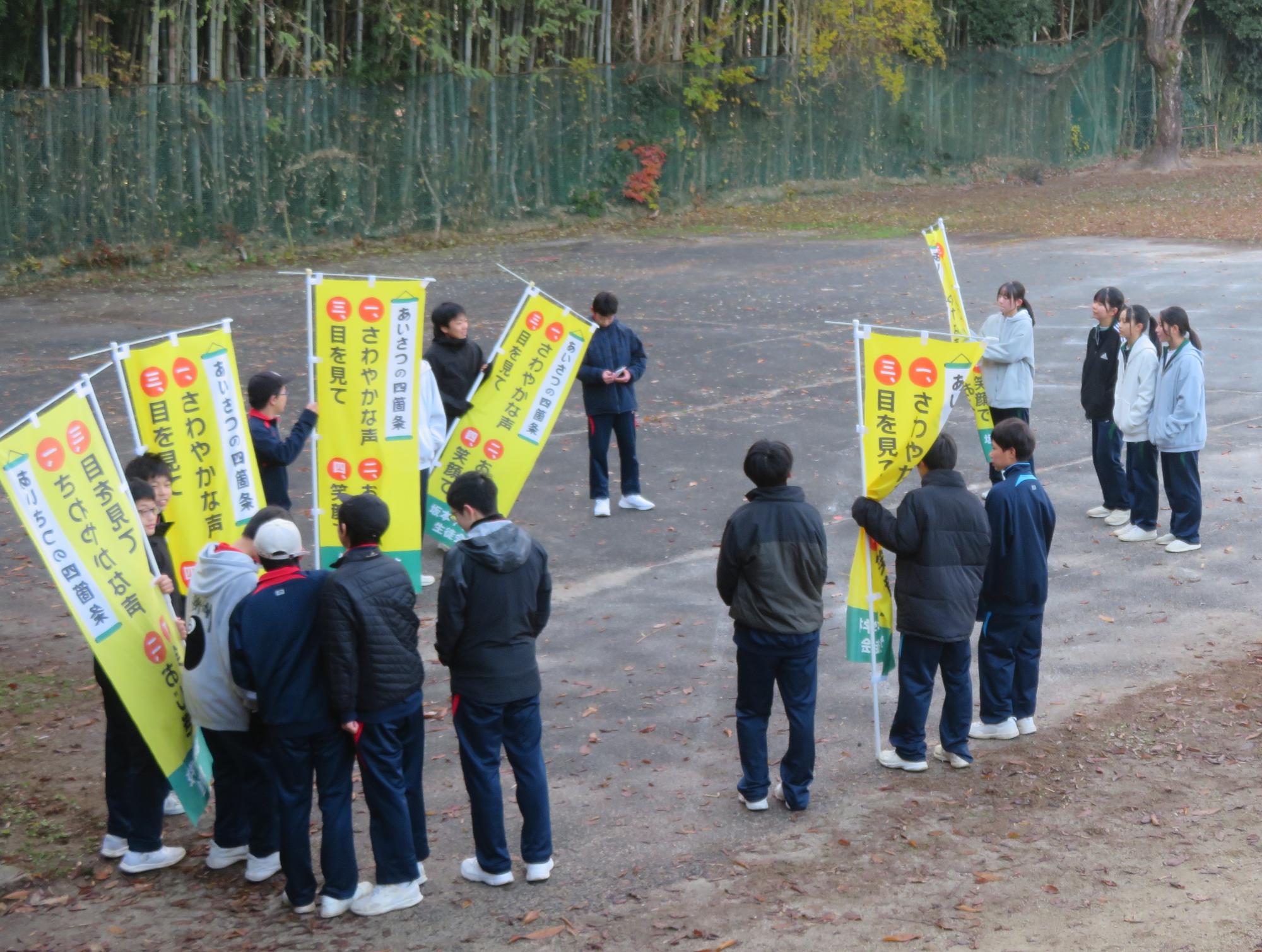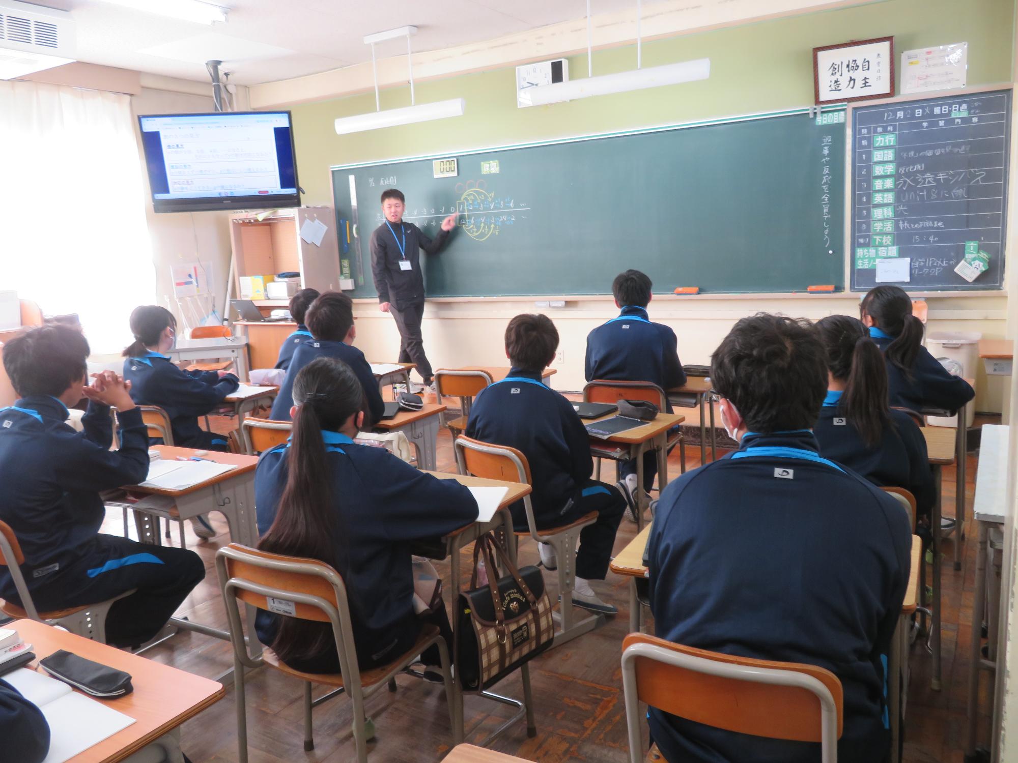 昨日に続けて、授業でBRUSH UPしている坂中生の姿を紹介します。本日も学校運営協議会のご協力で、坂本地区在住の川瀬さまに家庭科の実習のサポートに入っていただきました。また、持久走の授業が始まり、生徒たちが自分の体力に合わせ、一生懸命に頑張り姿が随所に見られます。また、今日はPTAの郊外生活委員の方との挨拶運動も7:30から元気に行われました。その姿も同時に紹介します。師走に入り、寒くなっても一生懸命に活動に向かう坂中生です。