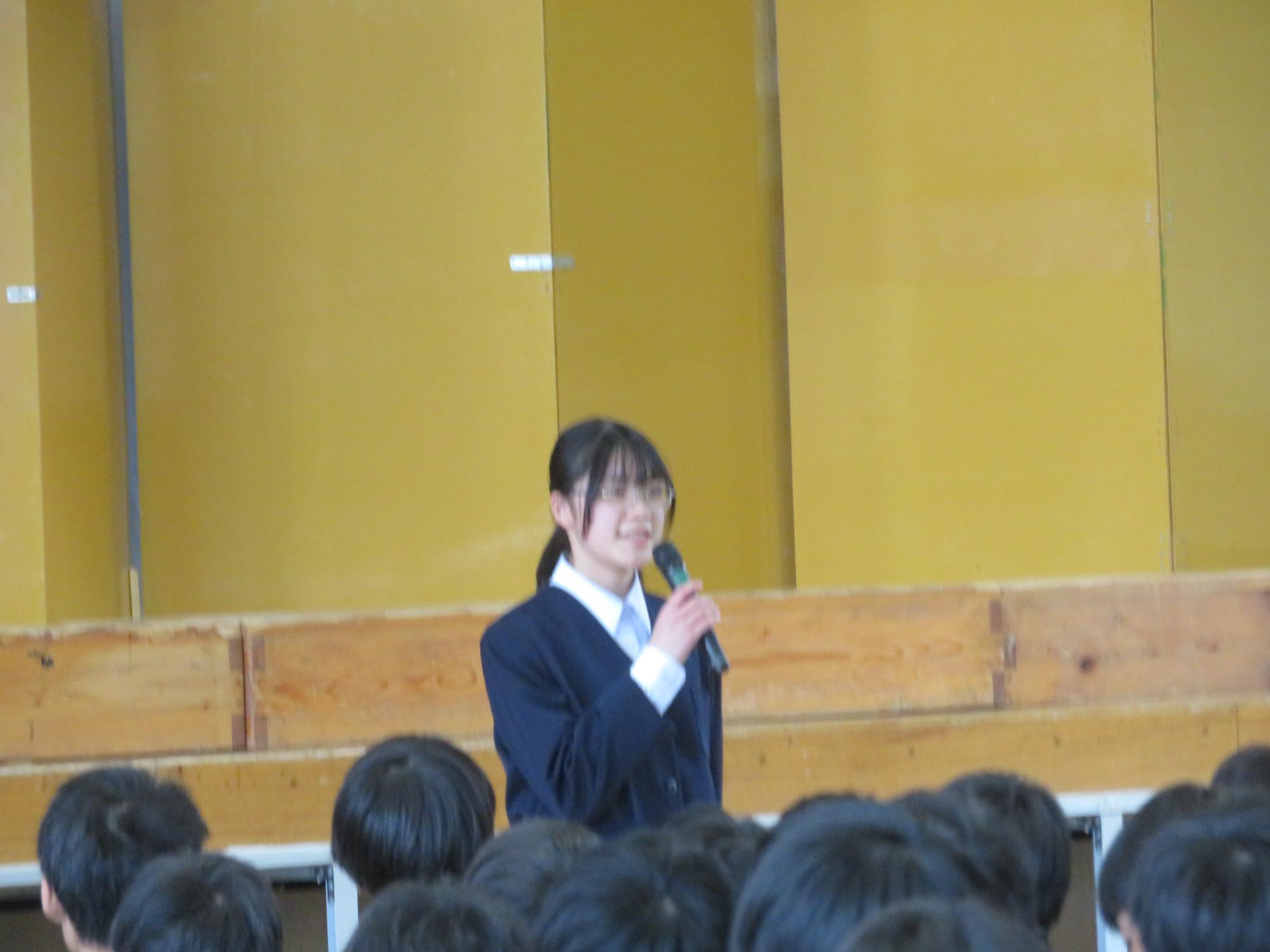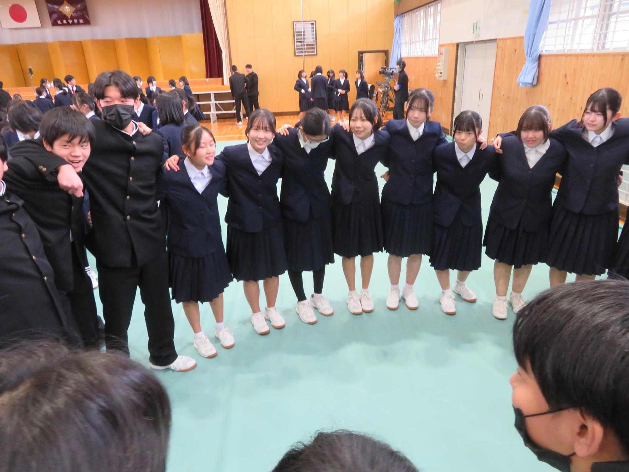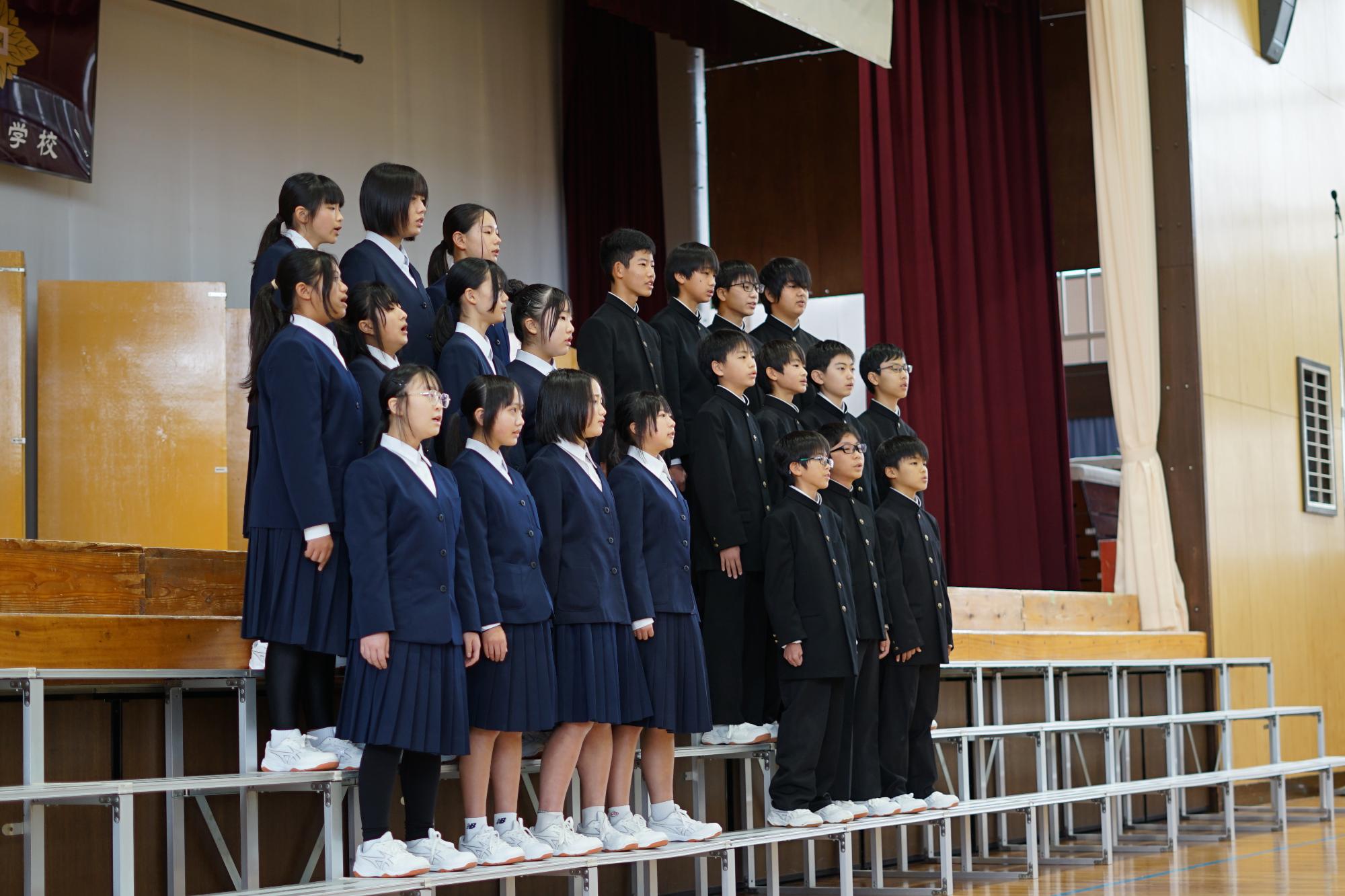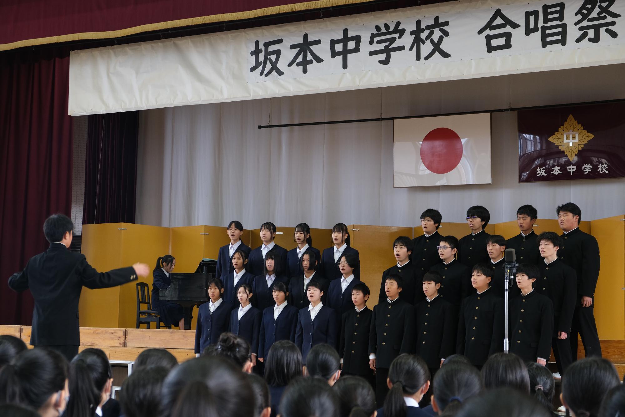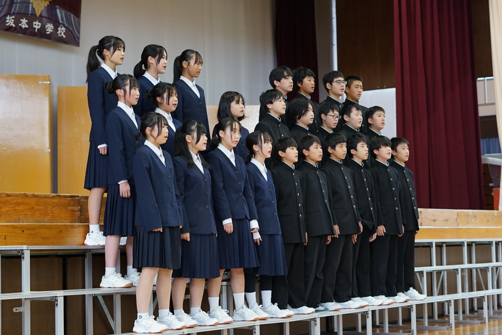 坂中合唱祭が行われました。インフルエンザの感染者が何人かいて全員で歌えない学級も多々ありましたが、どの学級も仲間と一生懸命に歌う姿、心と心をつなぎ合唱に取り組む姿が随所に見られ、たくさんの感動を与えてくれました。クラス合唱もさることながら、学年合唱、全校合唱は圧巻でした。特に、全校合唱「フェニックス」は、能登半島地震で被災された方への哀悼の心、復興に対しての応援の心を確実に届ける心のこもった合唱でした。「合唱っていいな。」「合唱って心と心をつなぐ可能性を秘めているな。」と強く感じ、感動いっぱいの坂中合唱祭でした。今後も、坂中の誇りとして大切にしていく坂中生を楽しみにしています。