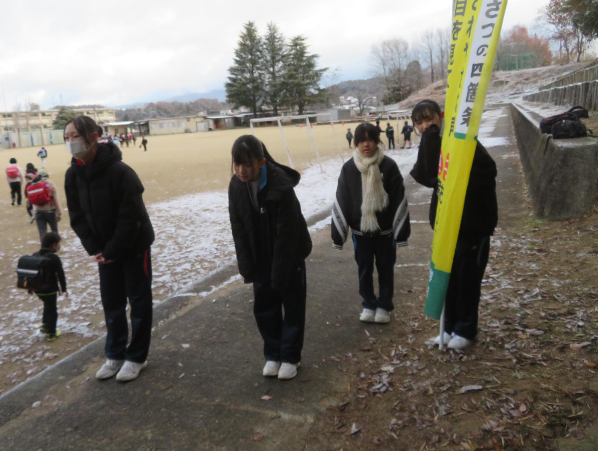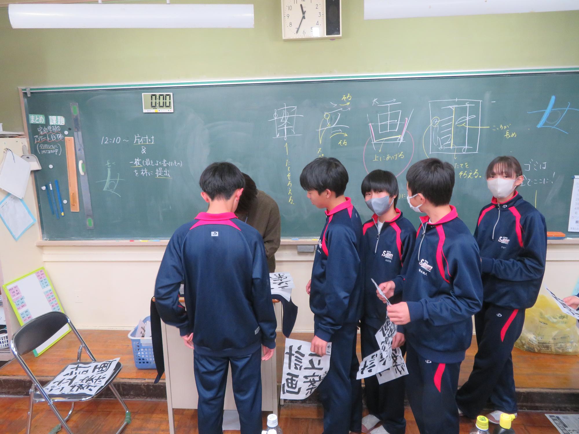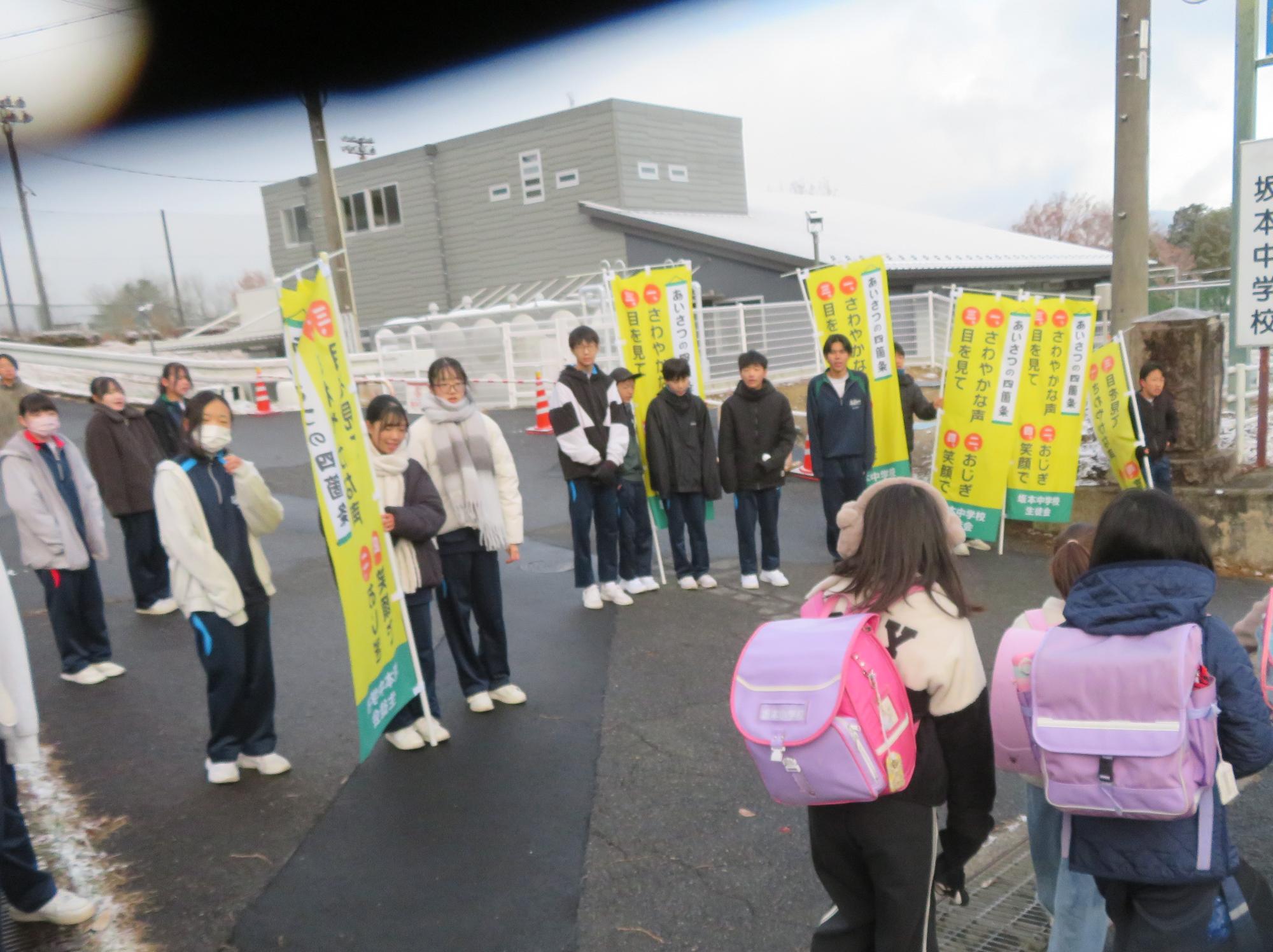 インフルエンザの流行が、再度、坂本地区にも発生しています。小学校では学級閉鎖の学級も出ているようです。中学校でもインフルエンザに罹患する生徒がいて、昨日の合唱祭も少ない人数の学級もありましたが、学級でつながり合い、今できる最高の合唱を披露したことは大変素晴らしいことでした。その勢いをそのまま、今日の学校生活にもつなげている坂中生でした。小雪が舞う中での挨拶運動、必死に取り組むスポーツテスト。心を集中させて取り組む書道。一生懸命をためらわない坂中生の姿は立派です。