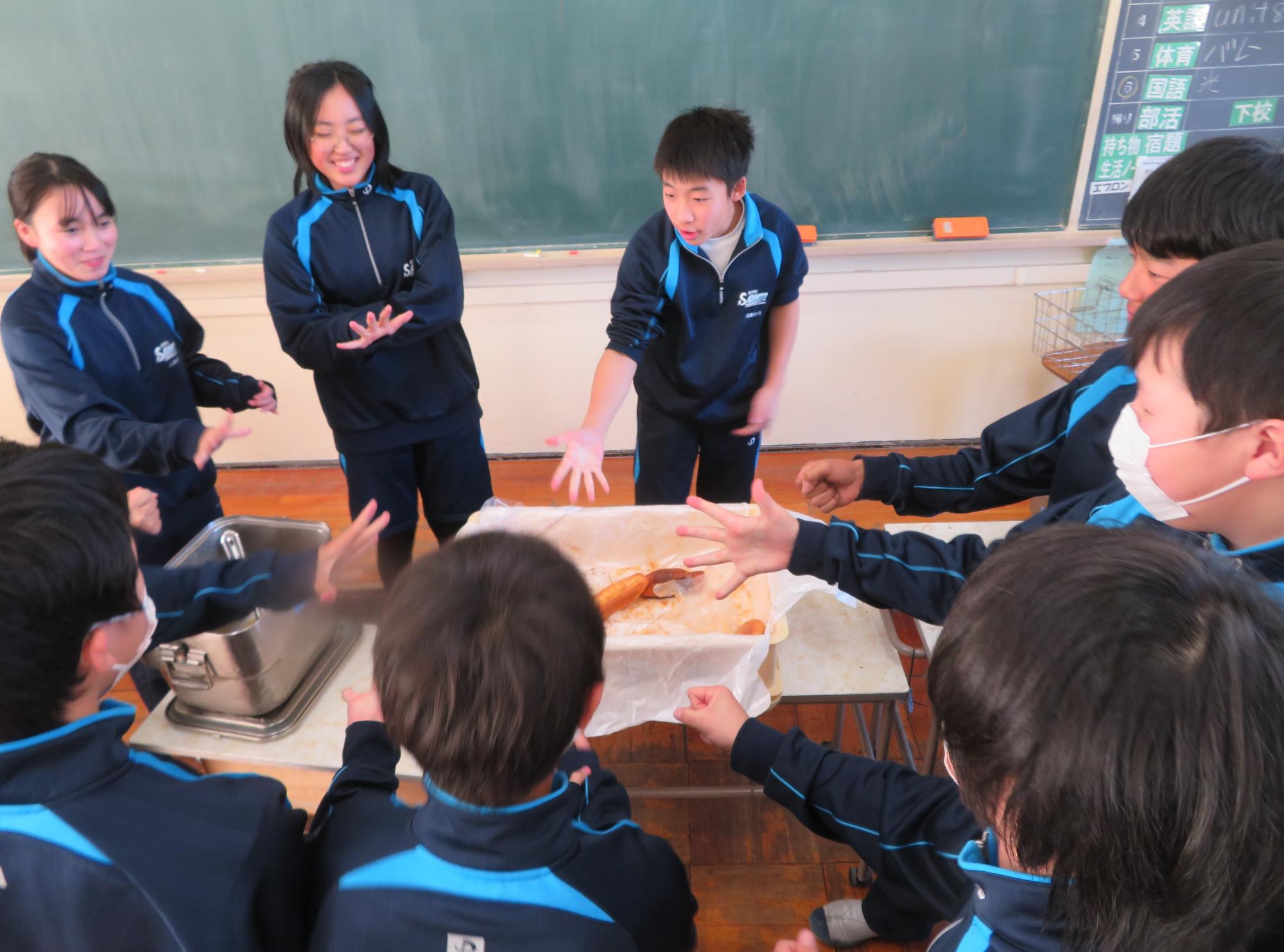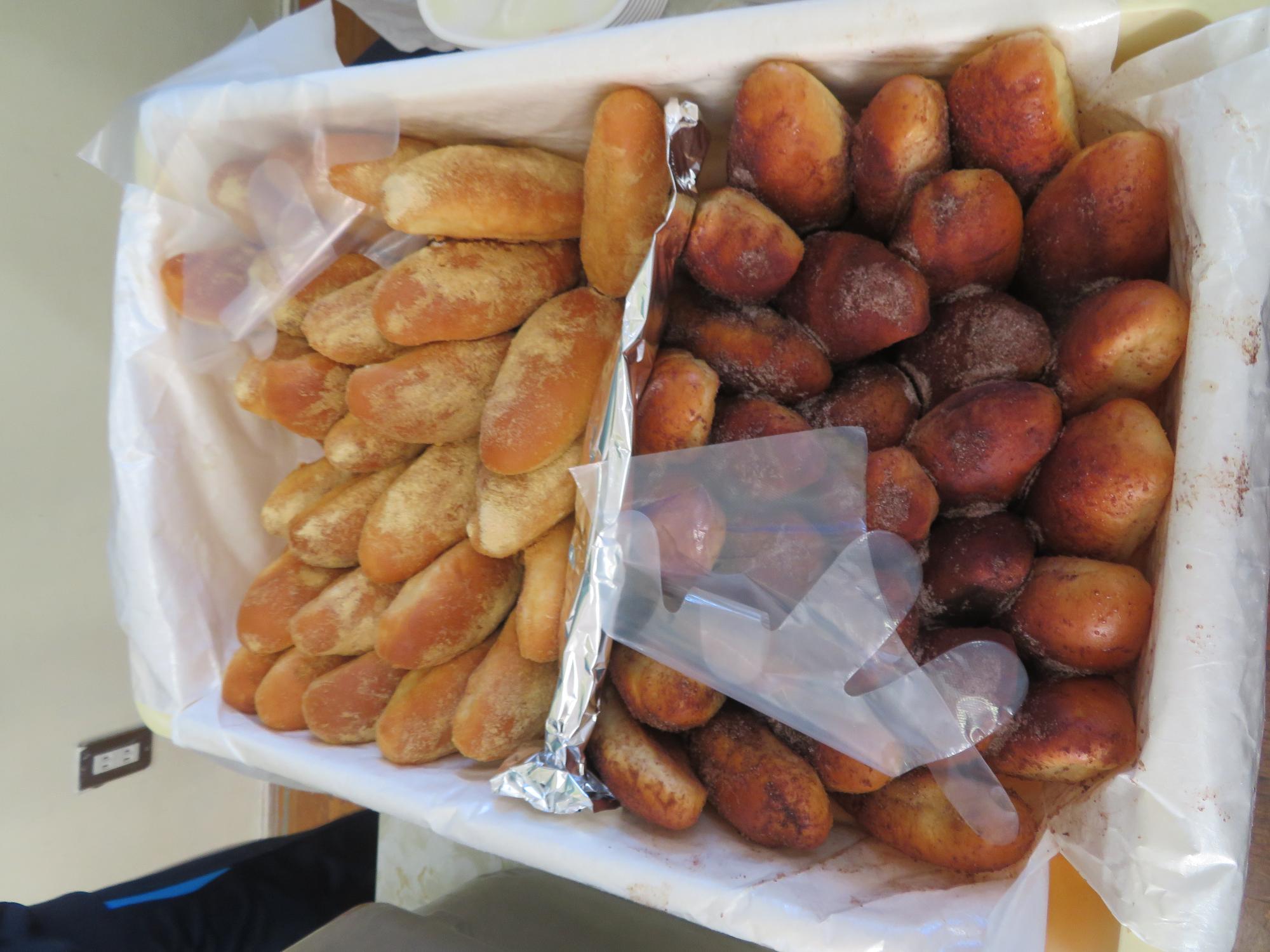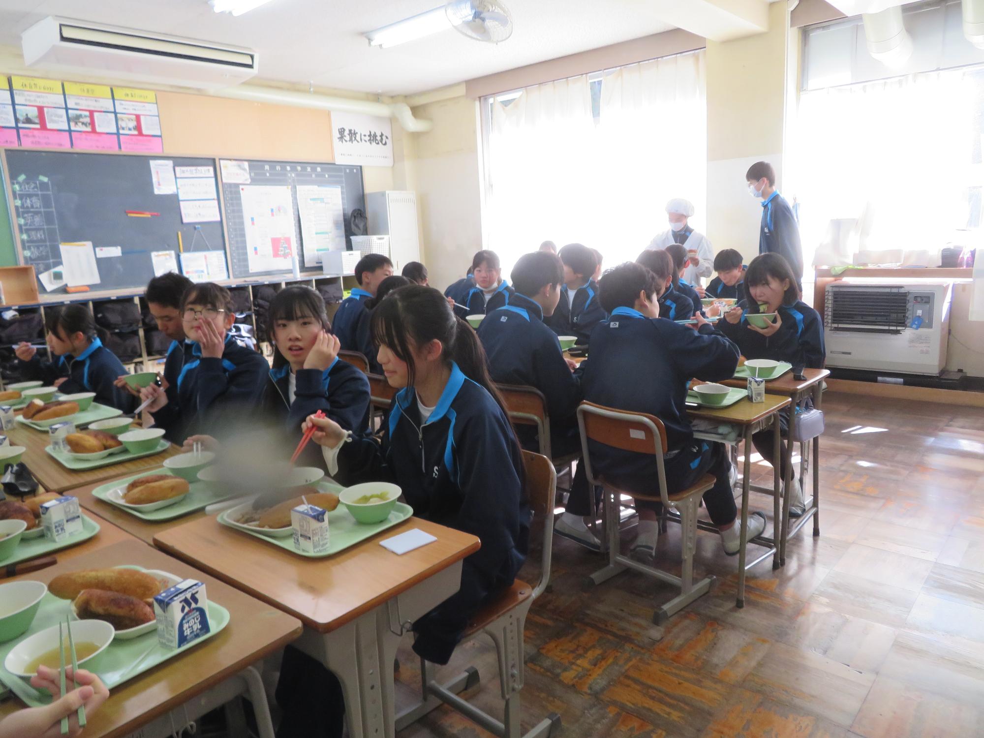今日の給食のメニューは揚げパン。砂糖をまぶしたパンと、きなこをまぶしたパンが登場しました。朝から生徒たちがウキウキしていました。よく聞くと坂本小の時は揚げパンの調理ができなく、揚げパンは給食に出ていなかったとのこと。しかも、今年度初めての揚げパンの登場だったようです。1年生の揚げパンの衝撃はすごいものがありました。「おいしそう!」「最高!どんどん給食で出してもらいたい。」「ところでどうやって食べるの?」。残った揚げパンのじゃんけん選手権はどのクラスもすさまじいものでした。いつも以上に給食時間が盛り上がった今日の坂中でした。