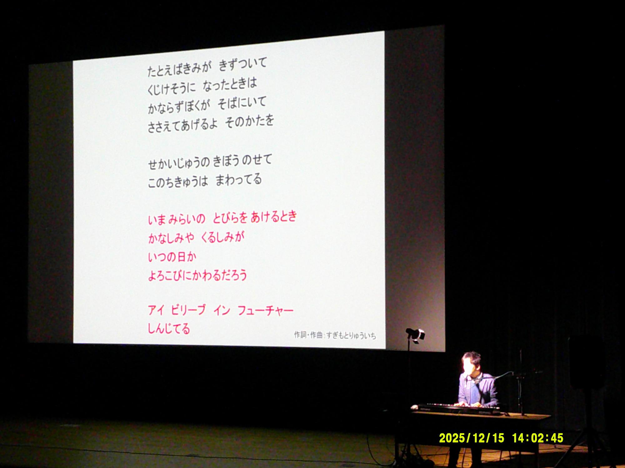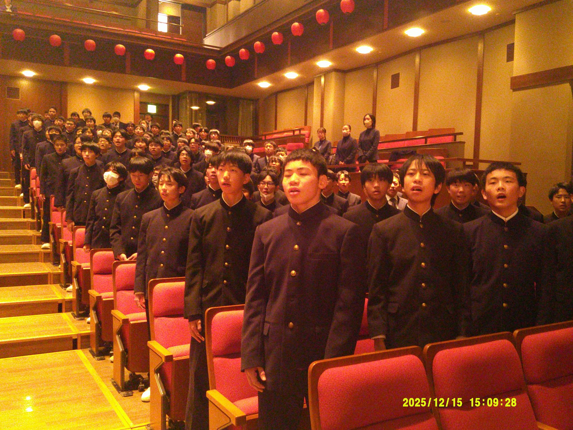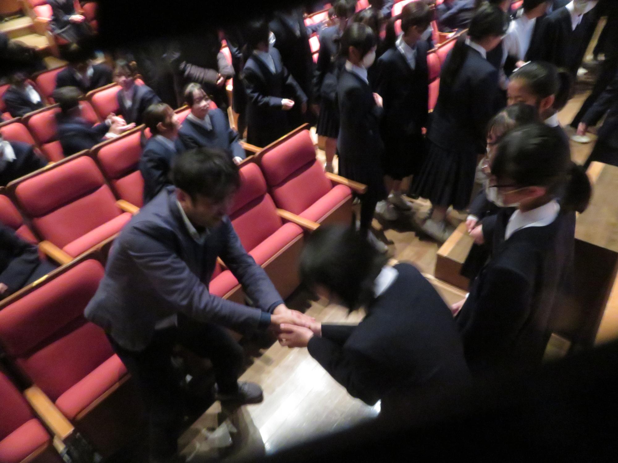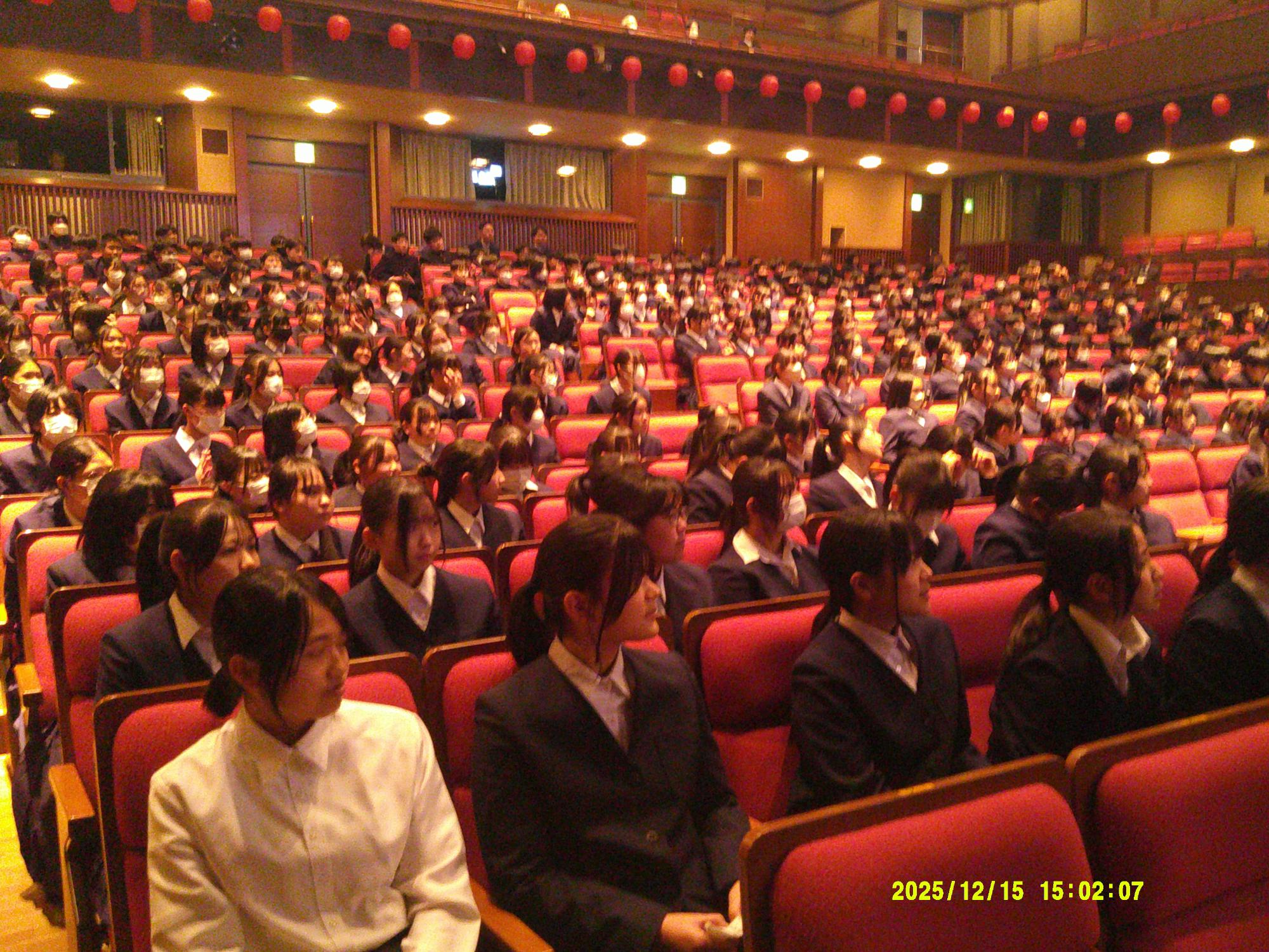 作曲家の弓削田先生によるコンサートが東美濃ふれあいセンターで行われました。弓削田先生は、透き通った歌声と心温まり語りで、私たちにたくさんのメッセージを送って下さいました。弓削田先生作曲の『越えてゆけ』『フェニックス』の歌からは、別れや寂しさはあるけれど、それを乗り越える勇気や決意の大切さを感じました。また『幸せになあれ』の歌からは、自らの名前に込められた祈りを忘れず、自他の命の大切さ、すべての命が輝く大切さを強く感じました。弓削田さんの歌声や語りに感動し、涙を流している生徒もたくさん見られました。圧巻は最後の『フェニクス』の合唱。弓削田さんも涙を流して感動してくださるなど、心に響く合唱を届けられた坂中生でした。心が温まるステキな時間を過ごすことができたコンサートでした。ちょうど人権週間として、命の尊さと人権意識の大切さについても考えることができた一日でした。