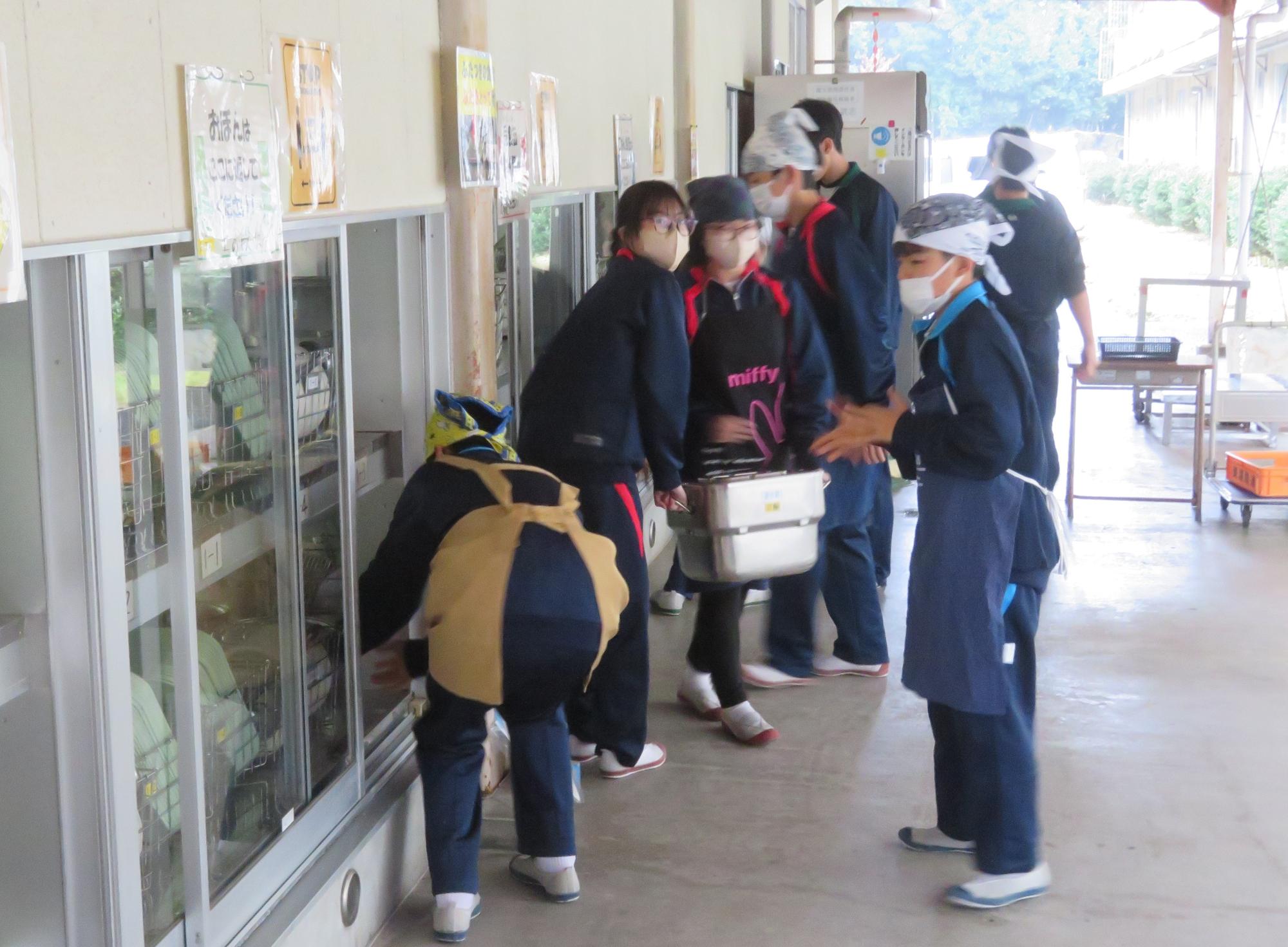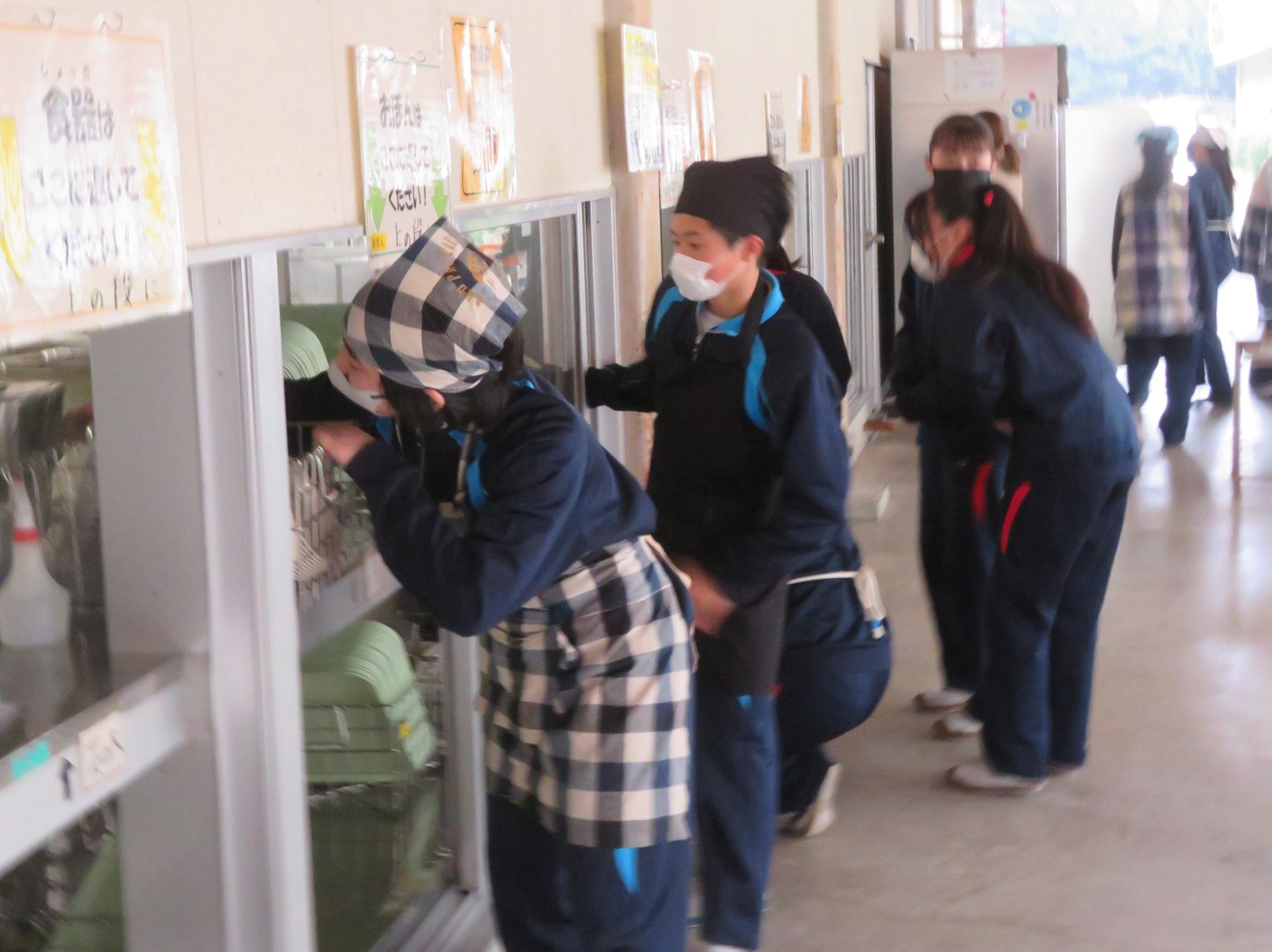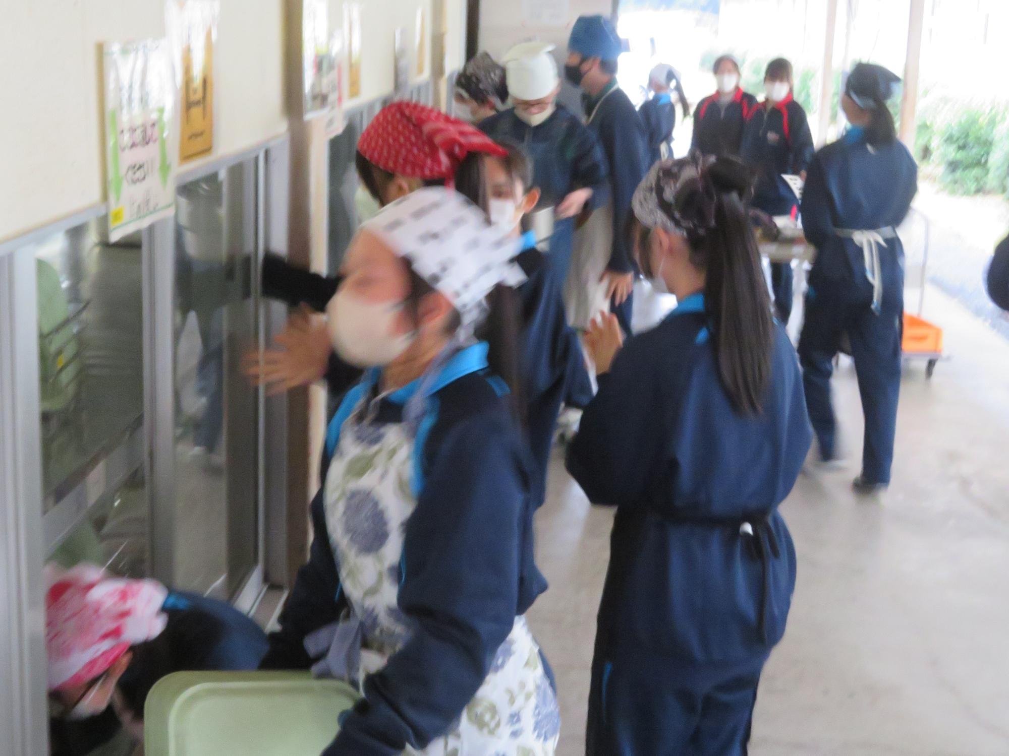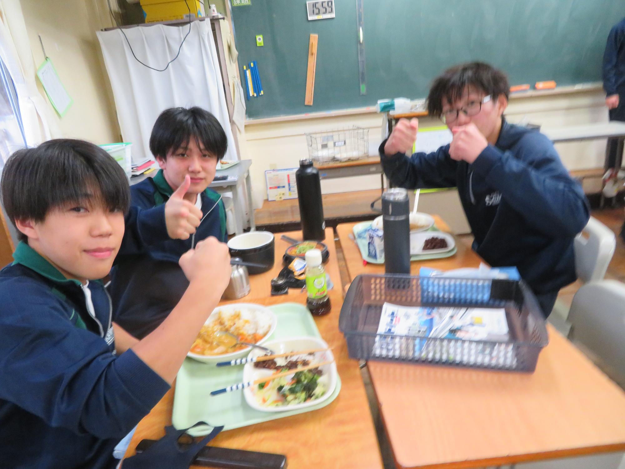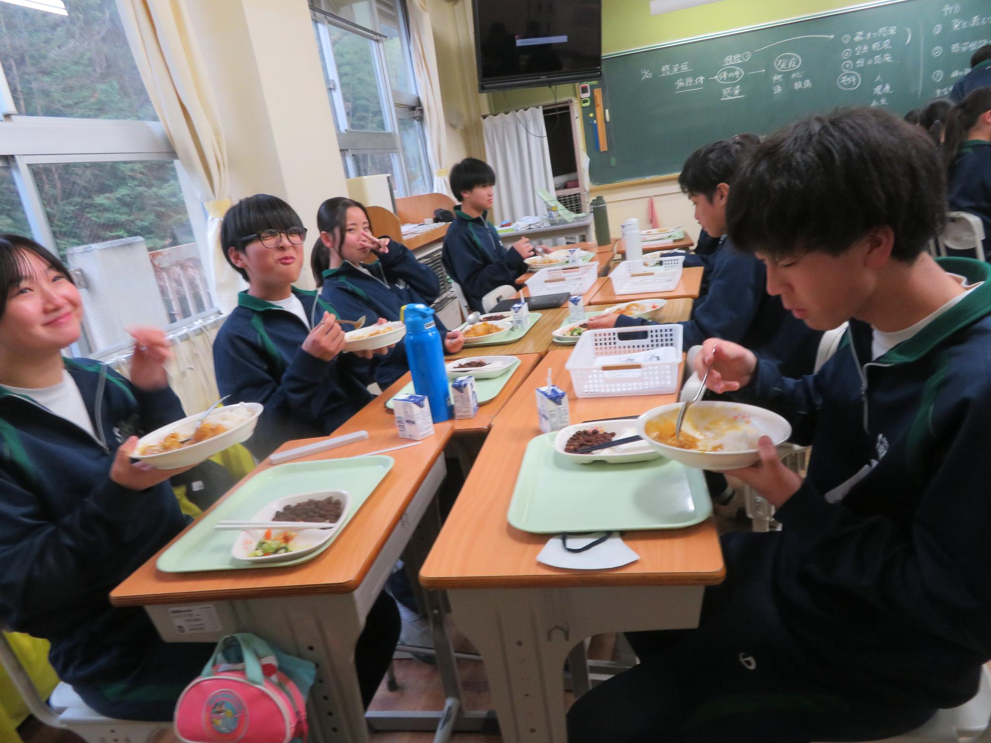 坂本中学校調理場の利用は本日で終了です。1月からは新坂本地区調理場で給食が作られます。本日、坂本中調理場のお別れということもあり、生徒たちは「今までありがとうございました!」と感謝の気持ちを込めて、給食の食器や食缶を返却する生徒がたくさん見られました。また、前期と後期の給食委員長が、調理員さんたちと給食調理場の施設にお礼にいく場面も見られました。最後のメニューはカレーライス。どのクラスも残量ゼロとなるよう意識しながら、感謝の気持ちを込めてもりもり食べていました。