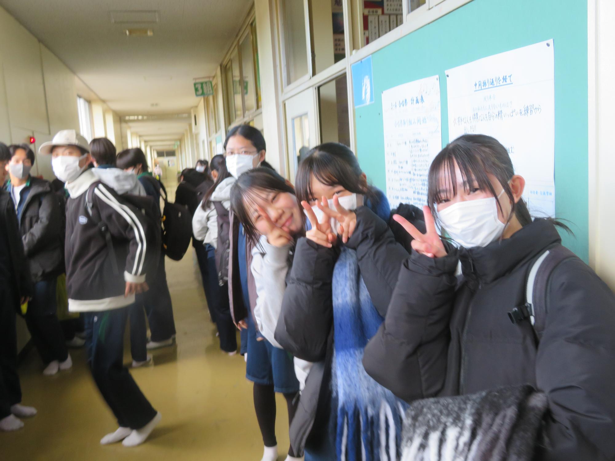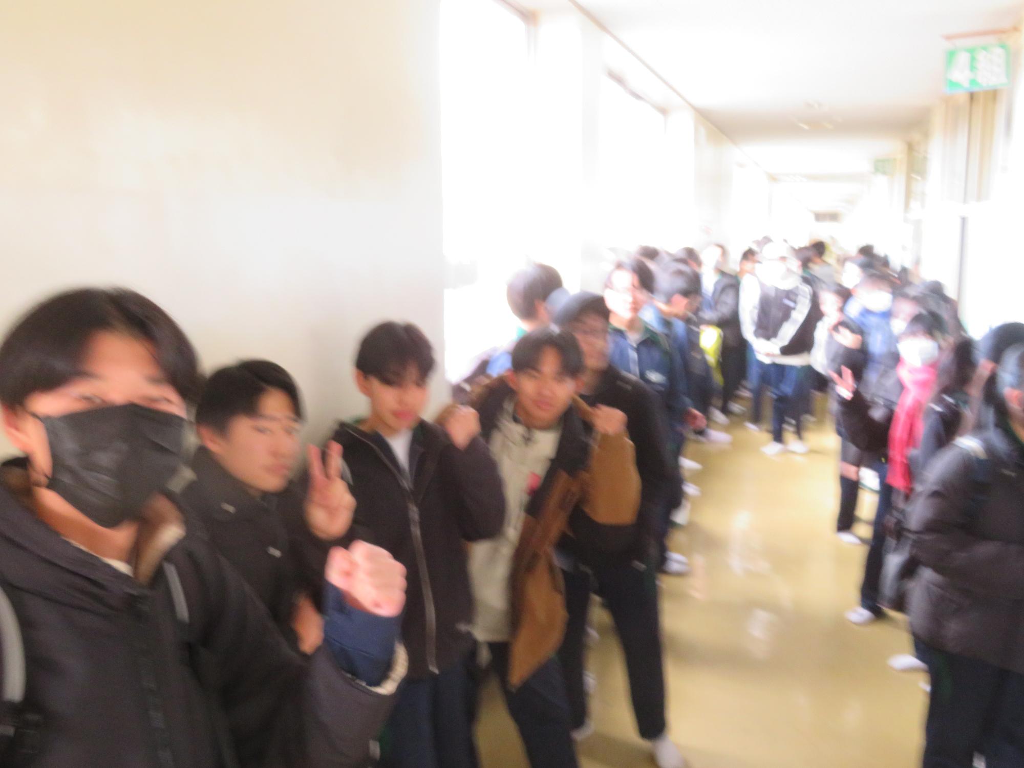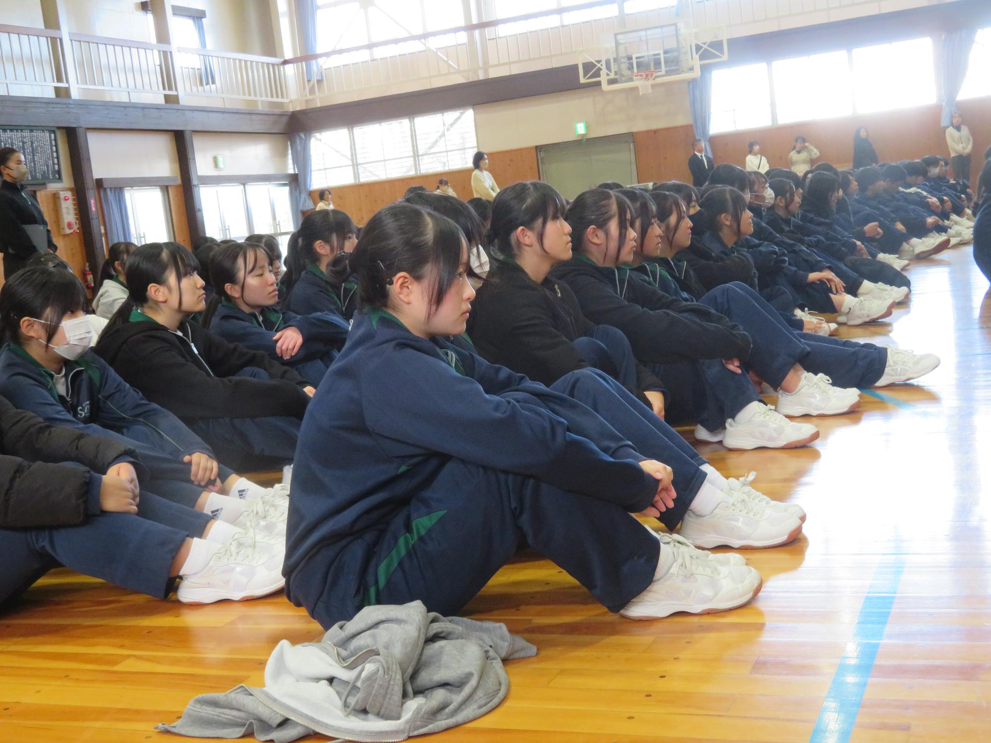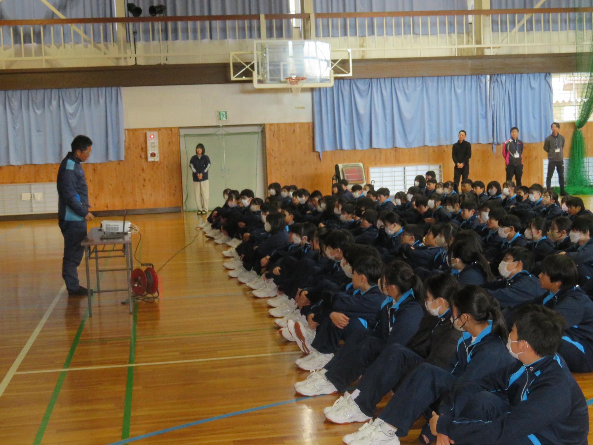 冬休み前集会を整然とした雰囲気の中で行いました。1年生代表の生徒は「仲間とのつながりや関わりが大切であると学んだことを今後も大切にしたい!」と合唱祭で得たことをもとに語りました。3年生代表の生徒は「自分と向き合い、自分の弱さに気づき、それを打開した自分かいる。冬休みの生活にもつなげたい!」と力強く語りました。なお、3年生は代表生徒の言葉につながり、クラスで円陣を組んで、冬休みの互いの頑張りにエールを送っていた姿もとても印象的でした。自分の命と心を大切に、自分一人でも正しい判断力をもって生活できる冬休みになることを職員一同、願っています。どうか、よいお年をお迎えください。