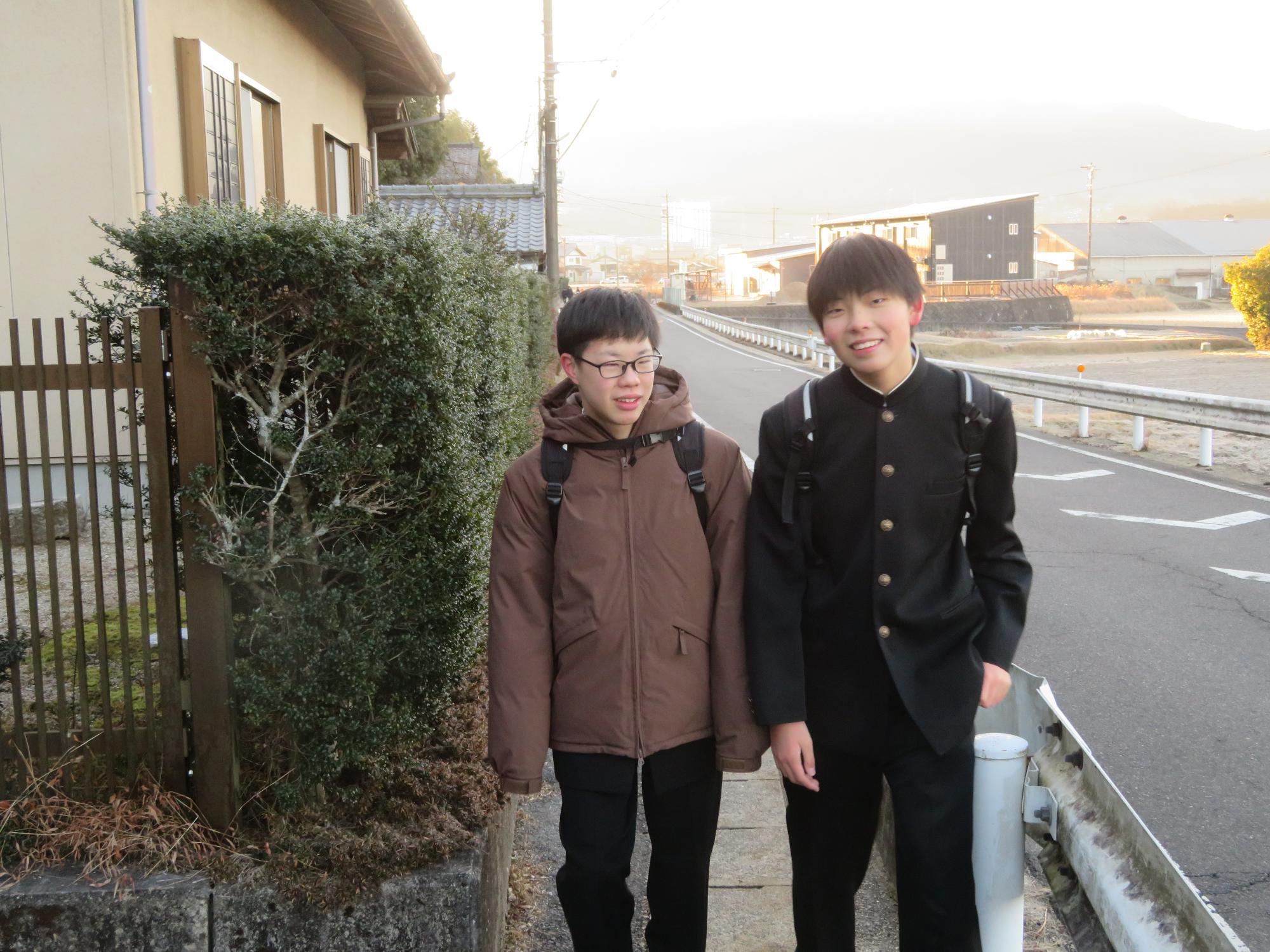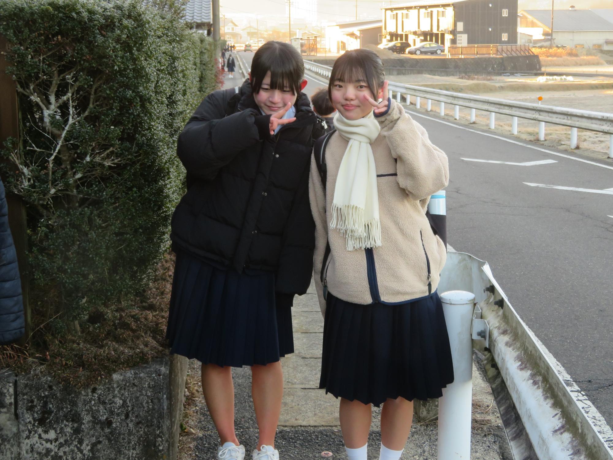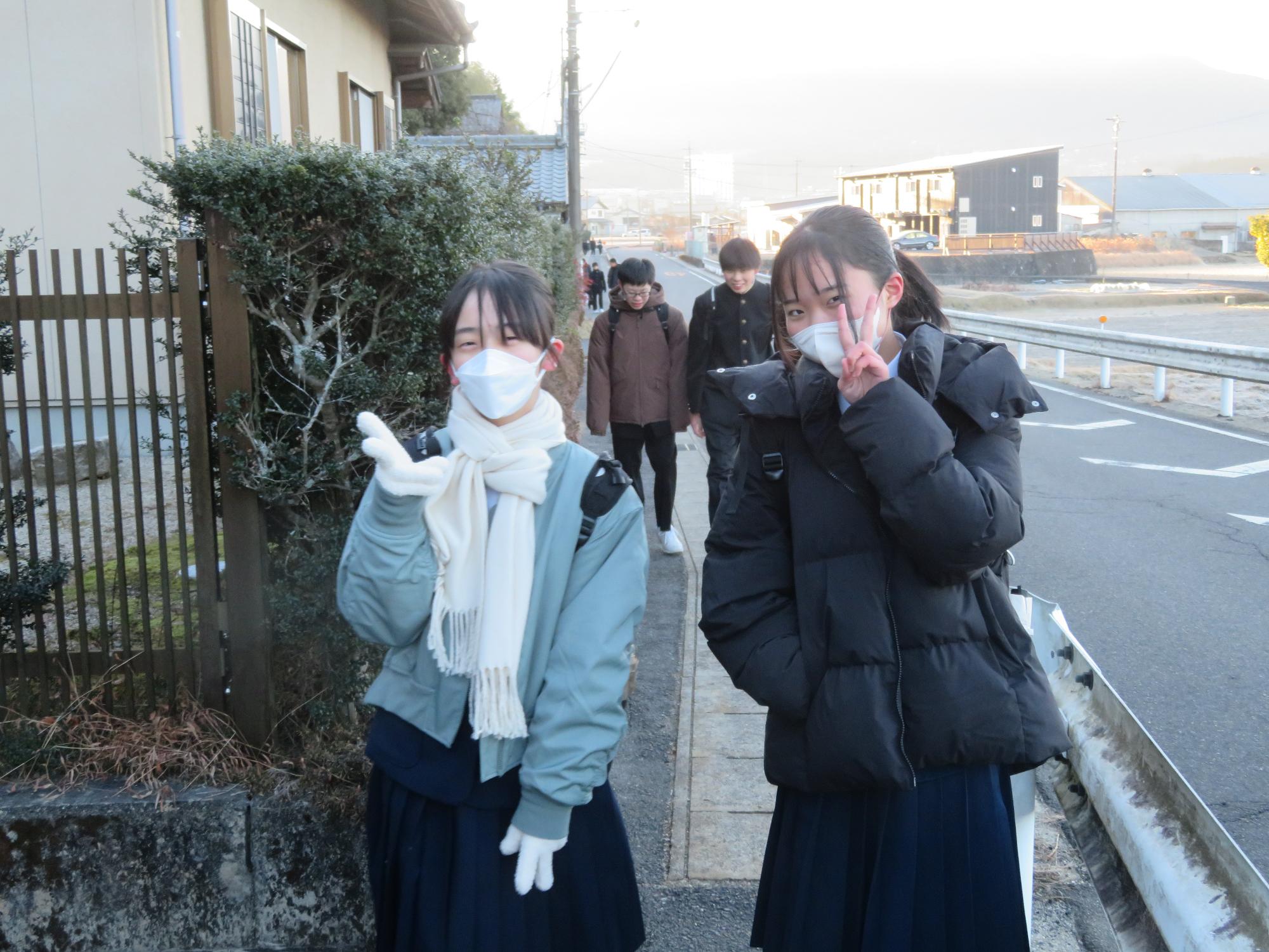 -4℃の寒さの中の登校 更新日:2026年01月09日 今日7:00の外気温は-4℃。凍り付くような寒さの中、今日も坂中生の元気に登校する姿が見られました。特に今日は全校実力テストの日のため制服登校。「ジャージより寒い!」と話す生徒も多かったですが、寒さの中、笑顔で登校する姿にさわやかさも感じられました。実力テストが終わった後も、そのさわやかさが残っていてほしいと感じながら登校を見守る朝の風景でした。