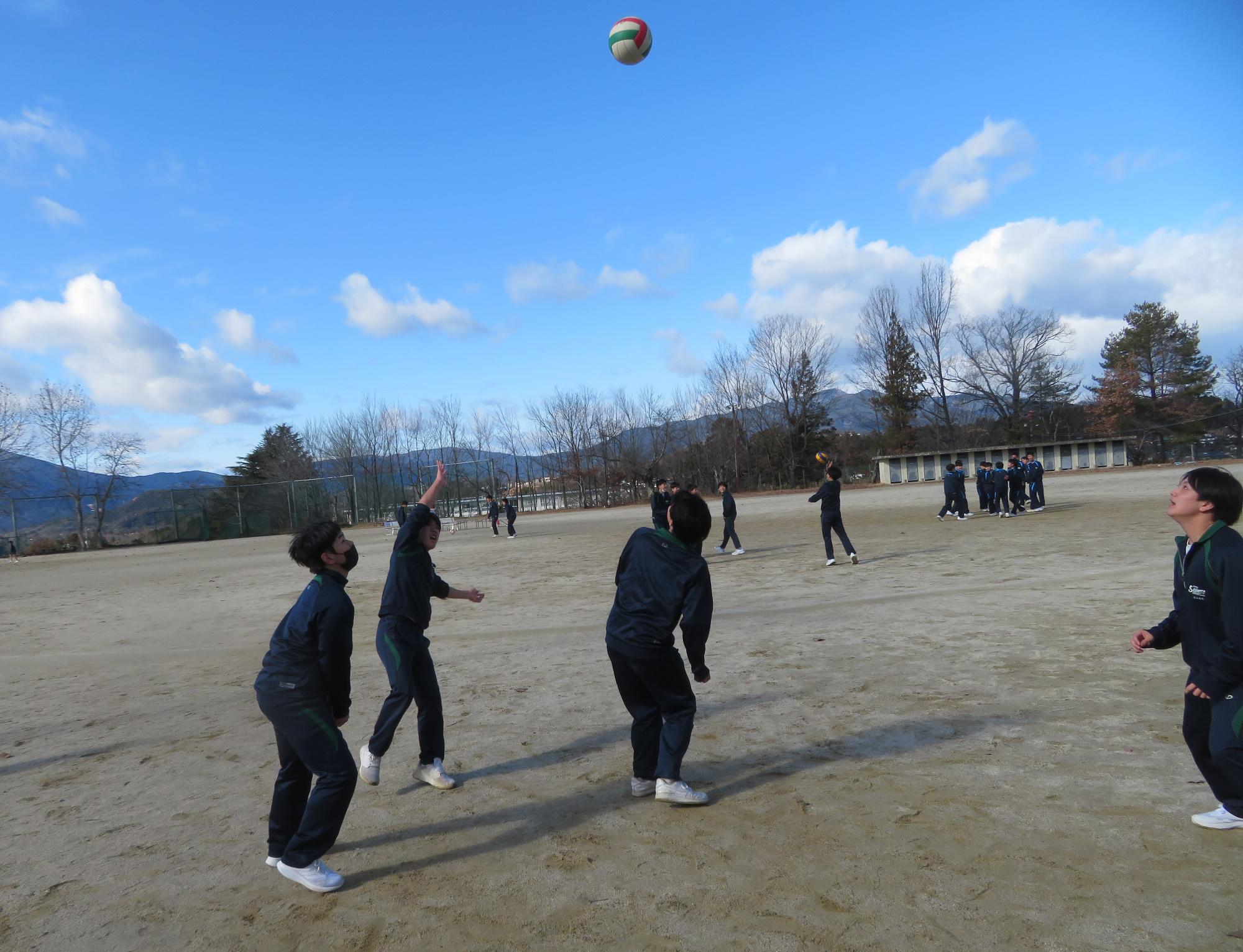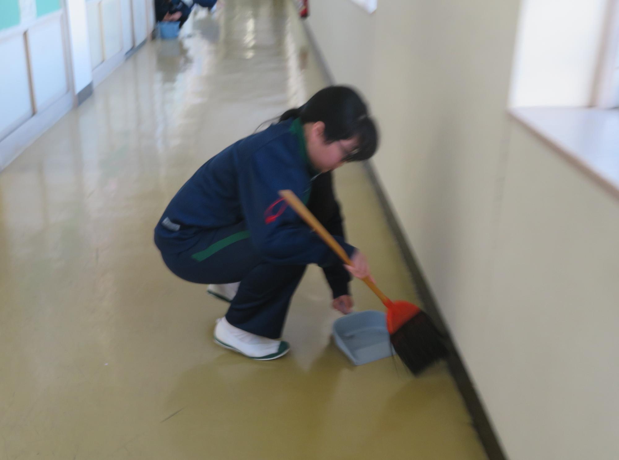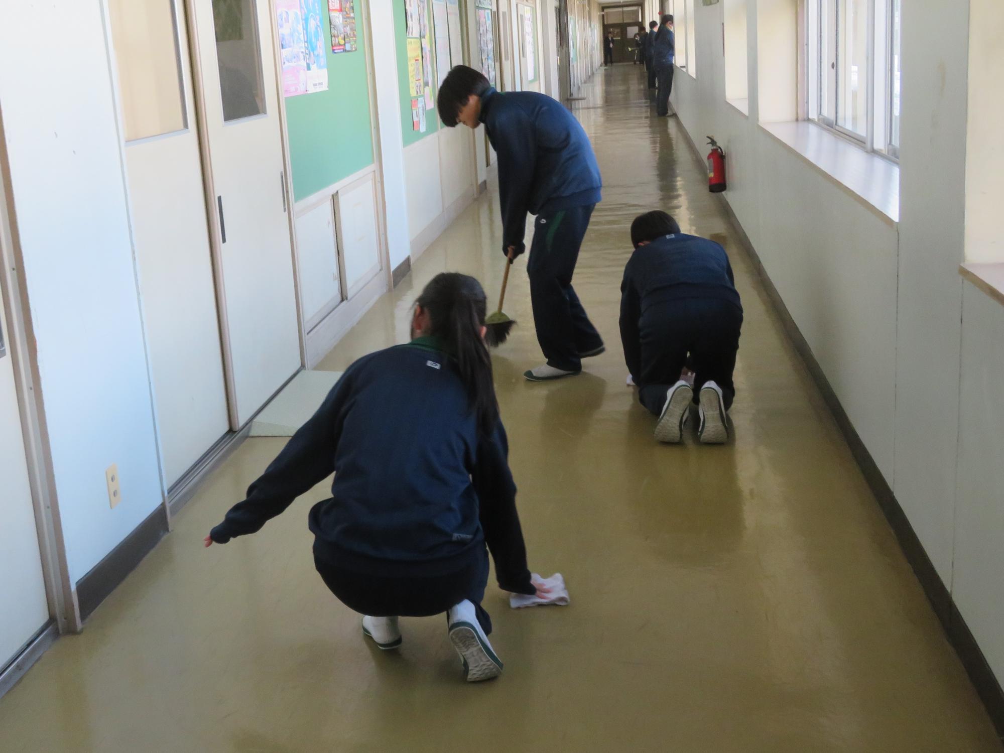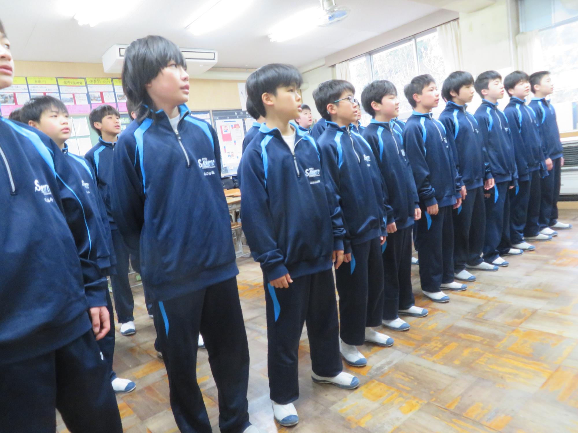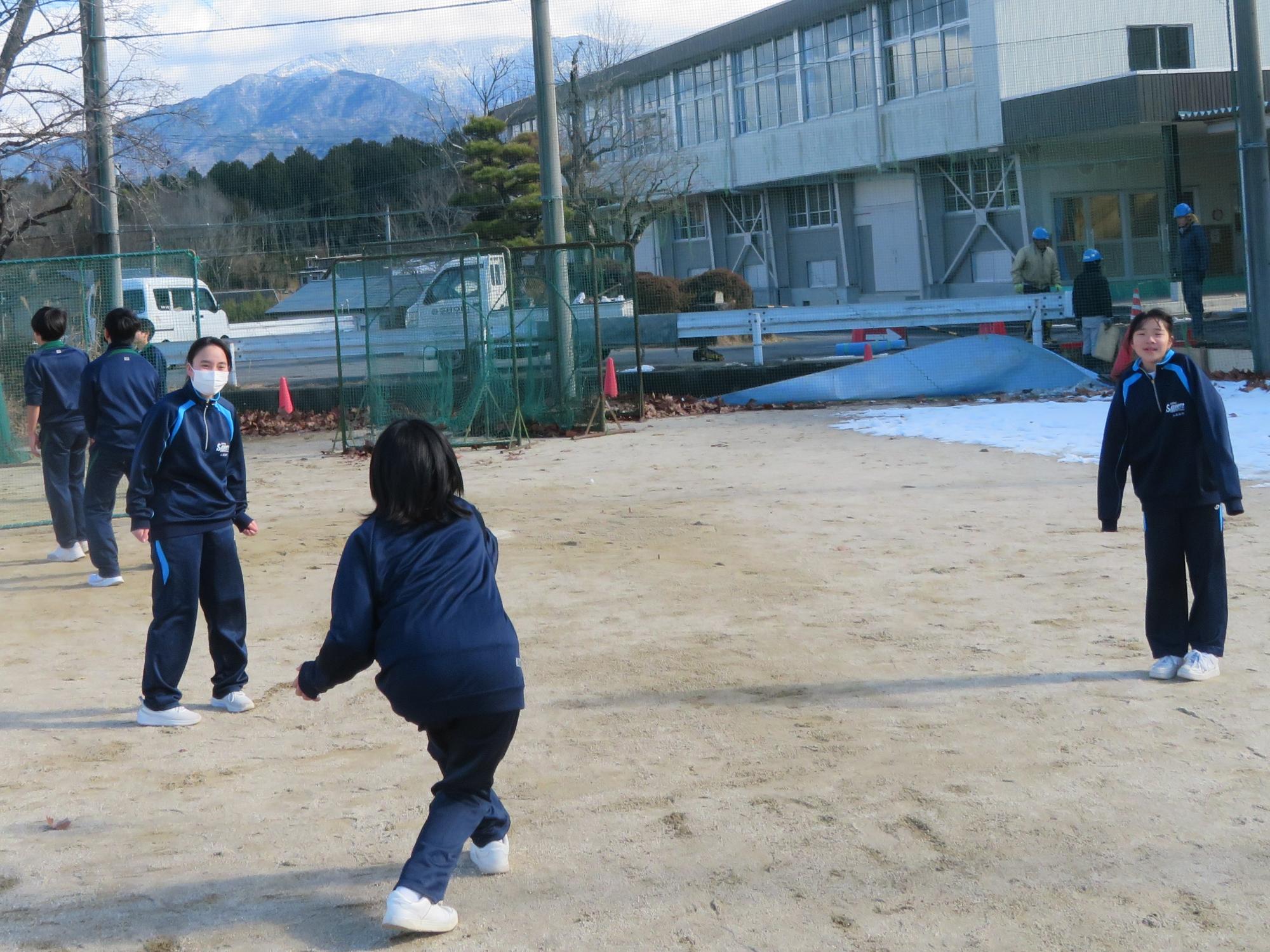 坂中生はいつももりもり給食を食べ、午後1時過ぎはエネルギーが全開状態です。冷たい風が吹く中でも外で仲間と元気に遊んだり、掃除を仲間と黙々と行ったりとエネルギッシュな姿が随所に見られます。ちょうどこの日の昼休みは、2年生は、学年合唱練習を仲間と呼びかけ合ってエネルギッシュに行っていました。3年生の玄関掃除のグループは、カチカチに凍った校舎の前の道に融雪剤をエネルギッシュにまいてくれました。午後1時過ぎはいつもエネルギッシュな坂中生の姿がたくさん見られる時間です。