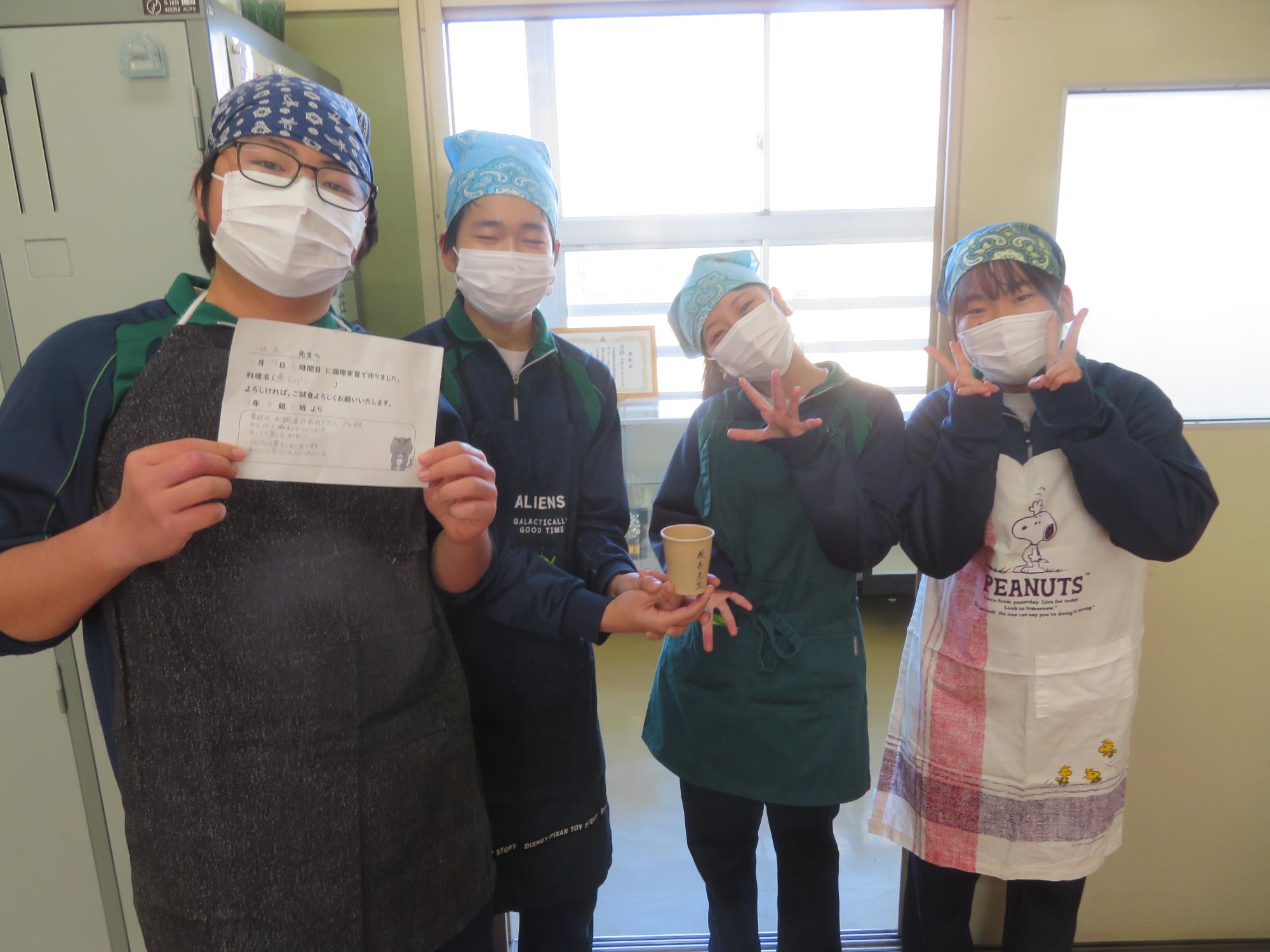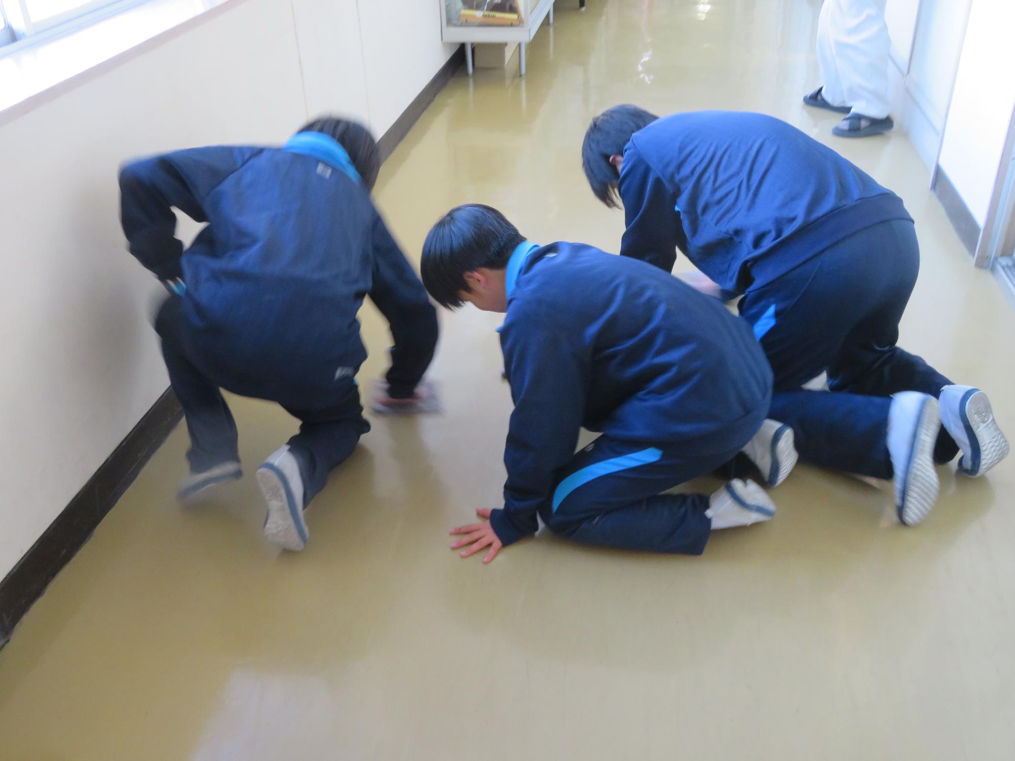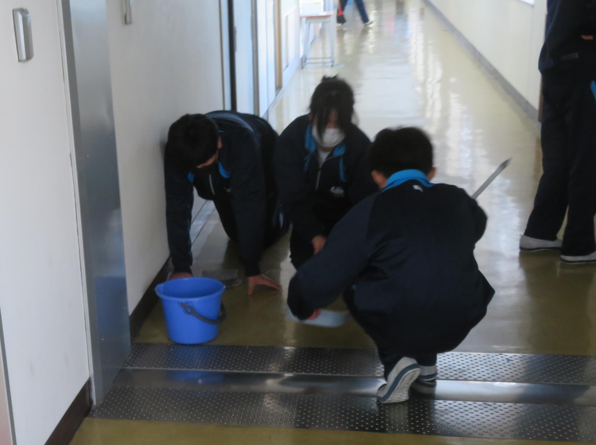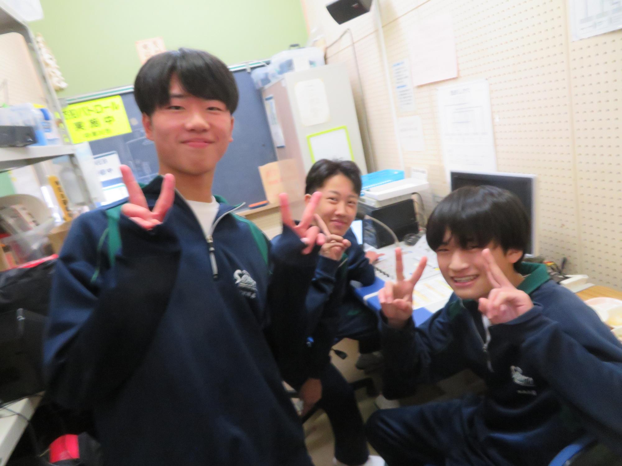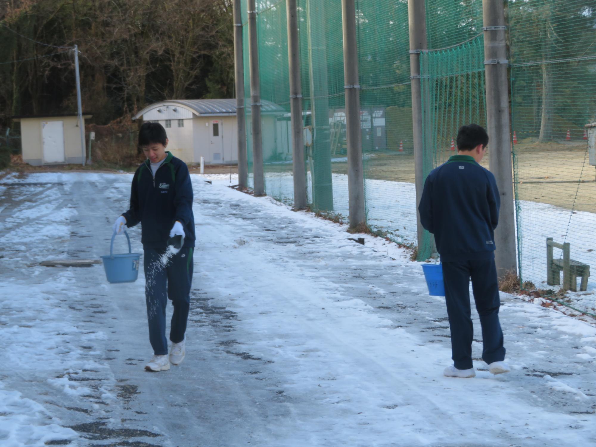 坂中生はいつももりもり給食を食べ、午後1時過ぎはエネルギーが全開状態です。冷たい風が吹く中でも外で仲間と元気に遊んだり、掃除を仲間と黙々と行ったりとエネルギッシュな姿が随所に見られます。ちょうどこの日の昼休みは、2年生は、学年合唱練習を仲間と呼びかけ合ってエネルギッシュに行っていました。3年生の玄関掃除のグループは、カチカチに凍った校舎の前の道に融雪剤をエネルギッシュにまいてくれました。午後1時過ぎはいつもエネルギッシュな坂中生の姿がたくさん見られる時間です。