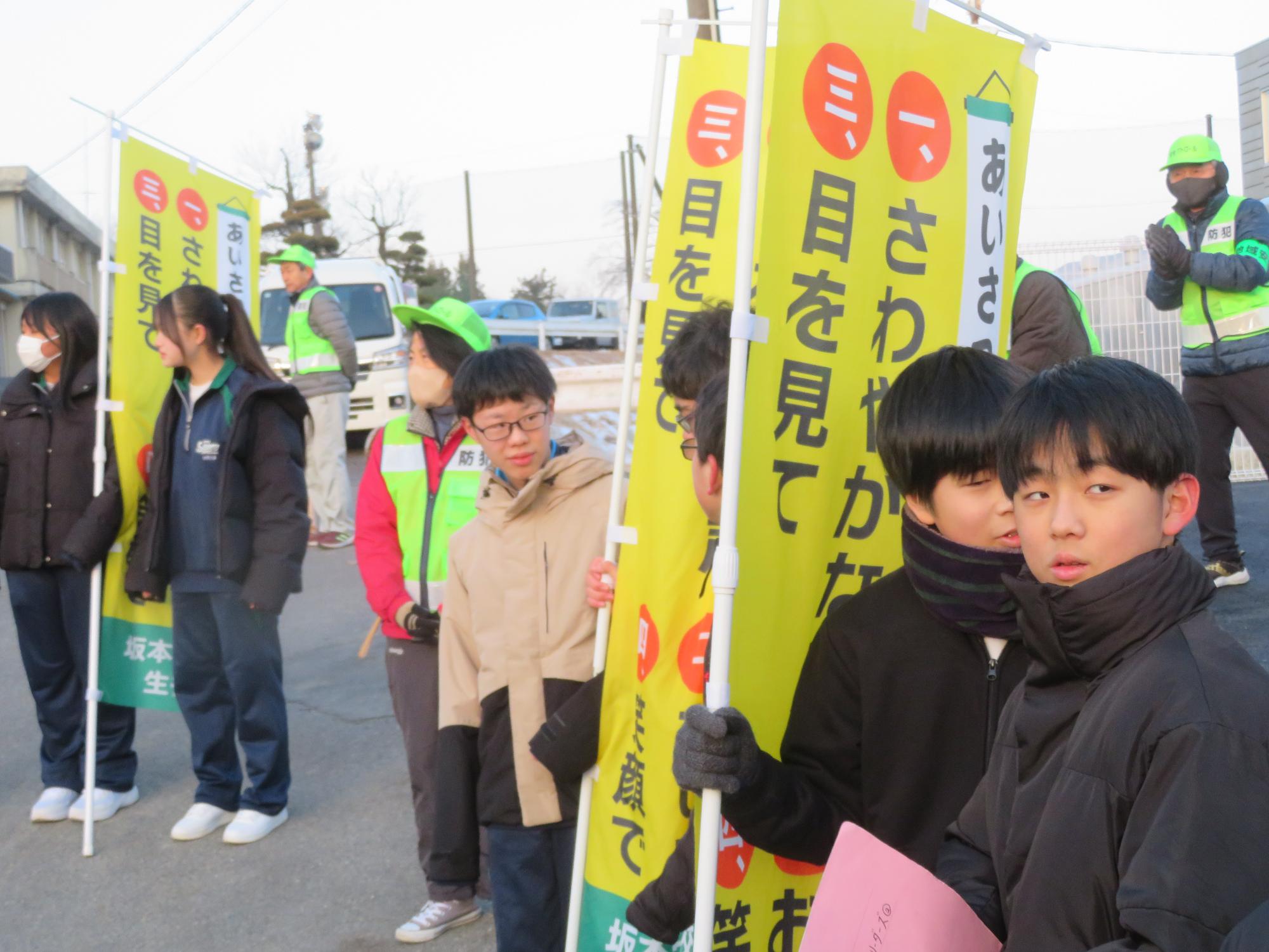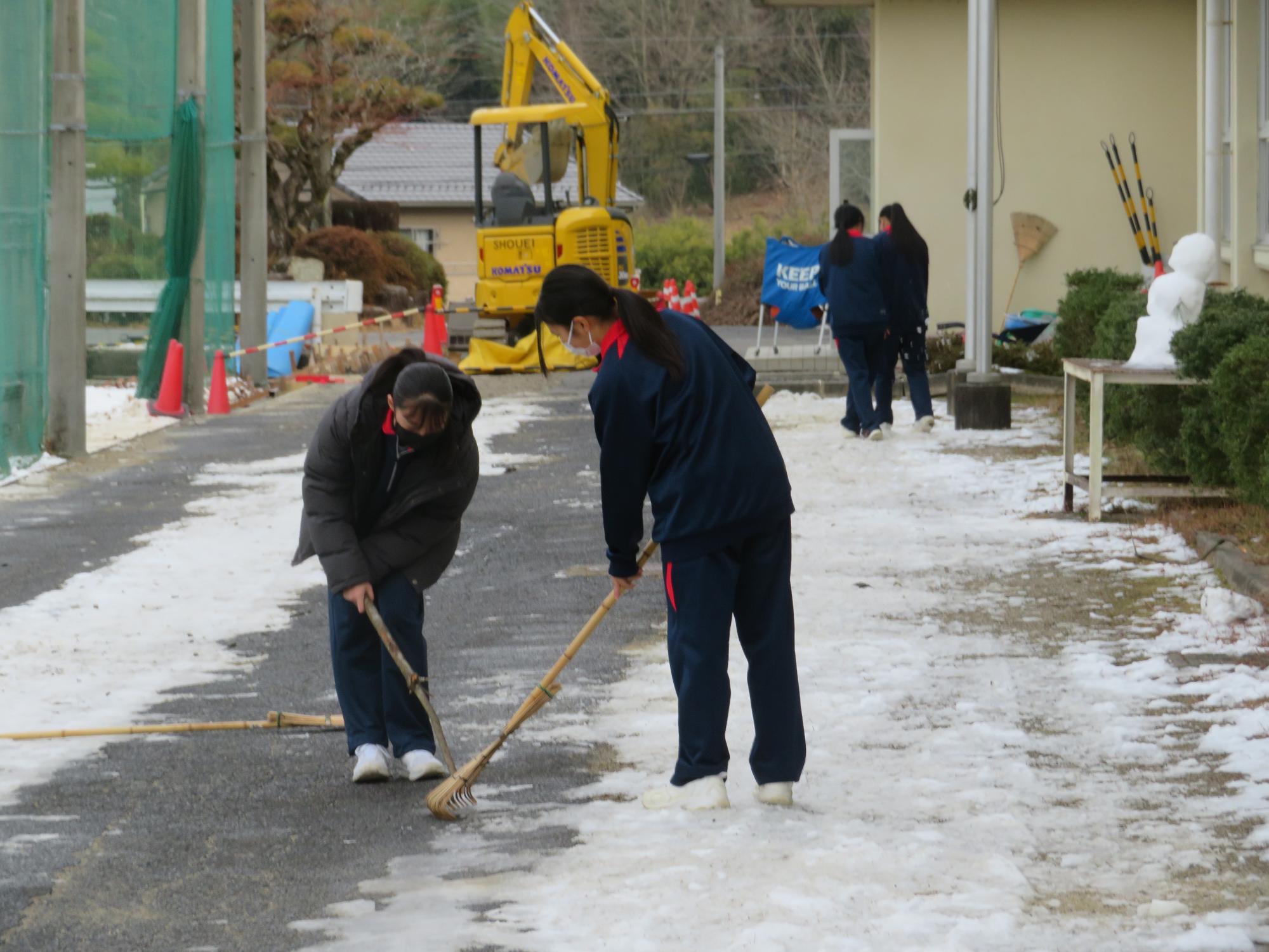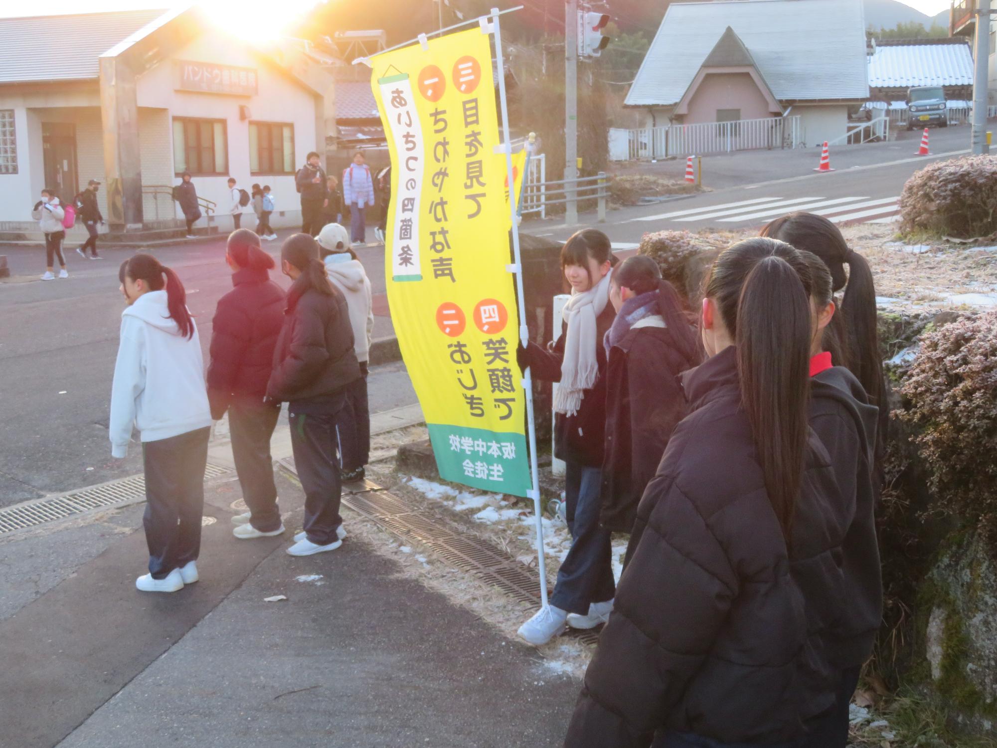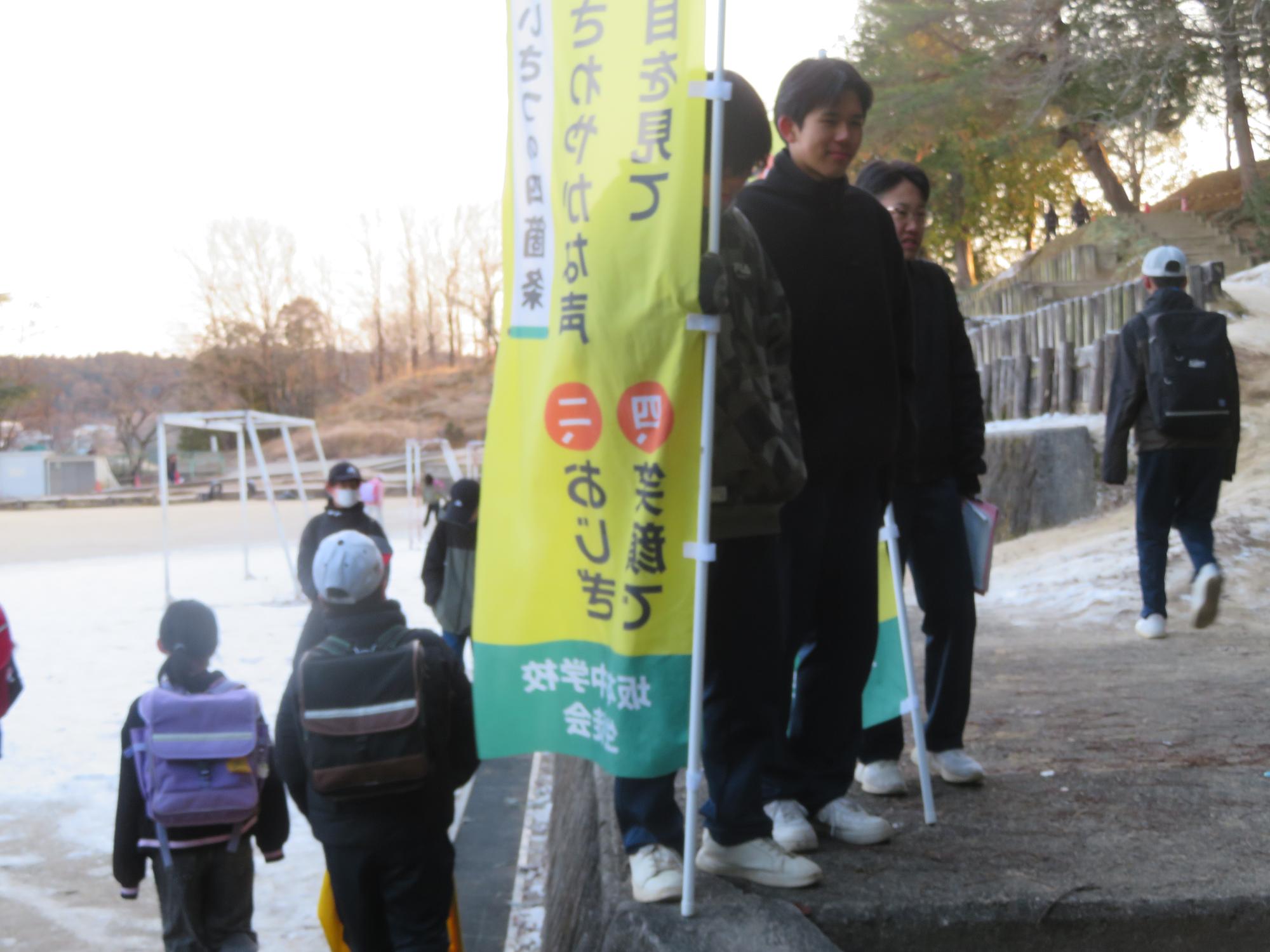 坂中生のボランティアの姿が随所に見られます。まずは朝、外気温3℃の中、7:30に決められた場所に立ち、あいさつボランティアを行う生徒が70名ほどいました。「今日は、目を見て笑顔であいさつすることにこだわりましょう。」という生徒会執行部の呼びかけにつながり、地域の方とともにボランティアを行う姿が見られました。そして昼休み。凍って滑る校舎前の道路を、スコップやほうきできれいにしてくれる2年生ボランティア30名の姿も見られました。するとよいことを判断し、ボランティアの心を姿で示していける坂中生が増えていることにうれしさを感じます。