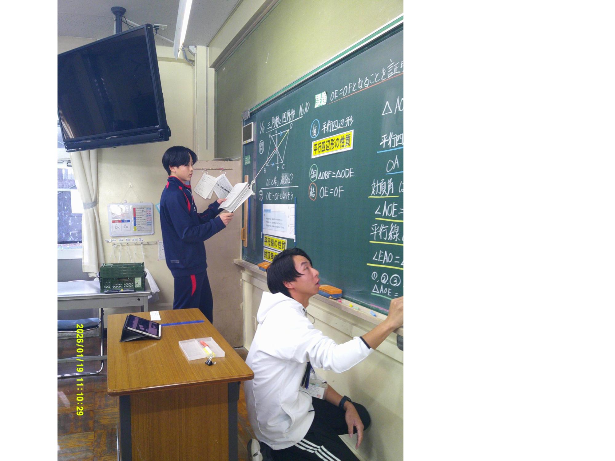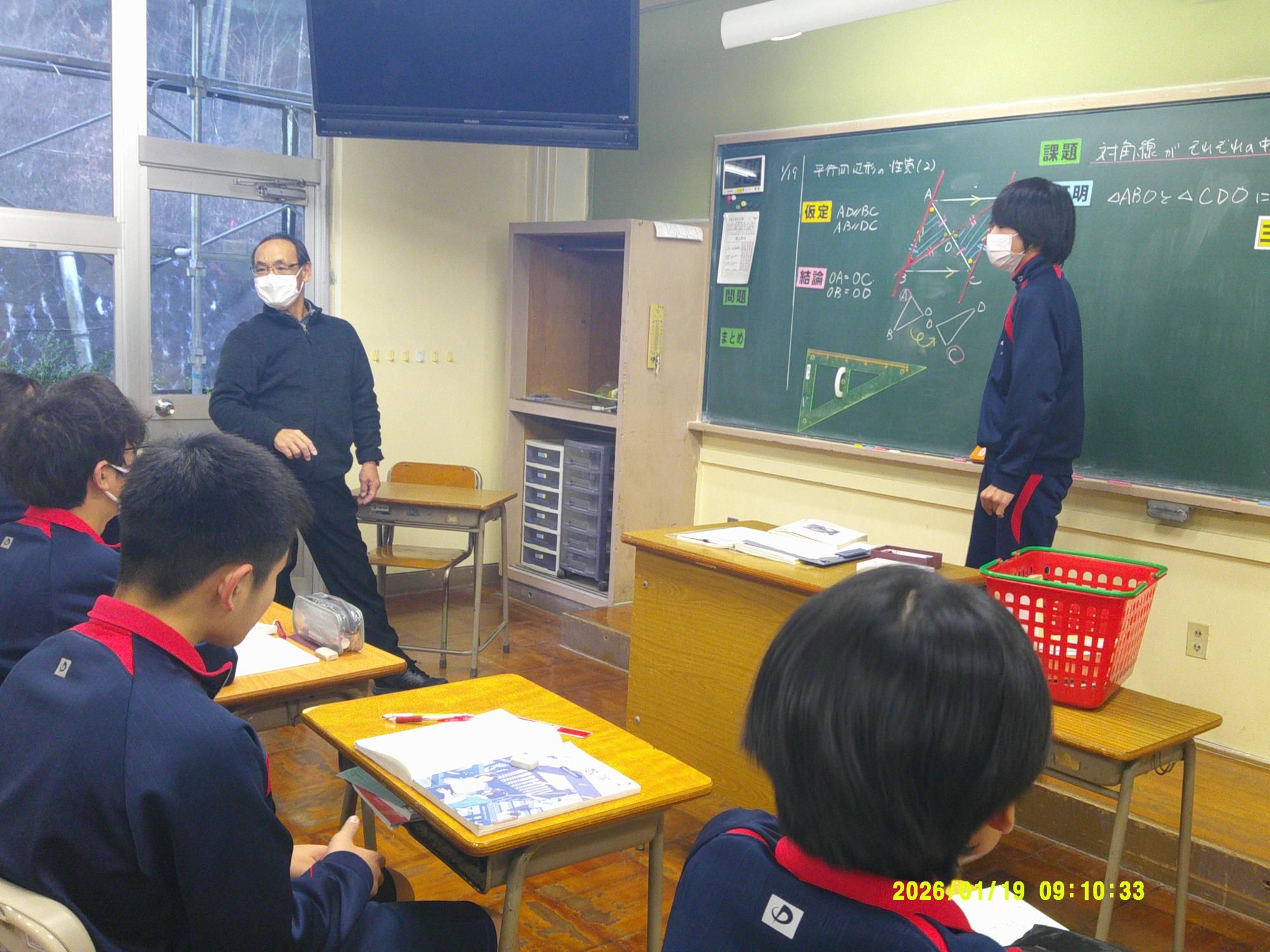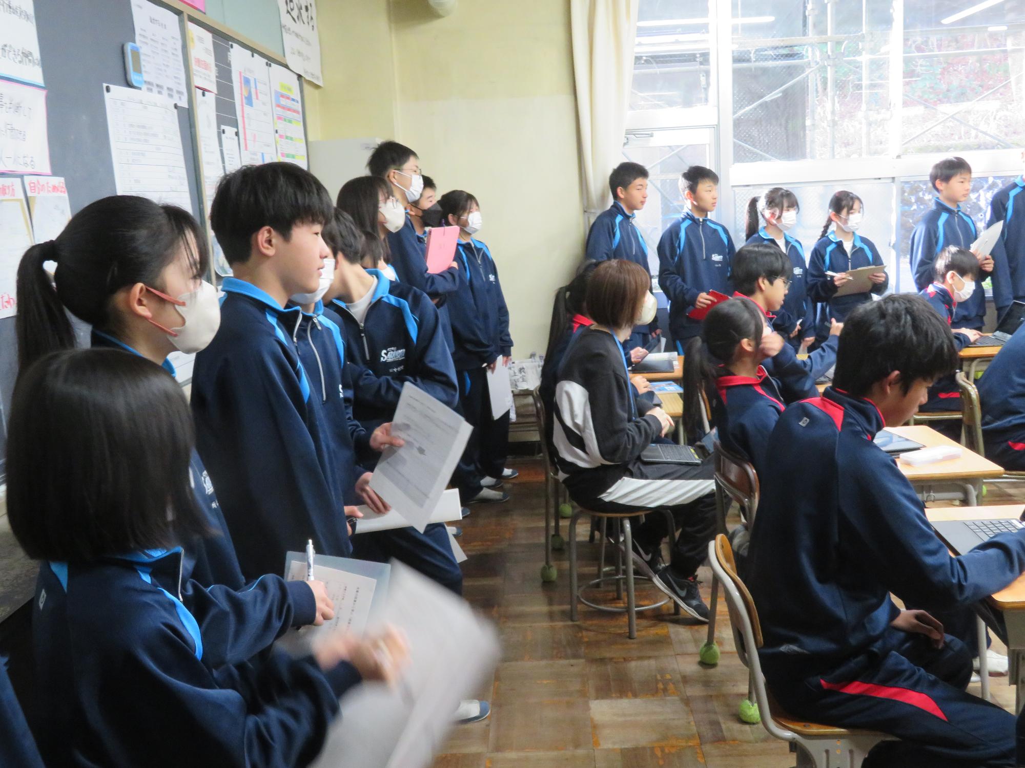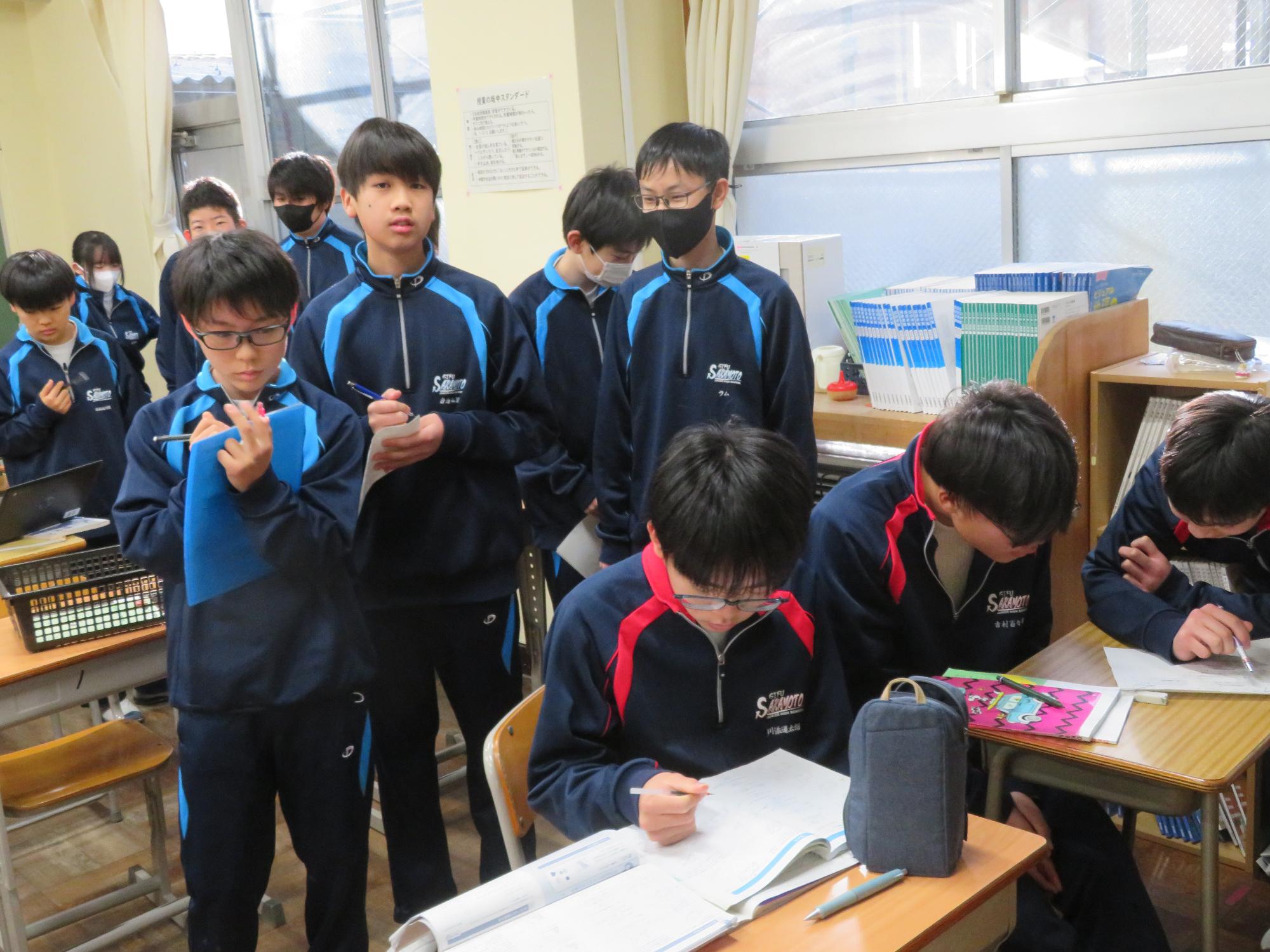 学習委員会が授業交流会を企画しました。ねらいは、1つ上の先輩の授業を参観し、よさを学びながら次年度の授業の向上に生かすと設定されています。今日はその一日目。2年生が1年生に授業を公開しました。ねらいを意識し、参観する生徒は真剣に授業を見て、先輩のよさをビッシリと記録していました。先輩たちも参観されることを意識しながら、一生懸命に取り組むことのかっこよさを示そうと授業に取り組んでいました。生徒同士が授業を高め合う活動を企画した学習委員会の意気込みは大変うれしいものです。