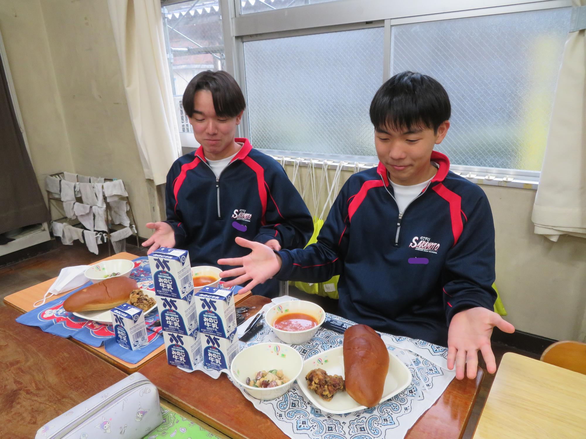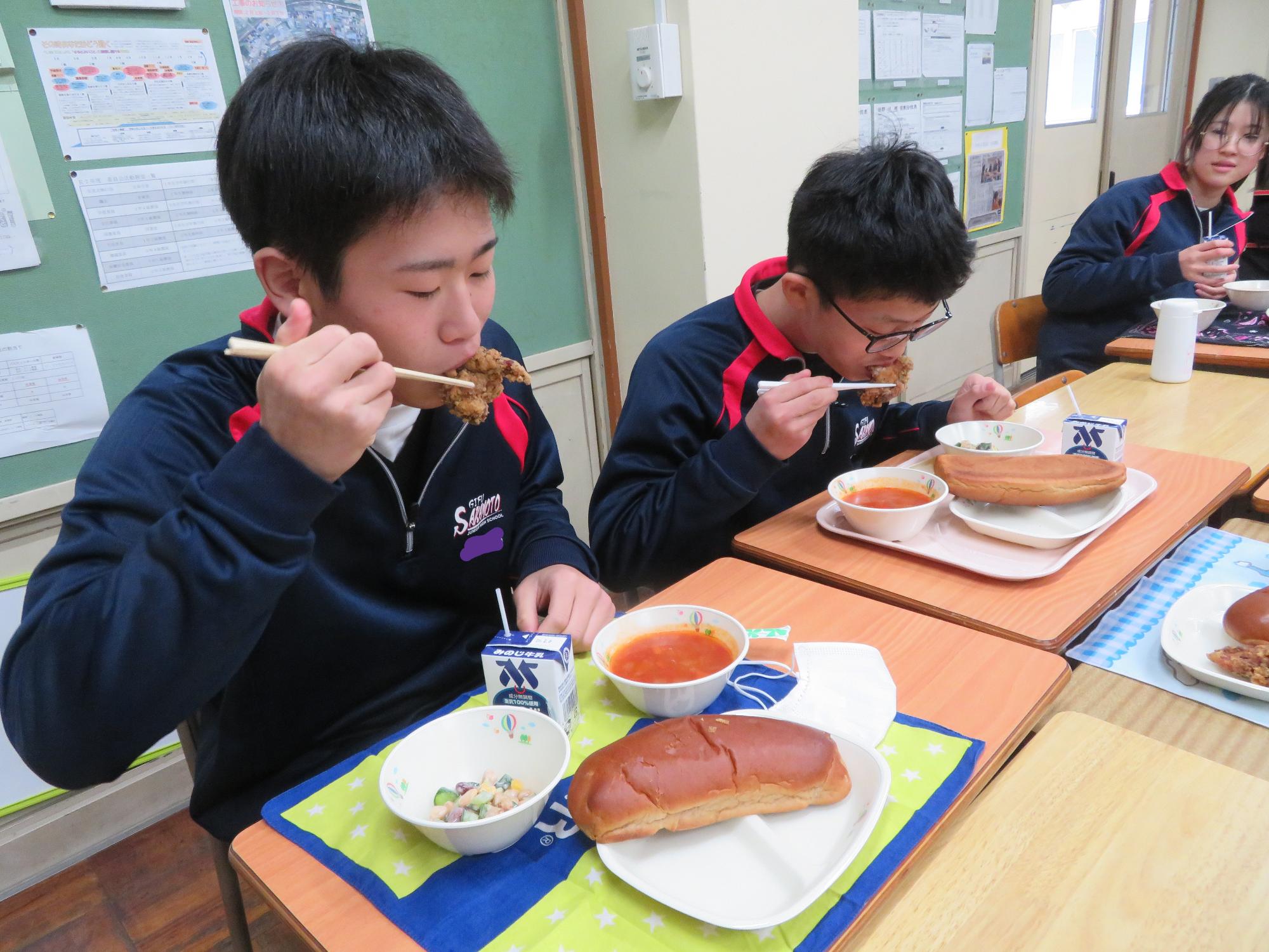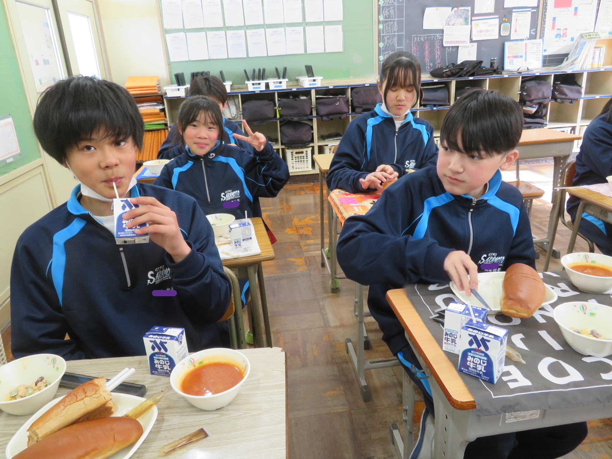 坂本中でもインフルエンザの流行が見られます。1、2年生で合計70人ほどの欠席者が出ました。校医さんと相談し、明日と明後日、感染防止のための1、2年生を学年閉鎖としました。下校前、1、2年生は今日の給食のブラジル料理を食べて栄養をつけました。欠席者がいるので、いつも以上に給食を食べ栄養UPです。2日間、ゆっくり休養し体調を整えていくことを願っています。