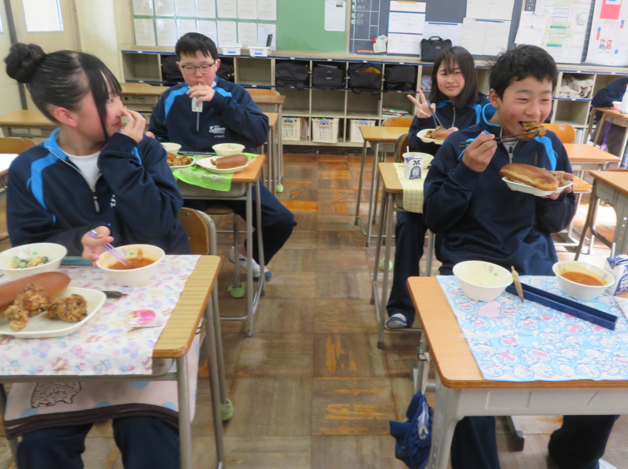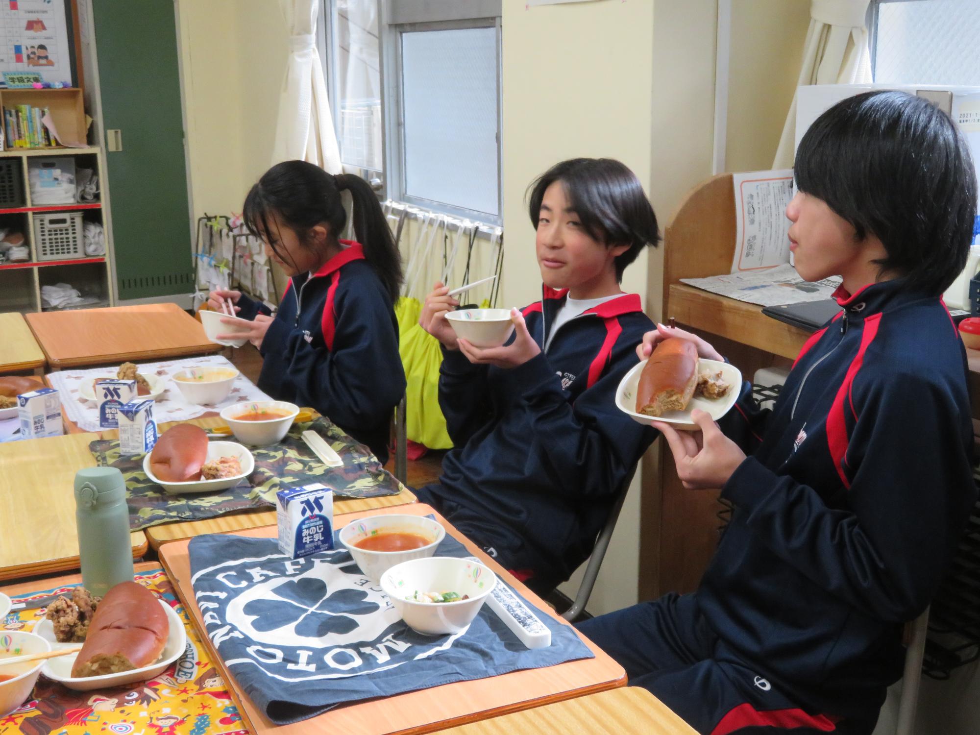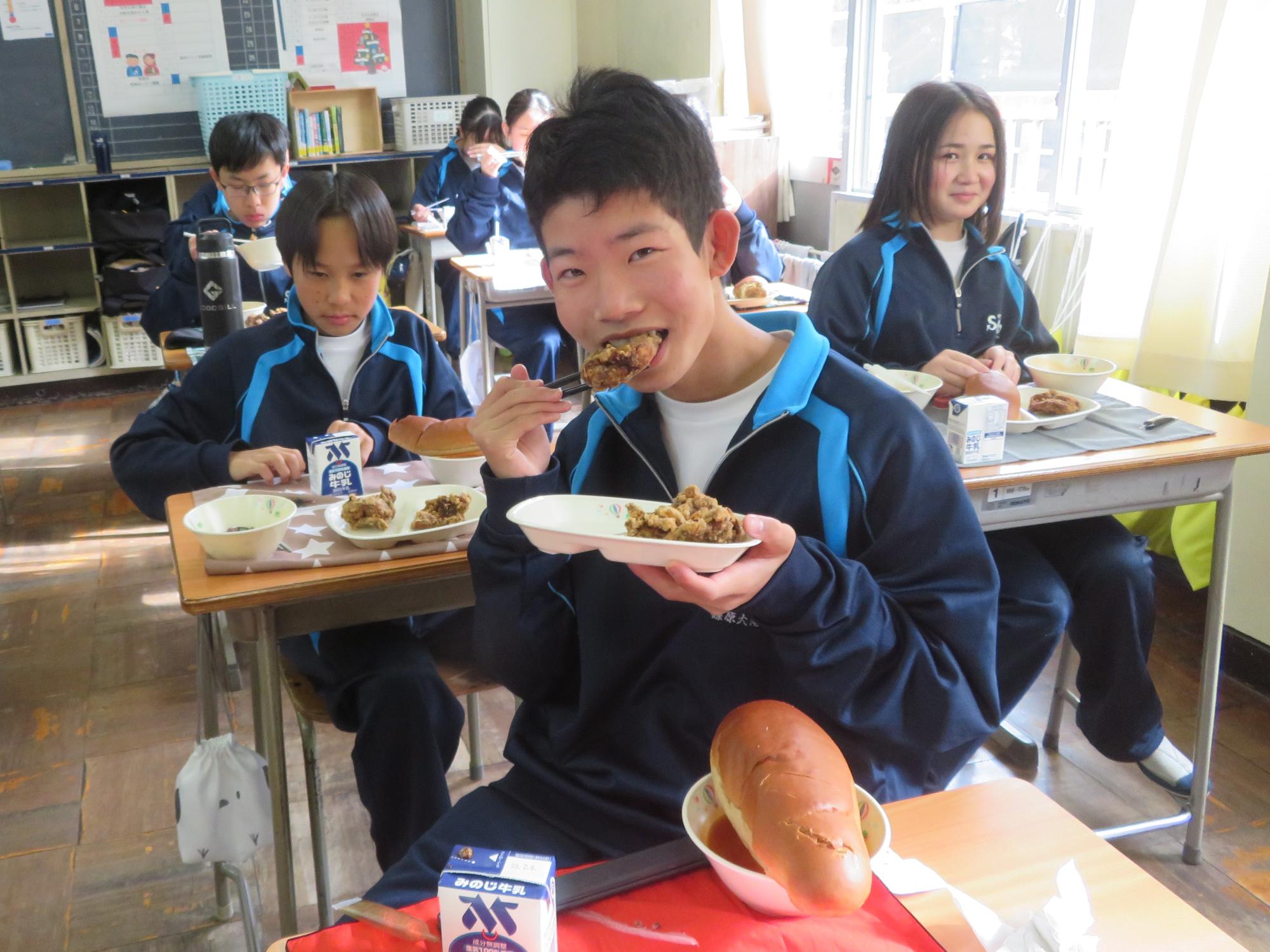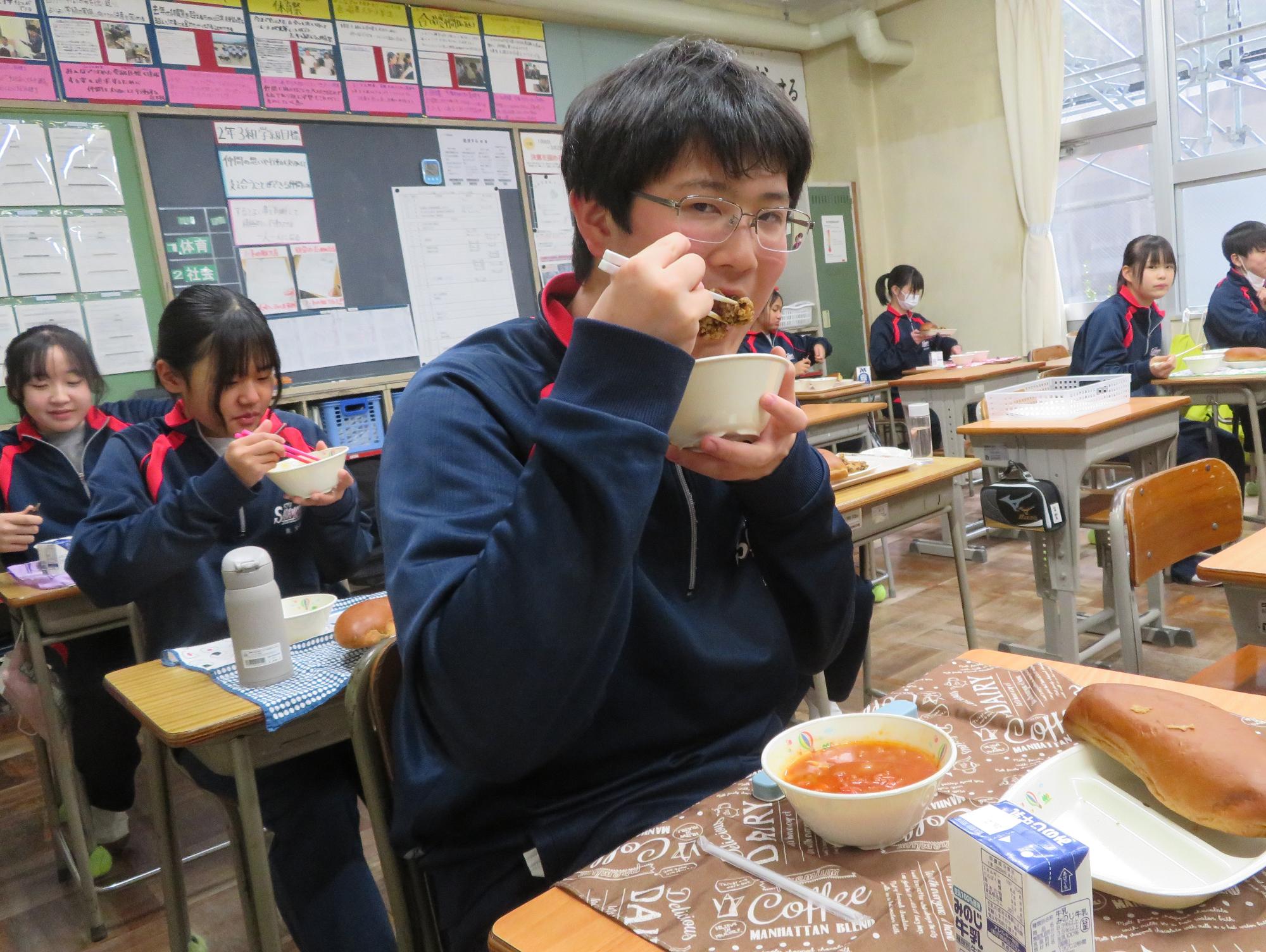 坂本中でもインフルエンザの流行が見られます。1、2年生で合計70人ほどの欠席者が出ました。校医さんと相談し、明日と明後日、感染防止のための1、2年生を学年閉鎖としました。下校前、1、2年生は今日の給食のブラジル料理を食べて栄養をつけました。欠席者がいるので、いつも以上に給食を食べ栄養UPです。2日間、ゆっくり休養し体調を整えていくことを願っています。