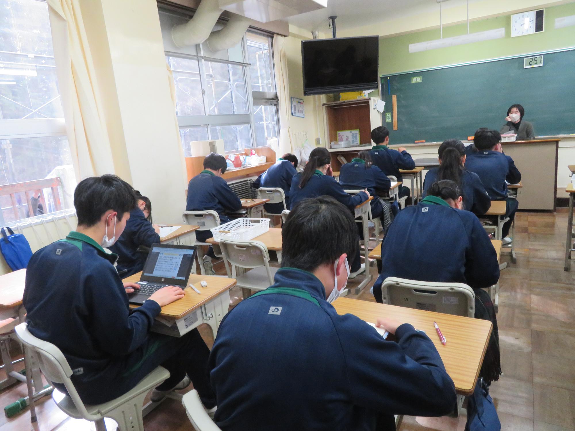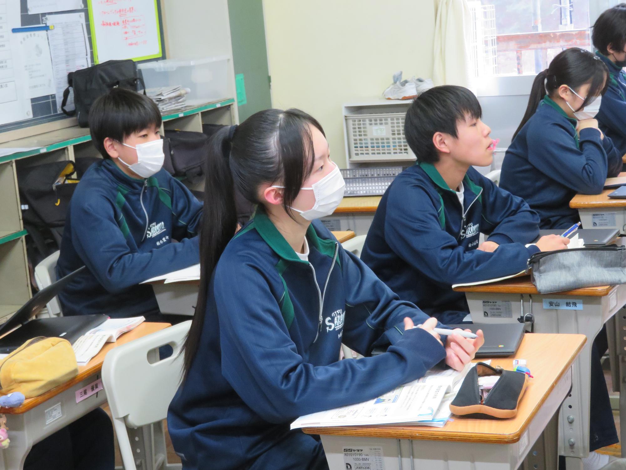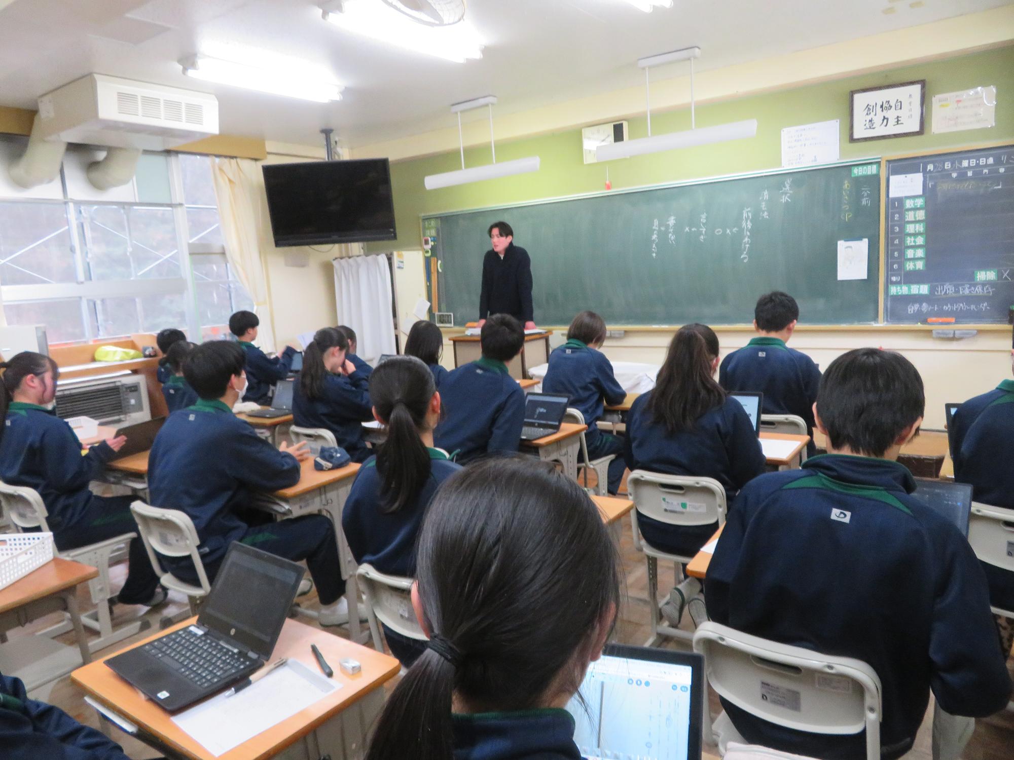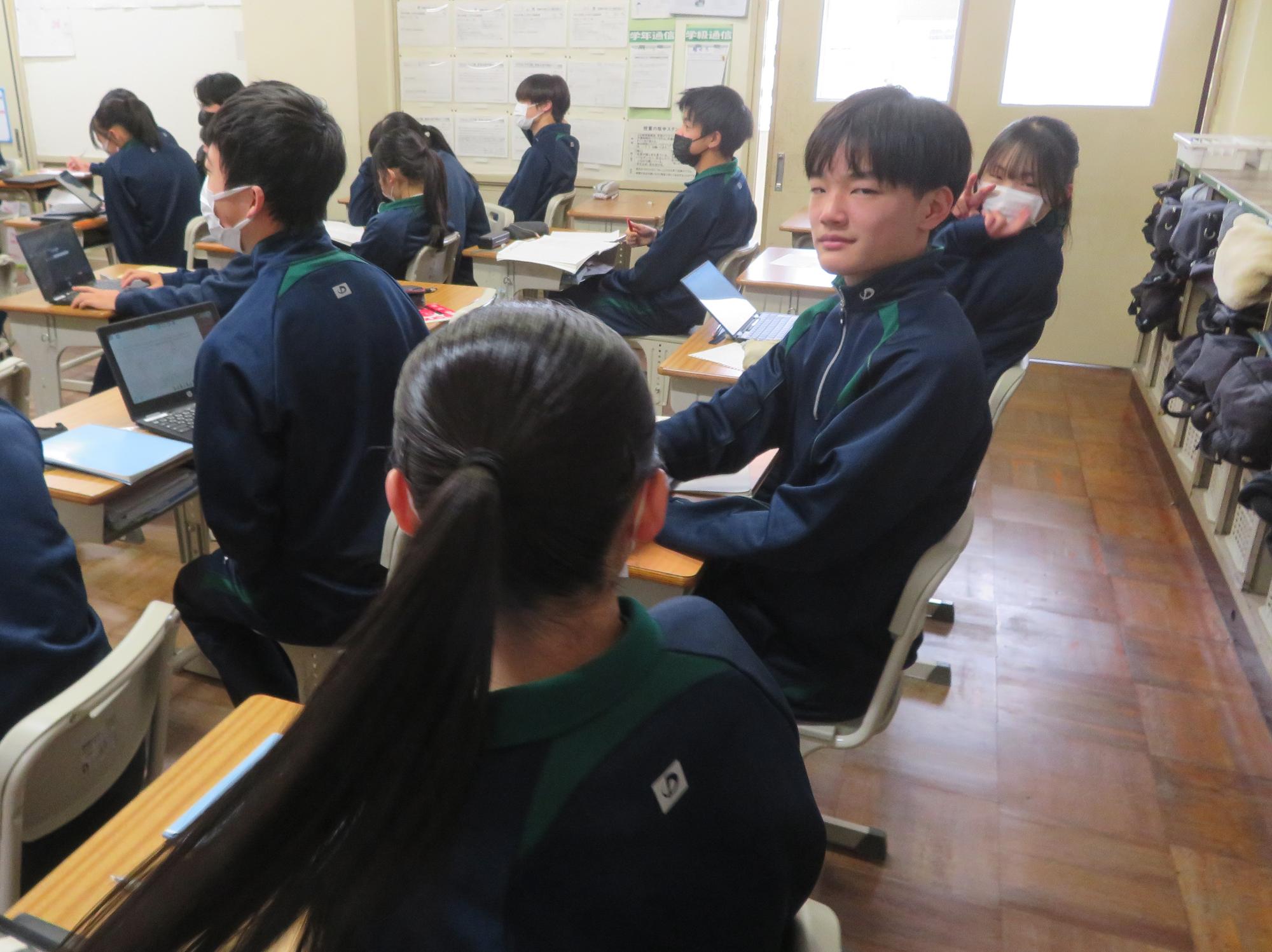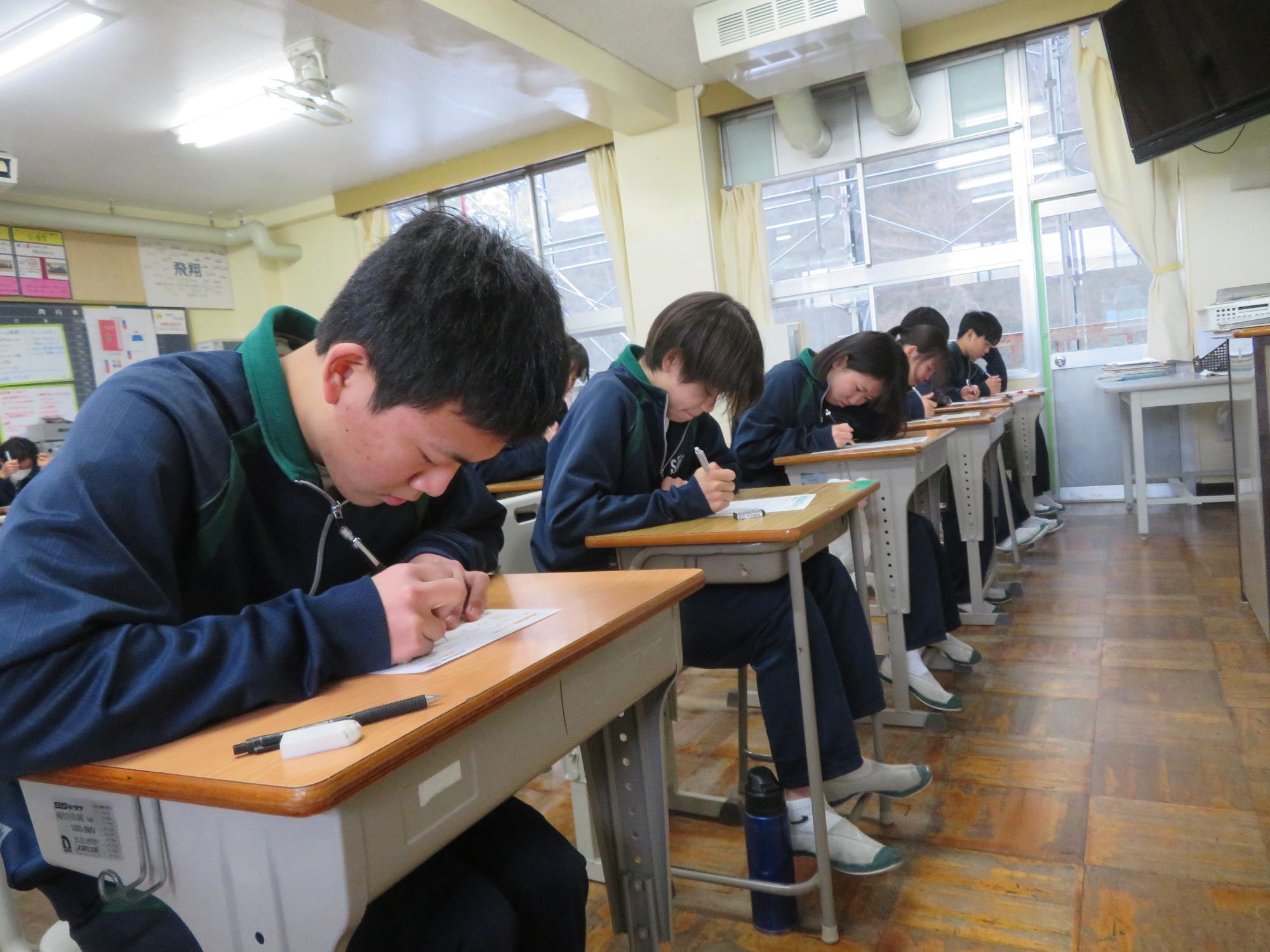 インフルエンザを吹き飛ばす3年生 更新日:2026年01月27日 1、2年生はインフルエンザ罹患者が多く、感染防止のため学年閉鎖となりました。しかし、3年生は元気です。欠席も少なく、本日午後からも、集中して授業に取り組んでいました。今週末に高校入試をひかえている生徒もいて、緊張感もあります。3年生全体からインフルエンザを吹き飛ばすパワーを感じた今日の姿でした。