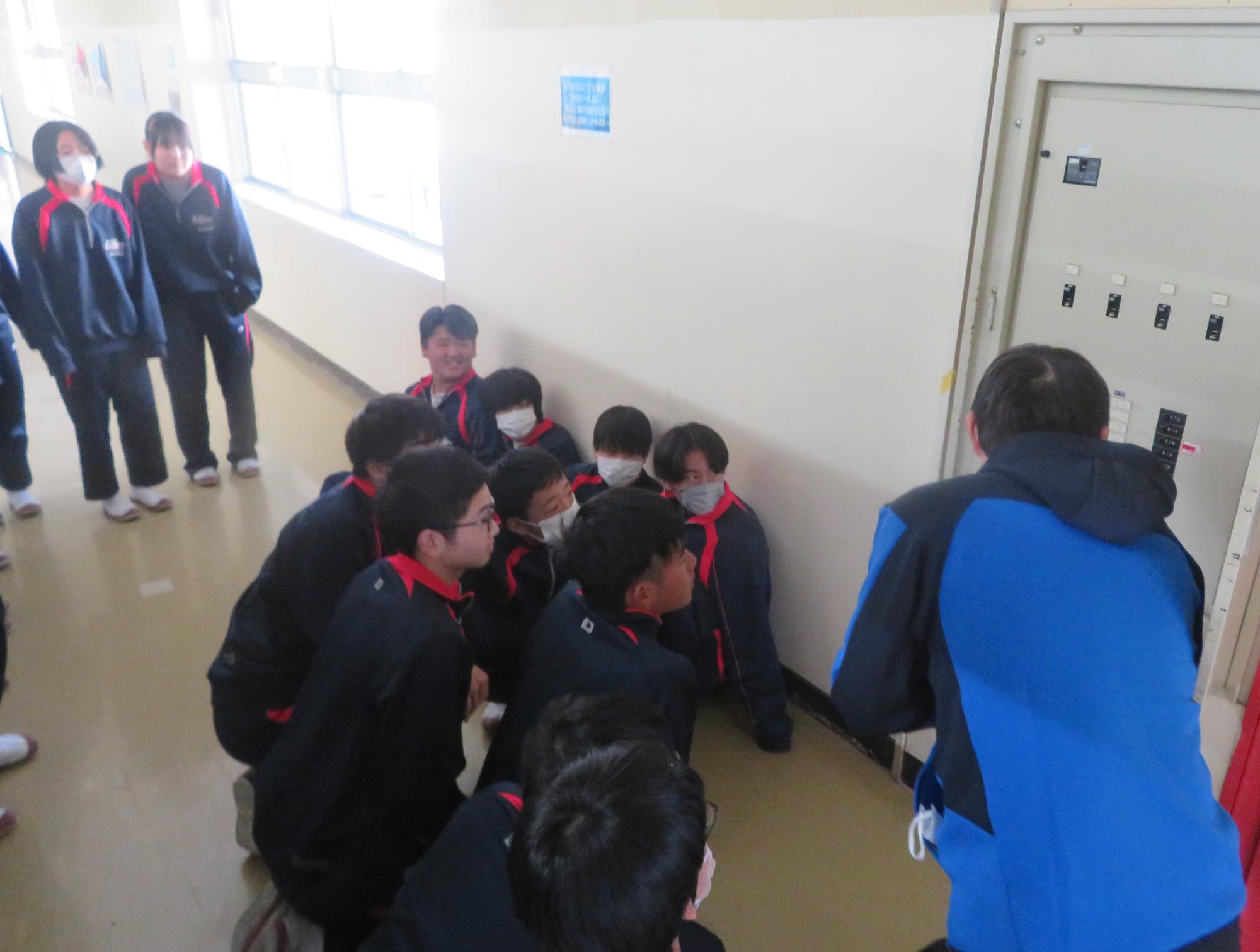 校舎の配電盤を探り技術の学習をする2年生