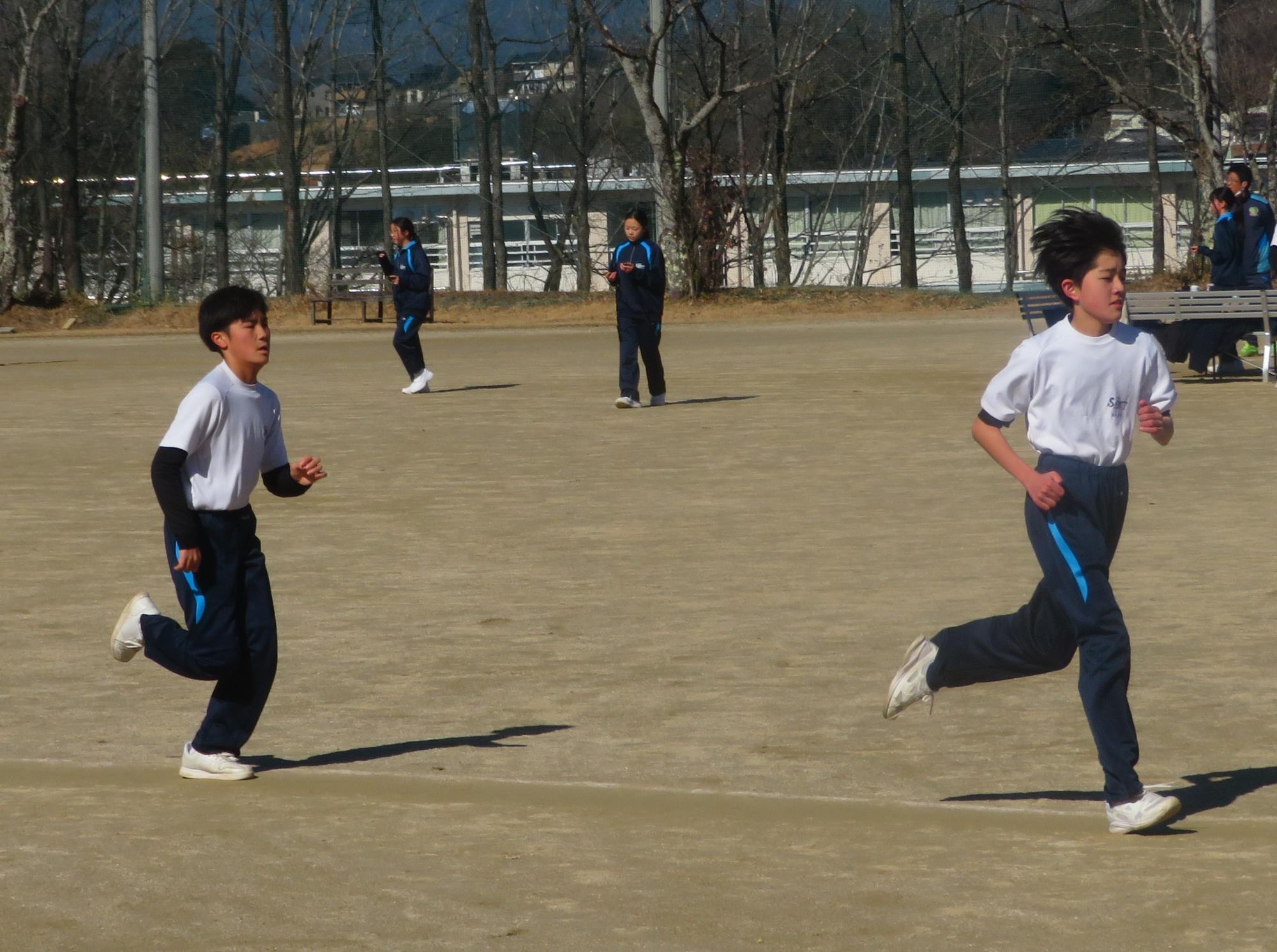 体育の持久走の授業を頑張る1年生