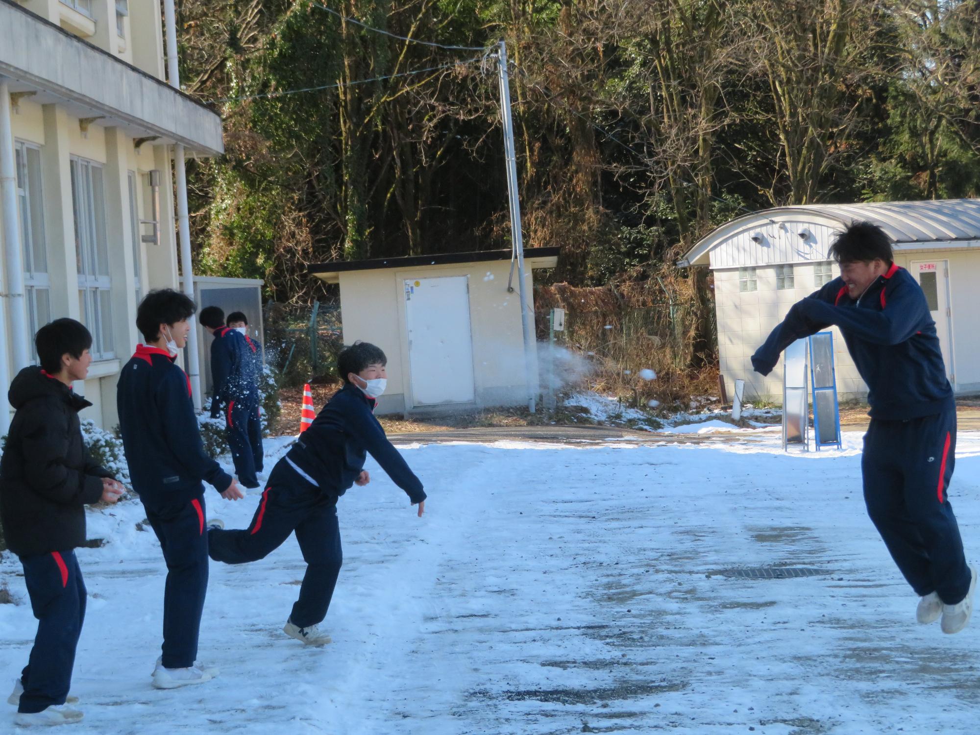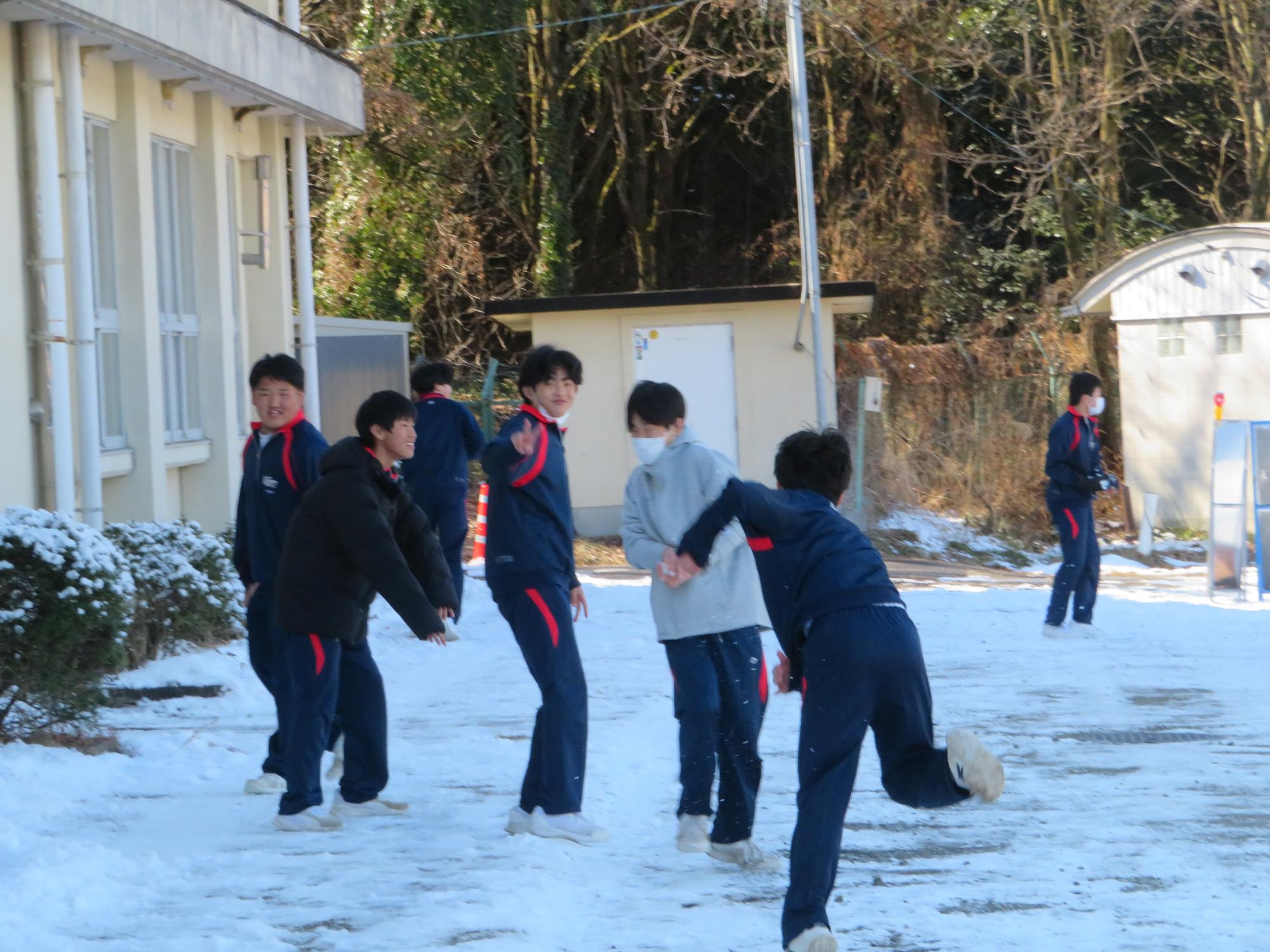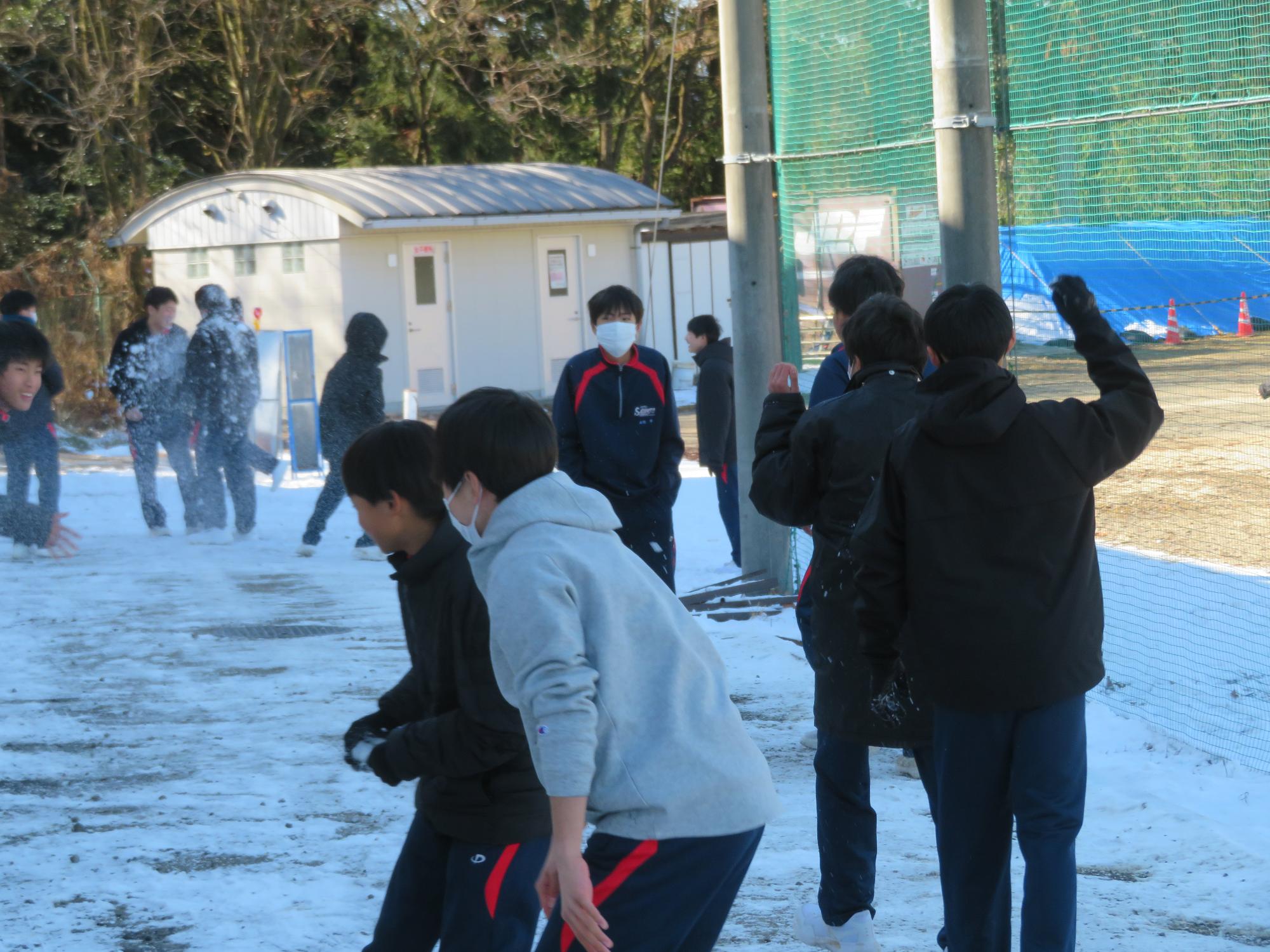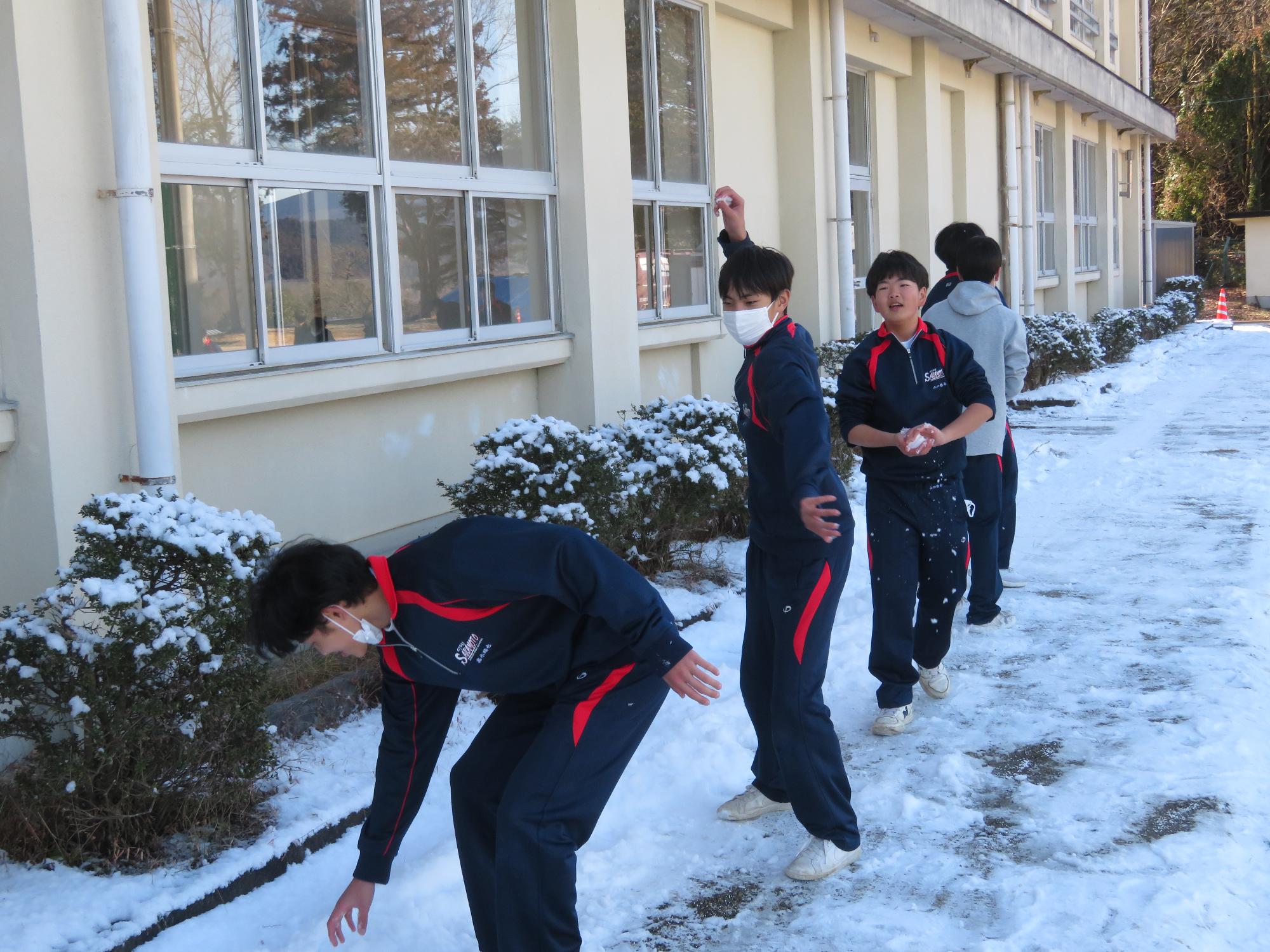 昼休みに雪合戦を楽しむ2年生